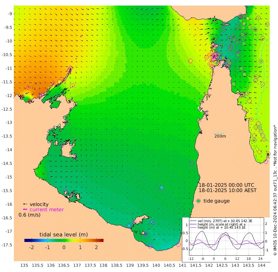 17cm/s 139T +3cm/s rms + 7cm/s -42T. ARA-GOC87 57m 2cm/s 25T +3cm/s rms + 2cm/s -2T. ARA-GOC87 60m 19cm/s 134T +2cm/s rms + 3cm/s 61T. ARA-GOC87 47m 4cm Daru 5cm Bobo Island 31cm Meer Island Barge 35cm Bramble Cay 30cm Unnamed Cay 18cm Pearce Cay 23cm Stephens Island 32cm Merrie England Shoals 20cm Mutacomal Reef 18cm Darnley Island Barge 33cm East Cay 10cm Yorke Island Barge 20cm Rennel Island 3cm Aureed Island 7cm Dungeness Reef -13cm Zagai Island -3cm Yam Island -10cm Dauan Island -17cm Saibai Island -20cm Phipi Reef -20cm Warrior Reef - West 19cm Mabuiag Island Barge 16cm Half Way Island 7cm Coconut Island 14cm Dugong Islet 5cm Poll Island 2cm Kirkcaldie Reef 2cm Suarji Island -2cm Sue Islet 105cm Hawkesbury Island 19cm Alert Patches 14cm Twin Island 80cm Badu Island 6cm St Pauls (Moa Island) 73cm Kubin (Moa Island) 29cm Ince Point 42cm Thursday Island 39cm Nardana Patches 63cm Turtle Head 85cm Round Island 101cm Goods Island 112cm Booby Island 116cm White Rocks Area 84cm Carpentaria 13cm Papou Point 136cm Bampfield Head 80cm Crab Island 101cm Red Wallis Island 79cm Packe Island 8cm Harrington Reef 99cm Herald Camp -15cm Sharp Point 45cm Red Island Point 37cm Possession Island 16cm Alpha Rock 10cm Frederick Point 22cm Wyborn Reef Light 19cm Tetley Island 28cm Triangle Reef 29cm Turtle Head Island 32cm Maclennan Cay 38cm Raine Island 20cm Mcsweeny Reef 23cm Collette Reef 31cm Shadwell Reef 27cm Hannibal Island 39cm Round Point 67cm Vrilya Point 35cm Cape Grenville 33cm Hicks Island 41cm Sir Charles Hardy Island 8cm Harvey Island 43cm Kay Reef 38cm Rocky Island 42cm Chapman Island 38cm Ham Reef 37cm Jubilee Reef 29cm Night Island 37cm Unnamed Reef No. 3 41cm Morris Island 45cm 1st 3 Mile Opening 37cm Creech Reef 25cm Fife Island 50cm Eden Reef 43cm Stanley Island 45cm Normanby River 178cm Yabooma Island 194cm Hutchison River 167cm Elcho Island 156cm North West Crocodile Island 101cm Cape Wessel 146cm Stevens Island 73cm Guluwuru Island 134cm Hopeful Bay 118cm Auster Point 115cm Two Island Bay 126cm Cadell Strait 7cm Mallison Island 68cm Melville Bay (Gove Harbour) 77cm Truant Island 35cm Cape Arnhem 9cm Cape Grey -5cm Hawk Island -33cm Milner Bay (Groote Eylandt) -43cm Cape Beatrice -84cm West Island -84cm Centre Island -109cm Mornington Island -101cm West Wellesley Islands -103cm Bountiful Island -115cm Albert River Mouth -132cm Sweers Island -126cm Karumba -83cm Nassau River Offshore -45cm Christmas Creek 9cm Archer River 29cm Boyd Point 41cm Weipa (Humbug Point) 30cm Pennefather River 59cm Cullen Point