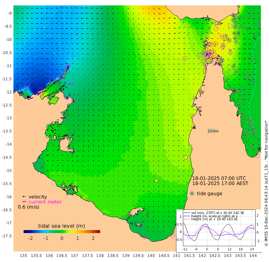 27cm/s -78T +3cm/s rms + 7cm/s -42T. ARA-GOC87 57m 23cm/s 169T +3cm/s rms + 2cm/s -2T. ARA-GOC87 60m 34cm/s -86T +2cm/s rms + 3cm/s 61T. ARA-GOC87 47m 24cm Daru 16cm Bobo Island -2cm Meer Island Barge -7cm Bramble Cay 4cm Unnamed Cay 6cm Pearce Cay 8cm Stephens Island 0cm Merrie England Shoals 15cm Mutacomal Reef 10cm Darnley Island Barge 0cm East Cay 18cm Yorke Island Barge 16cm Rennel Island 19cm Aureed Island 28cm Dungeness Reef 44cm Zagai Island 54cm Yam Island 63cm Dauan Island 64cm Saibai Island 56cm Phipi Reef 57cm Warrior Reef - West 45cm Mabuiag Island Barge 20cm Half Way Island 23cm Coconut Island 28cm Dugong Islet 35cm Poll Island 44cm Kirkcaldie Reef 41cm Suarji Island 41cm Sue Islet 41cm Hawkesbury Island 41cm Alert Patches 45cm Twin Island 27cm Badu Island 51cm St Pauls (Moa Island) 44cm Kubin (Moa Island) 46cm Ince Point 45cm Thursday Island 45cm Nardana Patches 39cm Turtle Head 41cm Round Island 28cm Goods Island 33cm Booby Island 20cm White Rocks Area 49cm Carpentaria 45cm Papou Point 31cm Bampfield Head 38cm Crab Island 40cm Red Wallis Island 47cm Packe Island 28cm Harrington Reef 68cm Herald Camp 24cm Sharp Point 45cm Red Island Point 42cm Possession Island 38cm Alpha Rock 38cm Frederick Point 14cm Wyborn Reef Light 20cm Tetley Island 4cm Triangle Reef 12cm Turtle Head Island 6cm Maclennan Cay -8cm Raine Island 8cm Mcsweeny Reef 4cm Collette Reef -2cm Shadwell Reef 0cm Hannibal Island -7cm Round Point 43cm Vrilya Point 1cm Cape Grenville 1cm Hicks Island 8cm Sir Charles Hardy Island 3cm Harvey Island -7cm Kay Reef -5cm Rocky Island -10cm Chapman Island -3cm Ham Reef -5cm Jubilee Reef 0cm Night Island -4cm Unnamed Reef No. 3 -8cm Morris Island -10cm 1st 3 Mile Opening -3cm Creech Reef -1cm Fife Island -16cm Eden Reef -7cm Stanley Island -10cm Normanby River -184cm Yabooma Island -213cm Hutchison River -188cm Elcho Island -175cm North West Crocodile Island -116cm Cape Wessel -175cm Stevens Island -101cm Guluwuru Island -156cm Hopeful Bay -137cm Auster Point -123cm Two Island Bay -163cm Cadell Strait -60cm Mallison Island -101cm Melville Bay (Gove Harbour) -104cm Truant Island -64cm Cape Arnhem -54cm Cape Grey -41cm Hawk Island -37cm Milner Bay (Groote Eylandt) -23cm Cape Beatrice 8cm West Island 9cm Centre Island 20cm Mornington Island 13cm West Wellesley Islands -4cm Bountiful Island -37cm Albert River Mouth -52cm Sweers Island -10cm Karumba 40cm Nassau River Offshore 55cm Christmas Creek 38cm Archer River 44cm Boyd Point 37cm Weipa (Humbug Point) 33cm Pennefather River 52cm Cullen Point