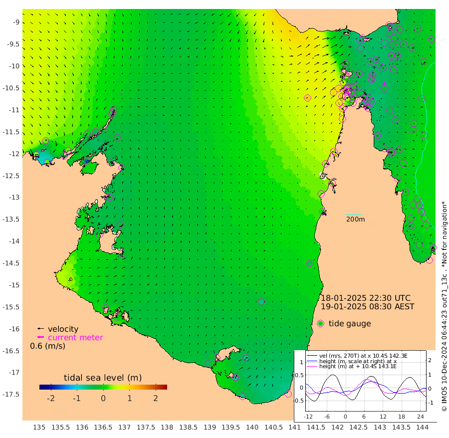 11cm/s -118T +3cm/s rms + 7cm/s -42T. ARA-GOC87 57m 13cm/s 16T +3cm/s rms + 2cm/s -2T. ARA-GOC87 60m 14cm/s -151T +2cm/s rms + 3cm/s 61T. ARA-GOC87 47m -42cm Daru -43cm Bobo Island -8cm Meer Island Barge -19cm Bramble Cay -22cm Unnamed Cay -34cm Pearce Cay -23cm Stephens Island -21cm Merrie England Shoals -33cm Mutacomal Reef -24cm Darnley Island Barge -14cm East Cay -30cm Yorke Island Barge -26cm Rennel Island -36cm Aureed Island -30cm Dungeness Reef -43cm Zagai Island -33cm Yam Island -50cm Dauan Island -50cm Saibai Island -54cm Phipi Reef -58cm Warrior Reef - West -5cm Mabuiag Island Barge -21cm Half Way Island -32cm Coconut Island -22cm Dugong Islet -29cm Poll Island -24cm Kirkcaldie Reef -18cm Suarji Island -31cm Sue Islet 59cm Hawkesbury Island -4cm Alert Patches -11cm Twin Island 40cm Badu Island -15cm St Pauls (Moa Island) 36cm Kubin (Moa Island) 7cm Ince Point 22cm Thursday Island 18cm Nardana Patches 34cm Turtle Head 49cm Round Island 68cm Goods Island 93cm Booby Island 91cm White Rocks Area 103cm Carpentaria -7cm Papou Point 105cm Bampfield Head 69cm Crab Island 79cm Red Wallis Island 43cm Packe Island -25cm Harrington Reef 66cm Herald Camp -13cm Sharp Point 23cm Red Island Point 16cm Possession Island -14cm Alpha Rock -22cm Frederick Point -31cm Wyborn Reef Light -32cm Tetley Island -15cm Triangle Reef -16cm Turtle Head Island -4cm Maclennan Cay 0cm Raine Island -25cm Mcsweeny Reef -24cm Collette Reef -11cm Shadwell Reef -23cm Hannibal Island -20cm Round Point 73cm Vrilya Point -9cm Cape Grenville -11cm Hicks Island -8cm Sir Charles Hardy Island -4cm Harvey Island -4cm Kay Reef -5cm Rocky Island -7cm Chapman Island -3cm Ham Reef -3cm Jubilee Reef -6cm Night Island -4cm Unnamed Reef No. 3 -1cm Morris Island 11cm 1st 3 Mile Opening 0cm Creech Reef -20cm Fife Island 1cm Eden Reef 2cm Stanley Island -3cm Normanby River 31cm Yabooma Island 26cm Hutchison River 29cm Elcho Island 25cm North West Crocodile Island -3cm Cape Wessel 3cm Stevens Island -31cm Guluwuru Island 4cm Hopeful Bay 7cm Auster Point 4cm Two Island Bay -30cm Cadell Strait -163cm Mallison Island -28cm Melville Bay (Gove Harbour) -26cm Truant Island -26cm Cape Arnhem -16cm Cape Grey -24cm Hawk Island -6cm Milner Bay (Groote Eylandt) -11cm Cape Beatrice -4cm West Island 0cm Centre Island -59cm Mornington Island -50cm West Wellesley Islands -63cm Bountiful Island -70cm Albert River Mouth -79cm Sweers Island -82cm Karumba -61cm Nassau River Offshore -41cm Christmas Creek 1cm Archer River 23cm Boyd Point 26cm Weipa (Humbug Point) 35cm Pennefather River 56cm Cullen Point