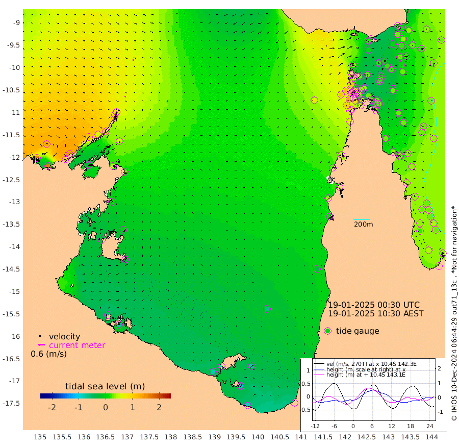 12cm/s 152T +3cm/s rms + 7cm/s -42T. ARA-GOC87 57m 1cm/s -27T +3cm/s rms + 2cm/s -2T. ARA-GOC87 60m 14cm/s 146T +2cm/s rms + 3cm/s 61T. ARA-GOC87 47m 15cm Daru 11cm Bobo Island 26cm Meer Island Barge 31cm Bramble Cay 33cm Unnamed Cay 21cm Pearce Cay 24cm Stephens Island 31cm Merrie England Shoals 27cm Mutacomal Reef 19cm Darnley Island Barge 26cm East Cay 16cm Yorke Island Barge 27cm Rennel Island 11cm Aureed Island 21cm Dungeness Reef 6cm Zagai Island 17cm Yam Island 16cm Dauan Island 5cm Saibai Island 6cm Phipi Reef 2cm Warrior Reef - West 37cm Mabuiag Island Barge 23cm Half Way Island 18cm Coconut Island 25cm Dugong Islet 21cm Poll Island 18cm Kirkcaldie Reef 25cm Suarji Island 13cm Sue Islet 107cm Hawkesbury Island 36cm Alert Patches 31cm Twin Island 89cm Badu Island 27cm St Pauls (Moa Island) 81cm Kubin (Moa Island) 46cm Ince Point 56cm Thursday Island 54cm Nardana Patches 75cm Turtle Head 89cm Round Island 105cm Goods Island 112cm Booby Island 117cm White Rocks Area 79cm Carpentaria 30cm Papou Point 131cm Bampfield Head 80cm Crab Island 101cm Red Wallis Island 84cm Packe Island 20cm Harrington Reef 101cm Herald Camp -6cm Sharp Point 53cm Red Island Point 49cm Possession Island 29cm Alpha Rock 24cm Frederick Point 30cm Wyborn Reef Light 28cm Tetley Island 24cm Triangle Reef 36cm Turtle Head Island 29cm Maclennan Cay 31cm Raine Island 23cm Mcsweeny Reef 23cm Collette Reef 26cm Shadwell Reef 26cm Hannibal Island 33cm Round Point 64cm Vrilya Point 30cm Cape Grenville 29cm Hicks Island 36cm Sir Charles Hardy Island 7cm Harvey Island 34cm Kay Reef 30cm Rocky Island 31cm Chapman Island 28cm Ham Reef 30cm Jubilee Reef 23cm Night Island 28cm Unnamed Reef No. 3 32cm Morris Island 39cm 1st 3 Mile Opening 30cm Creech Reef 19cm Fife Island 38cm Eden Reef 34cm Stanley Island 35cm Normanby River 154cm Yabooma Island 166cm Hutchison River 141cm Elcho Island 133cm North West Crocodile Island 79cm Cape Wessel 120cm Stevens Island 56cm Guluwuru Island 107cm Hopeful Bay 96cm Auster Point 92cm Two Island Bay 101cm Cadell Strait -28cm Mallison Island 53cm Melville Bay (Gove Harbour) 59cm Truant Island 26cm Cape Arnhem 8cm Cape Grey -7cm Hawk Island -27cm Milner Bay (Groote Eylandt) -34cm Cape Beatrice -67cm West Island -69cm Centre Island -88cm Mornington Island -77cm West Wellesley Islands -76cm Bountiful Island -85cm Albert River Mouth -105cm Sweers Island -98cm Karumba -64cm Nassau River Offshore -32cm Christmas Creek 12cm Archer River 31cm Boyd Point 43cm Weipa (Humbug Point) 28cm Pennefather River 57cm Cullen Point