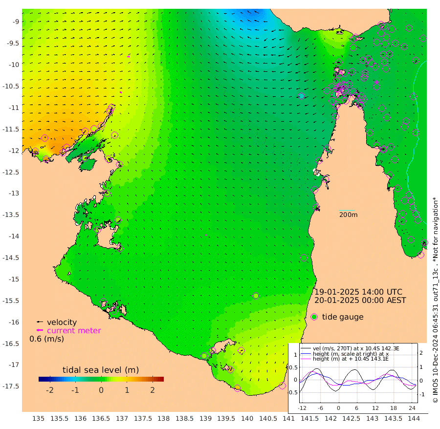 19cm/s 104T +3cm/s rms + 7cm/s -42T. ARA-GOC87 57m 13cm/s -45T +3cm/s rms + 2cm/s -2T. ARA-GOC87 60m 22cm/s 87T +2cm/s rms + 3cm/s 61T. ARA-GOC87 47m -14cm Daru -15cm Bobo Island -15cm Meer Island Barge -8cm Bramble Cay -15cm Unnamed Cay -8cm Pearce Cay -18cm Stephens Island -11cm Merrie England Shoals -15cm Mutacomal Reef -20cm Darnley Island Barge -16cm East Cay -20cm Yorke Island Barge -19cm Rennel Island -21cm Aureed Island -16cm Dungeness Reef -22cm Zagai Island -29cm Yam Island -10cm Dauan Island -21cm Saibai Island 10cm Phipi Reef -18cm Warrior Reef - West -20cm Mabuiag Island Barge -22cm Half Way Island -20cm Coconut Island -28cm Dugong Islet -22cm Poll Island -27cm Kirkcaldie Reef -30cm Suarji Island -27cm Sue Islet -26cm Hawkesbury Island -26cm Alert Patches -30cm Twin Island -10cm Badu Island -29cm St Pauls (Moa Island) -31cm Kubin (Moa Island) -30cm Ince Point -32cm Thursday Island -31cm Nardana Patches -27cm Turtle Head -32cm Round Island -29cm Goods Island -42cm Booby Island -37cm White Rocks Area -86cm Carpentaria -30cm Papou Point -63cm Bampfield Head -30cm Crab Island -45cm Red Wallis Island -36cm Packe Island -29cm Harrington Reef -55cm Herald Camp -9cm Sharp Point -19cm Red Island Point -30cm Possession Island -34cm Alpha Rock -28cm Frederick Point -17cm Wyborn Reef Light -20cm Tetley Island -15cm Triangle Reef -16cm Turtle Head Island -23cm Maclennan Cay -11cm Raine Island -17cm Mcsweeny Reef -13cm Collette Reef -11cm Shadwell Reef -12cm Hannibal Island -7cm Round Point -37cm Vrilya Point -18cm Cape Grenville -15cm Hicks Island -30cm Sir Charles Hardy Island -7cm Harvey Island -16cm Kay Reef -13cm Rocky Island -9cm Chapman Island -18cm Ham Reef -15cm Jubilee Reef -14cm Night Island -17cm Unnamed Reef No. 3 -14cm Morris Island -16cm 1st 3 Mile Opening -18cm Creech Reef -12cm Fife Island -12cm Eden Reef -16cm Stanley Island -15cm Normanby River 126cm Yabooma Island 142cm Hutchison River 124cm Elcho Island 124cm North West Crocodile Island 54cm Cape Wessel 118cm Stevens Island 48cm Guluwuru Island 107cm Hopeful Bay 80cm Auster Point 74cm Two Island Bay 127cm Cadell Strait 38cm Mallison Island 59cm Melville Bay (Gove Harbour) 54cm Truant Island 34cm Cape Arnhem 34cm Cape Grey 36cm Hawk Island 29cm Milner Bay (Groote Eylandt) 25cm Cape Beatrice 5cm West Island 4cm Centre Island 42cm Mornington Island 37cm West Wellesley Islands 70cm Bountiful Island 109cm Albert River Mouth 127cm Sweers Island 107cm Karumba 37cm Nassau River Offshore 9cm Christmas Creek -2cm Archer River -29cm Boyd Point -17cm Weipa (Humbug Point) -12cm Pennefather River -43cm Cullen Point