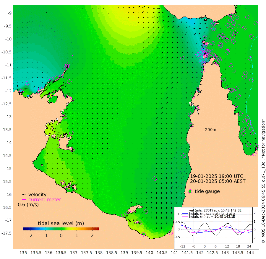 10cm/s 43T +3cm/s rms + 7cm/s -42T. ARA-GOC87 57m 13cm/s 36T +3cm/s rms + 2cm/s -2T. ARA-GOC87 60m 9cm/s 50T +2cm/s rms + 3cm/s 61T. ARA-GOC87 47m -23cm Daru -11cm Bobo Island -9cm Meer Island Barge -18cm Bramble Cay -24cm Unnamed Cay -18cm Pearce Cay -16cm Stephens Island -23cm Merrie England Shoals -30cm Mutacomal Reef -8cm Darnley Island Barge -13cm East Cay -11cm Yorke Island Barge -25cm Rennel Island -7cm Aureed Island -30cm Dungeness Reef -22cm Zagai Island -42cm Yam Island -59cm Dauan Island -37cm Saibai Island -60cm Phipi Reef -35cm Warrior Reef - West -51cm Mabuiag Island Barge -23cm Half Way Island -17cm Coconut Island -27cm Dugong Islet -31cm Poll Island -34cm Kirkcaldie Reef -31cm Suarji Island -22cm Sue Islet -115cm Hawkesbury Island -43cm Alert Patches -40cm Twin Island -92cm Badu Island -43cm St Pauls (Moa Island) -91cm Kubin (Moa Island) -55cm Ince Point -62cm Thursday Island -61cm Nardana Patches -80cm Turtle Head -94cm Round Island -97cm Goods Island -94cm Booby Island -96cm White Rocks Area -33cm Carpentaria -39cm Papou Point -92cm Bampfield Head -78cm Crab Island -92cm Red Wallis Island -96cm Packe Island -19cm Harrington Reef -115cm Herald Camp -6cm Sharp Point -69cm Red Island Point -54cm Possession Island -33cm Alpha Rock -31cm Frederick Point -26cm Wyborn Reef Light -28cm Tetley Island -13cm Triangle Reef -27cm Turtle Head Island -14cm Maclennan Cay -12cm Raine Island -15cm Mcsweeny Reef -13cm Collette Reef -12cm Shadwell Reef -14cm Hannibal Island -21cm Round Point -58cm Vrilya Point -16cm Cape Grenville -17cm Hicks Island -19cm Sir Charles Hardy Island -5cm Harvey Island -13cm Kay Reef -13cm Rocky Island -13cm Chapman Island -9cm Ham Reef -10cm Jubilee Reef -10cm Night Island -8cm Unnamed Reef No. 3 -12cm Morris Island -12cm 1st 3 Mile Opening -10cm Creech Reef -7cm Fife Island -12cm Eden Reef -13cm Stanley Island -15cm Normanby River -111cm Yabooma Island -108cm Hutchison River -90cm Elcho Island -96cm North West Crocodile Island -24cm Cape Wessel -73cm Stevens Island -1cm Guluwuru Island -68cm Hopeful Bay -45cm Auster Point -53cm Two Island Bay -69cm Cadell Strait 61cm Mallison Island -9cm Melville Bay (Gove Harbour) -7cm Truant Island 7cm Cape Arnhem 17cm Cape Grey 12cm Hawk Island 31cm Milner Bay (Groote Eylandt) 26cm Cape Beatrice 47cm West Island 48cm Centre Island 17cm Mornington Island 17cm West Wellesley Islands 0cm Bountiful Island -4cm Albert River Mouth 21cm Sweers Island -13cm Karumba -20cm Nassau River Offshore -35cm Christmas Creek -42cm Archer River -40cm Boyd Point -58cm Weipa (Humbug Point) -36cm Pennefather River -61cm Cullen Point