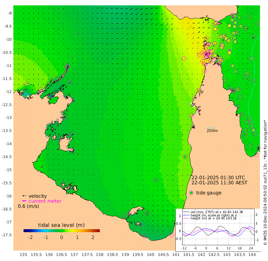 13cm/s -113T +3cm/s rms + 7cm/s -42T. ARA-GOC87 57m 5cm/s -156T +3cm/s rms + 2cm/s -2T. ARA-GOC87 60m 14cm/s -124T +2cm/s rms + 3cm/s 61T. ARA-GOC87 47m 32cm Daru 25cm Bobo Island 13cm Meer Island Barge 14cm Bramble Cay 27cm Unnamed Cay 32cm Pearce Cay 25cm Stephens Island 18cm Merrie England Shoals 29cm Mutacomal Reef 18cm Darnley Island Barge 13cm East Cay 26cm Yorke Island Barge 37cm Rennel Island 30cm Aureed Island 50cm Dungeness Reef 48cm Zagai Island 58cm Yam Island 73cm Dauan Island 55cm Saibai Island 69cm Phipi Reef 53cm Warrior Reef - West 74cm Mabuiag Island Barge 35cm Half Way Island 38cm Coconut Island 46cm Dugong Islet 53cm Poll Island 53cm Kirkcaldie Reef 77cm Suarji Island 45cm Sue Islet 109cm Hawkesbury Island 75cm Alert Patches 69cm Twin Island 105cm Badu Island 75cm St Pauls (Moa Island) 97cm Kubin (Moa Island) 80cm Ince Point 87cm Thursday Island 86cm Nardana Patches 99cm Turtle Head 94cm Round Island 111cm Goods Island 112cm Booby Island 117cm White Rocks Area 75cm Carpentaria 67cm Papou Point 115cm Bampfield Head 83cm Crab Island 103cm Red Wallis Island 93cm Packe Island 45cm Harrington Reef 105cm Herald Camp 13cm Sharp Point 81cm Red Island Point 76cm Possession Island 51cm Alpha Rock 55cm Frederick Point 33cm Wyborn Reef Light 36cm Tetley Island 16cm Triangle Reef 47cm Turtle Head Island 22cm Maclennan Cay 13cm Raine Island 25cm Mcsweeny Reef 18cm Collette Reef 12cm Shadwell Reef 16cm Hannibal Island 14cm Round Point 66cm Vrilya Point 14cm Cape Grenville 18cm Hicks Island 23cm Sir Charles Hardy Island 5cm Harvey Island 8cm Kay Reef 13cm Rocky Island 9cm Chapman Island 9cm Ham Reef 12cm Jubilee Reef 9cm Night Island 8cm Unnamed Reef No. 3 13cm Morris Island 23cm 1st 3 Mile Opening 14cm Creech Reef 5cm Fife Island 10cm Eden Reef 11cm Stanley Island 11cm Normanby River 47cm Yabooma Island 49cm Hutchison River 34cm Elcho Island 36cm North West Crocodile Island -1cm Cape Wessel 9cm Stevens Island -14cm Guluwuru Island 4cm Hopeful Bay 11cm Auster Point 5cm Two Island Bay 6cm Cadell Strait -162cm Mallison Island -10cm Melville Bay (Gove Harbour) -10cm Truant Island -13cm Cape Arnhem -6cm Cape Grey -18cm Hawk Island -20cm Milner Bay (Groote Eylandt) -16cm Cape Beatrice -21cm West Island -25cm Centre Island -27cm Mornington Island -16cm West Wellesley Islands -5cm Bountiful Island -23cm Albert River Mouth -42cm Sweers Island -26cm Karumba -8cm Nassau River Offshore 12cm Christmas Creek 30cm Archer River 44cm Boyd Point 54cm Weipa (Humbug Point) 33cm Pennefather River 59cm Cullen Point