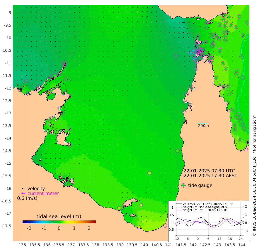 12cm/s -28T +3cm/s rms + 7cm/s -42T. ARA-GOC87 57m 6cm/s -169T +3cm/s rms + 2cm/s -2T. ARA-GOC87 60m 13cm/s -36T +2cm/s rms + 3cm/s 61T. ARA-GOC87 47m 7cm Daru 6cm Bobo Island 6cm Meer Island Barge 11cm Bramble Cay 8cm Unnamed Cay -6cm Pearce Cay 5cm Stephens Island 11cm Merrie England Shoals 11cm Mutacomal Reef 8cm Darnley Island Barge 10cm East Cay 5cm Yorke Island Barge 1cm Rennel Island 1cm Aureed Island -9cm Dungeness Reef -1cm Zagai Island 0cm Yam Island -10cm Dauan Island 5cm Saibai Island -19cm Phipi Reef 4cm Warrior Reef - West -28cm Mabuiag Island Barge -1cm Half Way Island -4cm Coconut Island -3cm Dugong Islet -10cm Poll Island -7cm Kirkcaldie Reef -26cm Suarji Island -3cm Sue Islet -67cm Hawkesbury Island -34cm Alert Patches -25cm Twin Island -64cm Badu Island -28cm St Pauls (Moa Island) -50cm Kubin (Moa Island) -36cm Ince Point -45cm Thursday Island -42cm Nardana Patches -53cm Turtle Head -55cm Round Island -68cm Goods Island -77cm Booby Island -75cm White Rocks Area -52cm Carpentaria -24cm Papou Point -78cm Bampfield Head -60cm Crab Island -63cm Red Wallis Island -47cm Packe Island -8cm Harrington Reef -51cm Herald Camp 0cm Sharp Point -45cm Red Island Point -45cm Possession Island -6cm Alpha Rock -15cm Frederick Point 2cm Wyborn Reef Light 1cm Tetley Island 6cm Triangle Reef -24cm Turtle Head Island 5cm Maclennan Cay 4cm Raine Island 4cm Mcsweeny Reef 8cm Collette Reef 8cm Shadwell Reef 10cm Hannibal Island 8cm Round Point -58cm Vrilya Point 11cm Cape Grenville 7cm Hicks Island 18cm Sir Charles Hardy Island 3cm Harvey Island 14cm Kay Reef 9cm Rocky Island 10cm Chapman Island 12cm Ham Reef 9cm Jubilee Reef 7cm Night Island 12cm Unnamed Reef No. 3 7cm Morris Island -3cm 1st 3 Mile Opening 6cm Creech Reef 12cm Fife Island 9cm Eden Reef 9cm Stanley Island 11cm Normanby River -60cm Yabooma Island -65cm Hutchison River -54cm Elcho Island -52cm North West Crocodile Island -12cm Cape Wessel -35cm Stevens Island 9cm Guluwuru Island -31cm Hopeful Bay -36cm Auster Point -27cm Two Island Bay -33cm Cadell Strait 144cm Mallison Island -3cm Melville Bay (Gove Harbour) -5cm Truant Island 2cm Cape Arnhem -3cm Cape Grey 3cm Hawk Island 4cm Milner Bay (Groote Eylandt) 10cm Cape Beatrice 16cm West Island 13cm Centre Island 36cm Mornington Island 34cm West Wellesley Islands 32cm Bountiful Island 40cm Albert River Mouth 22cm Sweers Island 36cm Karumba 31cm Nassau River Offshore 22cm Christmas Creek -10cm Archer River -18cm Boyd Point -23cm Weipa (Humbug Point) -40cm Pennefather River -38cm Cullen Point