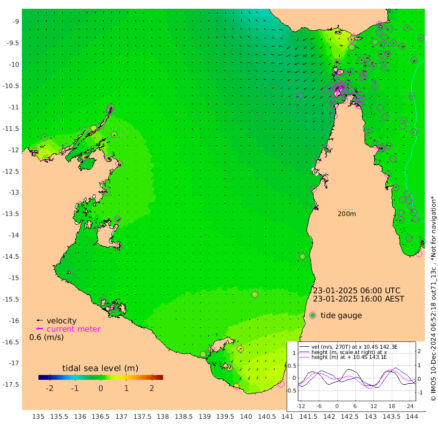 8cm/s -19T +3cm/s rms + 7cm/s -42T. ARA-GOC87 57m 9cm/s -142T +3cm/s rms + 2cm/s -2T. ARA-GOC87 60m 9cm/s -18T +2cm/s rms + 3cm/s 61T. ARA-GOC87 47m 3cm Daru -5cm Bobo Island 3cm Meer Island Barge 1cm Bramble Cay -1cm Unnamed Cay -16cm Pearce Cay -5cm Stephens Island -5cm Merrie England Shoals -3cm Mutacomal Reef 0cm Darnley Island Barge 2cm East Cay -2cm Yorke Island Barge -6cm Rennel Island -11cm Aureed Island -7cm Dungeness Reef 9cm Zagai Island 9cm Yam Island 34cm Dauan Island 35cm Saibai Island 23cm Phipi Reef 19cm Warrior Reef - West 2cm Mabuiag Island Barge -12cm Half Way Island -12cm Coconut Island -11cm Dugong Islet -10cm Poll Island -6cm Kirkcaldie Reef -17cm Suarji Island -1cm Sue Islet -29cm Hawkesbury Island -23cm Alert Patches -21cm Twin Island -17cm Badu Island -15cm St Pauls (Moa Island) -21cm Kubin (Moa Island) -20cm Ince Point -26cm Thursday Island -22cm Nardana Patches -22cm Turtle Head -26cm Round Island -31cm Goods Island -43cm Booby Island -45cm White Rocks Area -51cm Carpentaria -13cm Papou Point -47cm Bampfield Head -34cm Crab Island -41cm Red Wallis Island -30cm Packe Island -22cm Harrington Reef -22cm Herald Camp 0cm Sharp Point -21cm Red Island Point -29cm Possession Island -11cm Alpha Rock -18cm Frederick Point -8cm Wyborn Reef Light -9cm Tetley Island -1cm Triangle Reef -25cm Turtle Head Island 0cm Maclennan Cay 5cm Raine Island -5cm Mcsweeny Reef -1cm Collette Reef 5cm Shadwell Reef -2cm Hannibal Island -5cm Round Point -44cm Vrilya Point -3cm Cape Grenville 2cm Hicks Island 13cm Sir Charles Hardy Island 0cm Harvey Island 1cm Kay Reef 6cm Rocky Island 3cm Chapman Island 6cm Ham Reef 7cm Jubilee Reef -1cm Night Island 2cm Unnamed Reef No. 3 3cm Morris Island 2cm 1st 3 Mile Opening 2cm Creech Reef 5cm Fife Island 4cm Eden Reef 2cm Stanley Island 1cm Normanby River 19cm Yabooma Island 27cm Hutchison River 19cm Elcho Island 20cm North West Crocodile Island 16cm Cape Wessel 21cm Stevens Island 45cm Guluwuru Island 17cm Hopeful Bay 9cm Auster Point 15cm Two Island Bay 38cm Cadell Strait 116cm Mallison Island 32cm Melville Bay (Gove Harbour) 30cm Truant Island 24cm Cape Arnhem 19cm Cape Grey 11cm Hawk Island 3cm Milner Bay (Groote Eylandt) 8cm Cape Beatrice -3cm West Island -11cm Centre Island 33cm Mornington Island 32cm West Wellesley Islands 56cm Bountiful Island 69cm Albert River Mouth 47cm Sweers Island 61cm Karumba 33cm Nassau River Offshore 28cm Christmas Creek 1cm Archer River -6cm Boyd Point -1cm Weipa (Humbug Point) -32cm Pennefather River -28cm Cullen Point