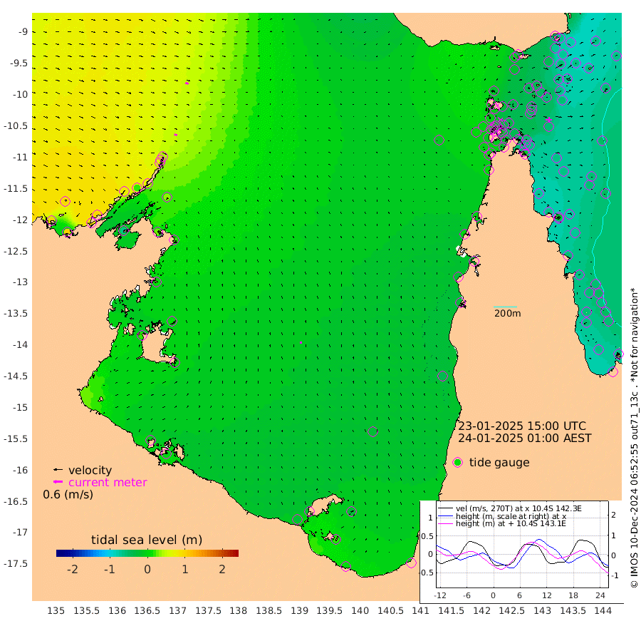 17cm/s 115T +3cm/s rms + 7cm/s -42T. ARA-GOC87 57m 15cm/s -2T +3cm/s rms + 2cm/s -2T. ARA-GOC87 60m 20cm/s 106T +2cm/s rms + 3cm/s 61T. ARA-GOC87 47m -61cm Daru -64cm Bobo Island -55cm Meer Island Barge -67cm Bramble Cay -71cm Unnamed Cay -59cm Pearce Cay -65cm Stephens Island -75cm Merrie England Shoals -72cm Mutacomal Reef -66cm Darnley Island Barge -65cm East Cay -64cm Yorke Island Barge -63cm Rennel Island -62cm Aureed Island -51cm Dungeness Reef -39cm Zagai Island -41cm Yam Island -14cm Dauan Island -33cm Saibai Island -22cm Phipi Reef -42cm Warrior Reef - West -15cm Mabuiag Island Barge -57cm Half Way Island -58cm Coconut Island -59cm Dugong Islet -43cm Poll Island -51cm Kirkcaldie Reef -39cm Suarji Island -51cm Sue Islet -4cm Hawkesbury Island -35cm Alert Patches -35cm Twin Island -1cm Badu Island -25cm St Pauls (Moa Island) -4cm Kubin (Moa Island) -22cm Ince Point -15cm Thursday Island -17cm Nardana Patches -13cm Turtle Head -5cm Round Island -4cm Goods Island 3cm Booby Island -1cm White Rocks Area -12cm Carpentaria -26cm Papou Point -9cm Bampfield Head 7cm Crab Island -1cm Red Wallis Island -8cm Packe Island -61cm Harrington Reef -9cm Herald Camp -10cm Sharp Point -19cm Red Island Point -19cm Possession Island -43cm Alpha Rock -46cm Frederick Point -62cm Wyborn Reef Light -58cm Tetley Island -52cm Triangle Reef -47cm Turtle Head Island -57cm Maclennan Cay -49cm Raine Island -64cm Mcsweeny Reef -67cm Collette Reef -58cm Shadwell Reef -73cm Hannibal Island -67cm Round Point 8cm Vrilya Point -69cm Cape Grenville -60cm Hicks Island -75cm Sir Charles Hardy Island -19cm Harvey Island -73cm Kay Reef -59cm Rocky Island -60cm Chapman Island -60cm Ham Reef -57cm Jubilee Reef -49cm Night Island -61cm Unnamed Reef No. 3 -60cm Morris Island -50cm 1st 3 Mile Opening -57cm Creech Reef -53cm Fife Island -66cm Eden Reef -63cm Stanley Island -66cm Normanby River 99cm Yabooma Island 99cm Hutchison River 93cm Elcho Island 92cm North West Crocodile Island 44cm Cape Wessel 82cm Stevens Island 17cm Guluwuru Island 70cm Hopeful Bay 64cm Auster Point 73cm Two Island Bay 87cm Cadell Strait -65cm Mallison Island 30cm Melville Bay (Gove Harbour) 32cm Truant Island 17cm Cape Arnhem 9cm Cape Grey 10cm Hawk Island 16cm Milner Bay (Groote Eylandt) 6cm Cape Beatrice -3cm West Island -3cm Centre Island -21cm Mornington Island -26cm West Wellesley Islands -27cm Bountiful Island 4cm Albert River Mouth 18cm Sweers Island 2cm Karumba -28cm Nassau River Offshore -38cm Christmas Creek -27cm Archer River -23cm Boyd Point -21cm Weipa (Humbug Point) 2cm Pennefather River -3cm Cullen Point