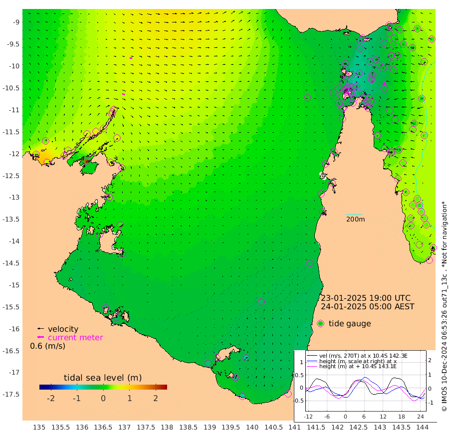 26cm/s 107T +3cm/s rms + 7cm/s -42T. ARA-GOC87 57m 6cm/s 116T +3cm/s rms + 2cm/s -2T. ARA-GOC87 60m 23cm/s 99T +2cm/s rms + 3cm/s 61T. ARA-GOC87 47m -11cm Daru -7cm Bobo Island 24cm Meer Island Barge 18cm Bramble Cay 5cm Unnamed Cay -7cm Pearce Cay 4cm Stephens Island 10cm Merrie England Shoals -11cm Mutacomal Reef 13cm Darnley Island Barge 19cm East Cay 1cm Yorke Island Barge -12cm Rennel Island -12cm Aureed Island -26cm Dungeness Reef -34cm Zagai Island -48cm Yam Island -48cm Dauan Island -38cm Saibai Island -46cm Phipi Reef -44cm Warrior Reef - West -40cm Mabuiag Island Barge -13cm Half Way Island -18cm Coconut Island -25cm Dugong Islet -37cm Poll Island -35cm Kirkcaldie Reef -56cm Suarji Island -26cm Sue Islet -30cm Hawkesbury Island -40cm Alert Patches -45cm Twin Island -29cm Badu Island -51cm St Pauls (Moa Island) -38cm Kubin (Moa Island) -44cm Ince Point -43cm Thursday Island -44cm Nardana Patches -39cm Turtle Head -26cm Round Island -29cm Goods Island -23cm Booby Island -37cm White Rocks Area -6cm Carpentaria -44cm Papou Point -6cm Bampfield Head -17cm Crab Island -33cm Red Wallis Island -39cm Packe Island -27cm Harrington Reef -34cm Herald Camp -18cm Sharp Point -38cm Red Island Point -33cm Possession Island -35cm Alpha Rock -34cm Frederick Point -8cm Wyborn Reef Light -14cm Tetley Island 13cm Triangle Reef -4cm Turtle Head Island 11cm Maclennan Cay 26cm Raine Island 3cm Mcsweeny Reef 12cm Collette Reef 24cm Shadwell Reef 16cm Hannibal Island 18cm Round Point -6cm Vrilya Point 17cm Cape Grenville 16cm Hicks Island 15cm Sir Charles Hardy Island 4cm Harvey Island 27cm Kay Reef 24cm Rocky Island 27cm Chapman Island 27cm Ham Reef 27cm Jubilee Reef 20cm Night Island 25cm Unnamed Reef No. 3 26cm Morris Island 27cm 1st 3 Mile Opening 25cm Creech Reef 24cm Fife Island 35cm Eden Reef 29cm Stanley Island 24cm Normanby River 31cm Yabooma Island 48cm Hutchison River 42cm Elcho Island 28cm North West Crocodile Island 47cm Cape Wessel 54cm Stevens Island 73cm Guluwuru Island 53cm Hopeful Bay 50cm Auster Point 49cm Two Island Bay 64cm Cadell Strait 189cm Mallison Island 61cm Melville Bay (Gove Harbour) 67cm Truant Island 46cm Cape Arnhem 25cm Cape Grey 16cm Hawk Island -9cm Milner Bay (Groote Eylandt) -21cm Cape Beatrice -48cm West Island -45cm Centre Island -51cm Mornington Island -59cm West Wellesley Islands -69cm Bountiful Island -75cm Albert River Mouth -57cm Sweers Island -75cm Karumba -51cm Nassau River Offshore -36cm Christmas Creek -10cm Archer River -7cm Boyd Point -12cm Weipa (Humbug Point) 7cm Pennefather River -12cm Cullen Point