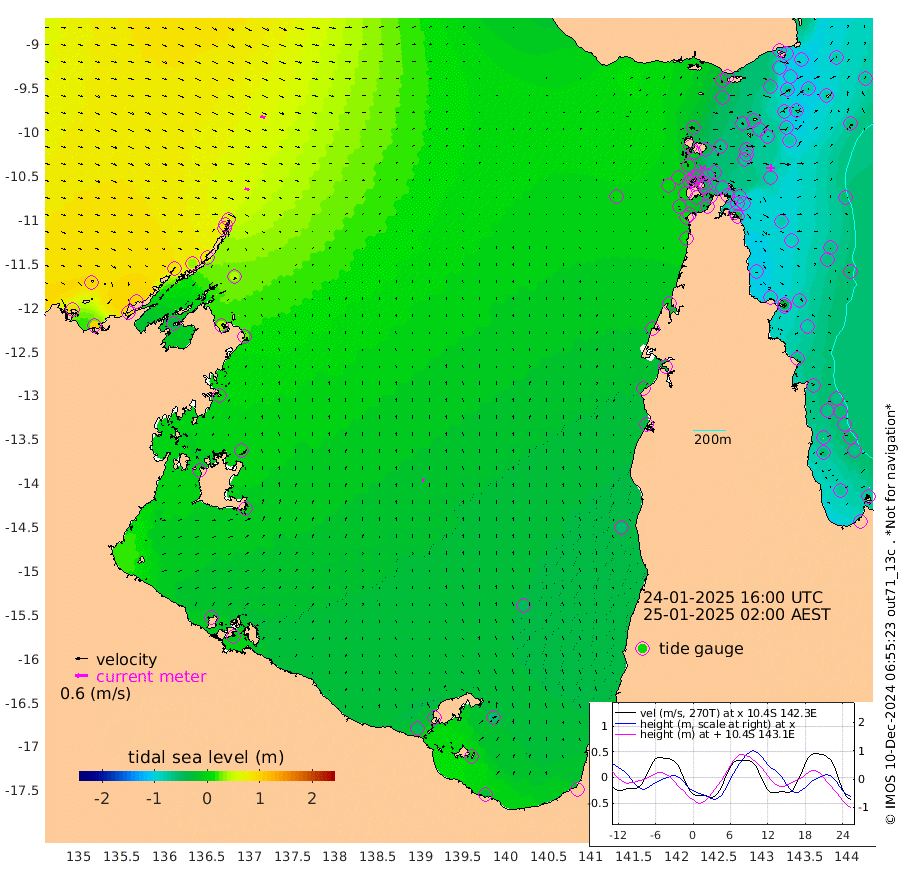 21cm/s 114T +3cm/s rms + 7cm/s -42T. ARA-GOC87 57m 16cm/s 7T +3cm/s rms + 2cm/s -2T. ARA-GOC87 60m 23cm/s 108T +2cm/s rms + 3cm/s 61T. ARA-GOC87 47m -83cm Daru -83cm Bobo Island -61cm Meer Island Barge -81cm Bramble Cay -92cm Unnamed Cay -80cm Pearce Cay -82cm Stephens Island -97cm Merrie England Shoals -97cm Mutacomal Reef -79cm Darnley Island Barge -73cm East Cay -80cm Yorke Island Barge -84cm Rennel Island -80cm Aureed Island -74cm Dungeness Reef -55cm Zagai Island -61cm Yam Island -26cm Dauan Island -41cm Saibai Island -43cm Phipi Reef -61cm Warrior Reef - West -26cm Mabuiag Island Barge -78cm Half Way Island -79cm Coconut Island -82cm Dugong Islet -65cm Poll Island -74cm Kirkcaldie Reef -61cm Suarji Island -70cm Sue Islet -14cm Hawkesbury Island -56cm Alert Patches -56cm Twin Island -9cm Badu Island -45cm St Pauls (Moa Island) -15cm Kubin (Moa Island) -38cm Ince Point -29cm Thursday Island -31cm Nardana Patches -25cm Turtle Head -16cm Round Island -10cm Goods Island 3cm Booby Island -6cm White Rocks Area 1cm Carpentaria -42cm Papou Point -7cm Bampfield Head 8cm Crab Island -3cm Red Wallis Island -19cm Packe Island -86cm Harrington Reef -16cm Herald Camp -16cm Sharp Point -31cm Red Island Point -36cm Possession Island -62cm Alpha Rock -68cm Frederick Point -85cm Wyborn Reef Light -80cm Tetley Island -59cm Triangle Reef -70cm Turtle Head Island -64cm Maclennan Cay -51cm Raine Island -81cm Mcsweeny Reef -83cm Collette Reef -65cm Shadwell Reef -90cm Hannibal Island -83cm Round Point 11cm Vrilya Point -82cm Cape Grenville -70cm Hicks Island -82cm Sir Charles Hardy Island -23cm Harvey Island -81cm Kay Reef -64cm Rocky Island -65cm Chapman Island -61cm Ham Reef -60cm Jubilee Reef -54cm Night Island -64cm Unnamed Reef No. 3 -64cm Morris Island -52cm 1st 3 Mile Opening -61cm Creech Reef -57cm Fife Island -70cm Eden Reef -68cm Stanley Island -74cm Normanby River 97cm Yabooma Island 100cm Hutchison River 96cm Elcho Island 92cm North West Crocodile Island 55cm Cape Wessel 84cm Stevens Island 32cm Guluwuru Island 71cm Hopeful Bay 70cm Auster Point 80cm Two Island Bay 93cm Cadell Strait -36cm Mallison Island 40cm Melville Bay (Gove Harbour) 45cm Truant Island 27cm Cape Arnhem 13cm Cape Grey 8cm Hawk Island 12cm Milner Bay (Groote Eylandt) -1cm Cape Beatrice -14cm West Island -15cm Centre Island -43cm Mornington Island -47cm West Wellesley Islands -54cm Bountiful Island -25cm Albert River Mouth -13cm Sweers Island -32cm Karumba -50cm Nassau River Offshore -53cm Christmas Creek -33cm Archer River -22cm Boyd Point -22cm Weipa (Humbug Point) 2cm Pennefather River 0cm Cullen Point