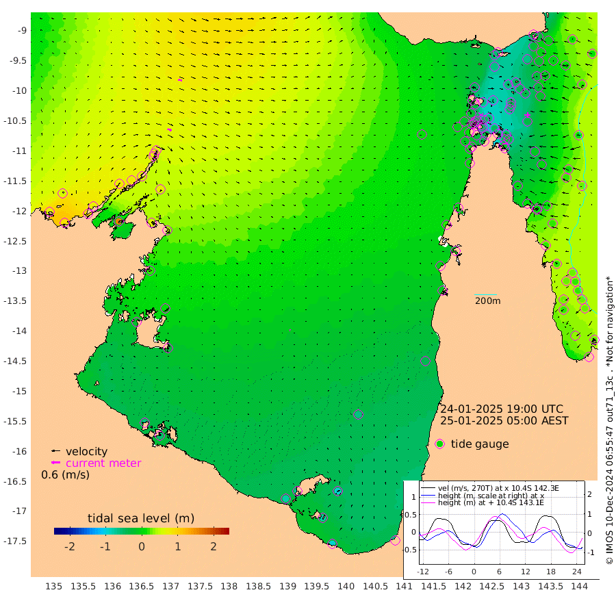 29cm/s 112T +3cm/s rms + 7cm/s -42T. ARA-GOC87 57m 6cm/s 110T +3cm/s rms + 2cm/s -2T. ARA-GOC87 60m 26cm/s 106T +2cm/s rms + 3cm/s 61T. ARA-GOC87 47m -26cm Daru -24cm Bobo Island 22cm Meer Island Barge 10cm Bramble Cay -7cm Unnamed Cay -19cm Pearce Cay -5cm Stephens Island -3cm Merrie England Shoals -29cm Mutacomal Reef 4cm Darnley Island Barge 14cm East Cay -12cm Yorke Island Barge -24cm Rennel Island -27cm Aureed Island -38cm Dungeness Reef -50cm Zagai Island -60cm Yam Island -58cm Dauan Island -55cm Saibai Island -60cm Phipi Reef -61cm Warrior Reef - West -48cm Mabuiag Island Barge -22cm Half Way Island -35cm Coconut Island -35cm Dugong Islet -50cm Poll Island -47cm Kirkcaldie Reef -71cm Suarji Island -42cm Sue Islet -15cm Hawkesbury Island -52cm Alert Patches -57cm Twin Island -21cm Badu Island -61cm St Pauls (Moa Island) -27cm Kubin (Moa Island) -48cm Ince Point -43cm Thursday Island -44cm Nardana Patches -33cm Turtle Head -16cm Round Island -12cm Goods Island -1cm Booby Island -17cm White Rocks Area 12cm Carpentaria -52cm Papou Point 13cm Bampfield Head 2cm Crab Island -14cm Red Wallis Island -26cm Packe Island -42cm Harrington Reef -15cm Herald Camp -24cm Sharp Point -37cm Red Island Point -36cm Possession Island -48cm Alpha Rock -48cm Frederick Point -25cm Wyborn Reef Light -31cm Tetley Island 7cm Triangle Reef -14cm Turtle Head Island 9cm Maclennan Cay 27cm Raine Island -8cm Mcsweeny Reef 0cm Collette Reef 19cm Shadwell Reef 4cm Hannibal Island 9cm Round Point 13cm Vrilya Point 10cm Cape Grenville 12cm Hicks Island 11cm Sir Charles Hardy Island 3cm Harvey Island 21cm Kay Reef 22cm Rocky Island 22cm Chapman Island 25cm Ham Reef 25cm Jubilee Reef 19cm Night Island 22cm Unnamed Reef No. 3 25cm Morris Island 30cm 1st 3 Mile Opening 24cm Creech Reef 21cm Fife Island 36cm Eden Reef 28cm Stanley Island 22cm Normanby River 66cm Yabooma Island 85cm Hutchison River 74cm Elcho Island 60cm North West Crocodile Island 61cm Cape Wessel 78cm Stevens Island 81cm Guluwuru Island 73cm Hopeful Bay 69cm Auster Point 74cm Two Island Bay 90cm Cadell Strait 162cm Mallison Island 68cm Melville Bay (Gove Harbour) 75cm Truant Island 49cm Cape Arnhem 22cm Cape Grey 10cm Hawk Island -15cm Milner Bay (Groote Eylandt) -28cm Cape Beatrice -61cm West Island -59cm Centre Island -71cm Mornington Island -78cm West Wellesley Islands -90cm Bountiful Island -92cm Albert River Mouth -81cm Sweers Island -94cm Karumba -64cm Nassau River Offshore -44cm Christmas Creek -9cm Archer River -1cm Boyd Point -4cm Weipa (Humbug Point) 17cm Pennefather River 3cm Cullen Point