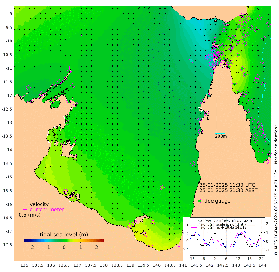 12cm/s 14T +3cm/s rms + 7cm/s -42T. ARA-GOC87 57m 19cm/s -3T +3cm/s rms + 2cm/s -2T. ARA-GOC87 60m 12cm/s 31T +2cm/s rms + 3cm/s 61T. ARA-GOC87 47m 12cm Daru 17cm Bobo Island -15cm Meer Island Barge 6cm Bramble Cay 14cm Unnamed Cay 11cm Pearce Cay 6cm Stephens Island 24cm Merrie England Shoals 28cm Mutacomal Reef 0cm Darnley Island Barge -8cm East Cay 5cm Yorke Island Barge 9cm Rennel Island 11cm Aureed Island 0cm Dungeness Reef -6cm Zagai Island -4cm Yam Island -56cm Dauan Island -40cm Saibai Island -48cm Phipi Reef -14cm Warrior Reef - West -44cm Mabuiag Island Barge 14cm Half Way Island 11cm Coconut Island 11cm Dugong Islet 5cm Poll Island 3cm Kirkcaldie Reef -12cm Suarji Island 0cm Sue Islet -99cm Hawkesbury Island -23cm Alert Patches -12cm Twin Island -90cm Badu Island -20cm St Pauls (Moa Island) -76cm Kubin (Moa Island) -37cm Ince Point -49cm Thursday Island -47cm Nardana Patches -73cm Turtle Head -88cm Round Island -100cm Goods Island -113cm Booby Island -92cm White Rocks Area -89cm Carpentaria -17cm Papou Point -131cm Bampfield Head -93cm Crab Island -93cm Red Wallis Island -76cm Packe Island 19cm Harrington Reef -113cm Herald Camp 4cm Sharp Point -55cm Red Island Point -48cm Possession Island 4cm Alpha Rock 0cm Frederick Point 19cm Wyborn Reef Light 17cm Tetley Island -11cm Triangle Reef 1cm Turtle Head Island -14cm Maclennan Cay -24cm Raine Island 8cm Mcsweeny Reef 6cm Collette Reef -13cm Shadwell Reef 10cm Hannibal Island 6cm Round Point -83cm Vrilya Point 3cm Cape Grenville -10cm Hicks Island -16cm Sir Charles Hardy Island -2cm Harvey Island -2cm Kay Reef -18cm Rocky Island -17cm Chapman Island -20cm Ham Reef -19cm Jubilee Reef -14cm Night Island -15cm Unnamed Reef No. 3 -17cm Morris Island -32cm 1st 3 Mile Opening -21cm Creech Reef -14cm Fife Island -20cm Eden Reef -15cm Stanley Island -6cm Normanby River -21cm Yabooma Island -30cm Hutchison River -17cm Elcho Island -10cm North West Crocodile Island 2cm Cape Wessel 3cm Stevens Island -12cm Guluwuru Island -4cm Hopeful Bay -10cm Auster Point -11cm Two Island Bay -17cm Cadell Strait 39cm Mallison Island -10cm Melville Bay (Gove Harbour) -13cm Truant Island -7cm Cape Arnhem 6cm Cape Grey 17cm Hawk Island 46cm Milner Bay (Groote Eylandt) 47cm Cape Beatrice 69cm West Island 69cm Centre Island 55cm Mornington Island 61cm West Wellesley Islands 55cm Bountiful Island 84cm Albert River Mouth 89cm Sweers Island 71cm Karumba 25cm Nassau River Offshore -14cm Christmas Creek -48cm Archer River -65cm Boyd Point -74cm Weipa (Humbug Point) -58cm Pennefather River -81cm Cullen Point
