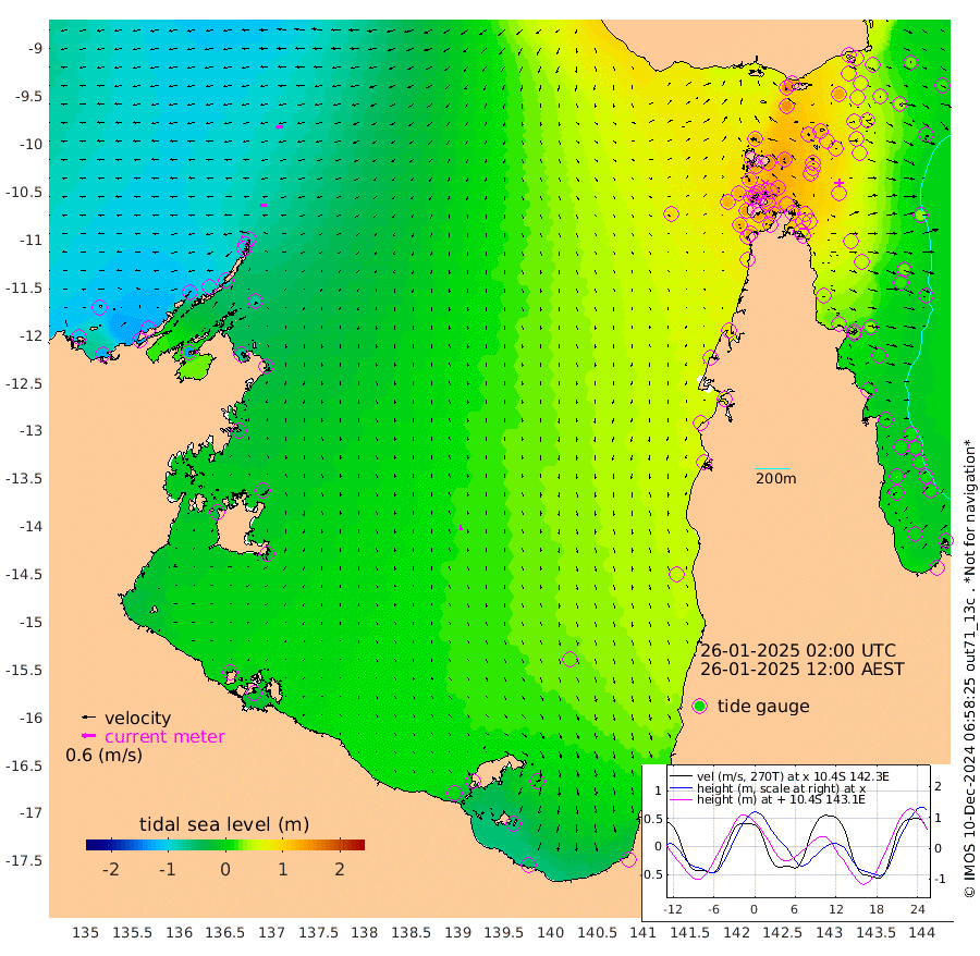 27cm/s -92T +3cm/s rms + 7cm/s -42T. ARA-GOC87 57m 22cm/s 177T +3cm/s rms + 2cm/s -2T. ARA-GOC87 60m 33cm/s -96T +2cm/s rms + 3cm/s 61T. ARA-GOC87 47m 80cm Daru 71cm Bobo Island 14cm Meer Island Barge 27cm Bramble Cay 54cm Unnamed Cay 68cm Pearce Cay 48cm Stephens Island 45cm Merrie England Shoals 77cm Mutacomal Reef 39cm Darnley Island Barge 21cm East Cay 60cm Yorke Island Barge 75cm Rennel Island 77cm Aureed Island 96cm Dungeness Reef 114cm Zagai Island 118cm Yam Island 145cm Dauan Island 132cm Saibai Island 144cm Phipi Reef 131cm Warrior Reef - West 130cm Mabuiag Island Barge 65cm Half Way Island 95cm Coconut Island 85cm Dugong Islet 111cm Poll Island 103cm Kirkcaldie Reef 150cm Suarji Island 105cm Sue Islet 134cm Hawkesbury Island 142cm Alert Patches 135cm Twin Island 131cm Badu Island 143cm St Pauls (Moa Island) 130cm Kubin (Moa Island) 136cm Ince Point 135cm Thursday Island 137cm Nardana Patches 137cm Turtle Head 131cm Round Island 126cm Goods Island 120cm Booby Island 124cm White Rocks Area 93cm Carpentaria 119cm Papou Point 138cm Bampfield Head 93cm Crab Island 123cm Red Wallis Island 133cm Packe Island 97cm Harrington Reef 139cm Herald Camp 40cm Sharp Point 117cm Red Island Point 131cm Possession Island 115cm Alpha Rock 119cm Frederick Point 86cm Wyborn Reef Light 95cm Tetley Island 37cm Triangle Reef 81cm Turtle Head Island 28cm Maclennan Cay 7cm Raine Island 57cm Mcsweeny Reef 46cm Collette Reef 22cm Shadwell Reef 41cm Hannibal Island 33cm Round Point 76cm Vrilya Point 28cm Cape Grenville 25cm Hicks Island 32cm Sir Charles Hardy Island 9cm Harvey Island 14cm Kay Reef 13cm Rocky Island 15cm Chapman Island 11cm Ham Reef 9cm Jubilee Reef 13cm Night Island 13cm Unnamed Reef No. 3 10cm Morris Island 10cm 1st 3 Mile Opening 12cm Creech Reef 14cm Fife Island -3cm Eden Reef 5cm Stanley Island 4cm Normanby River -107cm Yabooma Island -121cm Hutchison River -116cm Elcho Island -111cm North West Crocodile Island -79cm Cape Wessel -114cm Stevens Island -85cm Guluwuru Island -101cm Hopeful Bay -85cm Auster Point -98cm Two Island Bay -124cm Cadell Strait -133cm Mallison Island -71cm Melville Bay (Gove Harbour) -72cm Truant Island -47cm Cape Arnhem -39cm Cape Grey -29cm Hawk Island -40cm Milner Bay (Groote Eylandt) -29cm Cape Beatrice -15cm West Island -14cm Centre Island 0cm Mornington Island 4cm West Wellesley Islands -2cm Bountiful Island -50cm Albert River Mouth -55cm Sweers Island -28cm Karumba 26cm Nassau River Offshore 52cm Christmas Creek 57cm Archer River 70cm Boyd Point 72cm Weipa (Humbug Point) 51cm Pennefather River 83cm Cullen Point