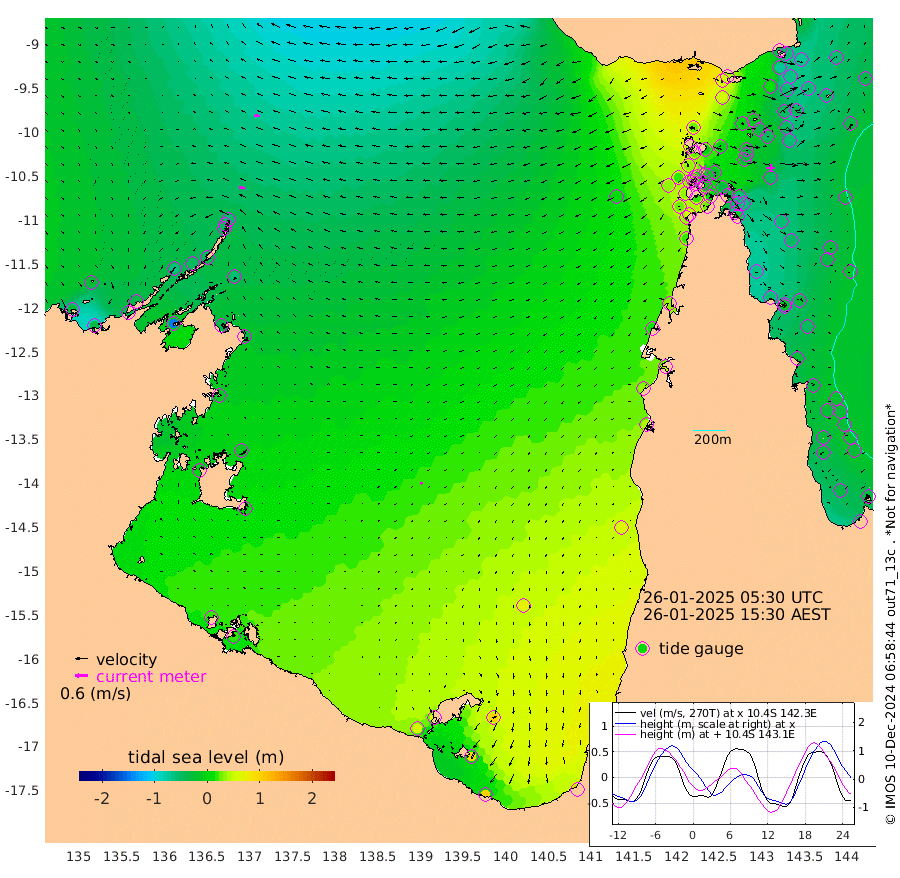 29cm/s -79T +3cm/s rms + 7cm/s -42T. ARA-GOC87 57m 14cm/s -132T +3cm/s rms + 2cm/s -2T. ARA-GOC87 60m 27cm/s -82T +2cm/s rms + 3cm/s 61T. ARA-GOC87 47m -47cm Daru -54cm Bobo Island -30cm Meer Island Barge -53cm Bramble Cay -61cm Unnamed Cay -56cm Pearce Cay -53cm Stephens Island -74cm Merrie England Shoals -68cm Mutacomal Reef -46cm Darnley Island Barge -34cm East Cay -46cm Yorke Island Barge -50cm Rennel Island -47cm Aureed Island -32cm Dungeness Reef -9cm Zagai Island -6cm Yam Island 58cm Dauan Island 44cm Saibai Island 57cm Phipi Reef 9cm Warrior Reef - West 25cm Mabuiag Island Barge -55cm Half Way Island -50cm Coconut Island -49cm Dugong Islet -33cm Poll Island -29cm Kirkcaldie Reef -7cm Suarji Island -26cm Sue Islet 34cm Hawkesbury Island -14cm Alert Patches -21cm Twin Island 36cm Badu Island -7cm St Pauls (Moa Island) 24cm Kubin (Moa Island) 1cm Ince Point 7cm Thursday Island 7cm Nardana Patches 24cm Turtle Head 31cm Round Island 33cm Goods Island 36cm Booby Island 22cm White Rocks Area 7cm Carpentaria -8cm Papou Point 31cm Bampfield Head 33cm Crab Island 25cm Red Wallis Island 19cm Packe Island -60cm Harrington Reef 57cm Herald Camp 0cm Sharp Point 26cm Red Island Point 6cm Possession Island -36cm Alpha Rock -37cm Frederick Point -67cm Wyborn Reef Light -63cm Tetley Island -29cm Triangle Reef -65cm Turtle Head Island -25cm Maclennan Cay -17cm Raine Island -54cm Mcsweeny Reef -51cm Collette Reef -31cm Shadwell Reef -61cm Hannibal Island -58cm Round Point 17cm Vrilya Point -49cm Cape Grenville -32cm Hicks Island -26cm Sir Charles Hardy Island -11cm Harvey Island -45cm Kay Reef -23cm Rocky Island -25cm Chapman Island -20cm Ham Reef -24cm Jubilee Reef -26cm Night Island -26cm Unnamed Reef No. 3 -28cm Morris Island -18cm 1st 3 Mile Opening -23cm Creech Reef -27cm Fife Island -32cm Eden Reef -32cm Stanley Island -39cm Normanby River -28cm Yabooma Island -34cm Hutchison River -33cm Elcho Island -25cm North West Crocodile Island -59cm Cape Wessel -62cm Stevens Island -52cm Guluwuru Island -46cm Hopeful Bay -50cm Auster Point -46cm Two Island Bay -44cm Cadell Strait -148cm Mallison Island -44cm Melville Bay (Gove Harbour) -53cm Truant Island -32cm Cape Arnhem -12cm Cape Grey -9cm Hawk Island -4cm Milner Bay (Groote Eylandt) 7cm Cape Beatrice 17cm West Island 17cm Centre Island 65cm Mornington Island 58cm West Wellesley Islands 100cm Bountiful Island 100cm Albert River Mouth 91cm Sweers Island 114cm Karumba 71cm Nassau River Offshore 66cm Christmas Creek 44cm Archer River 37cm Boyd Point 52cm Weipa (Humbug Point) 12cm Pennefather River 33cm Cullen Point