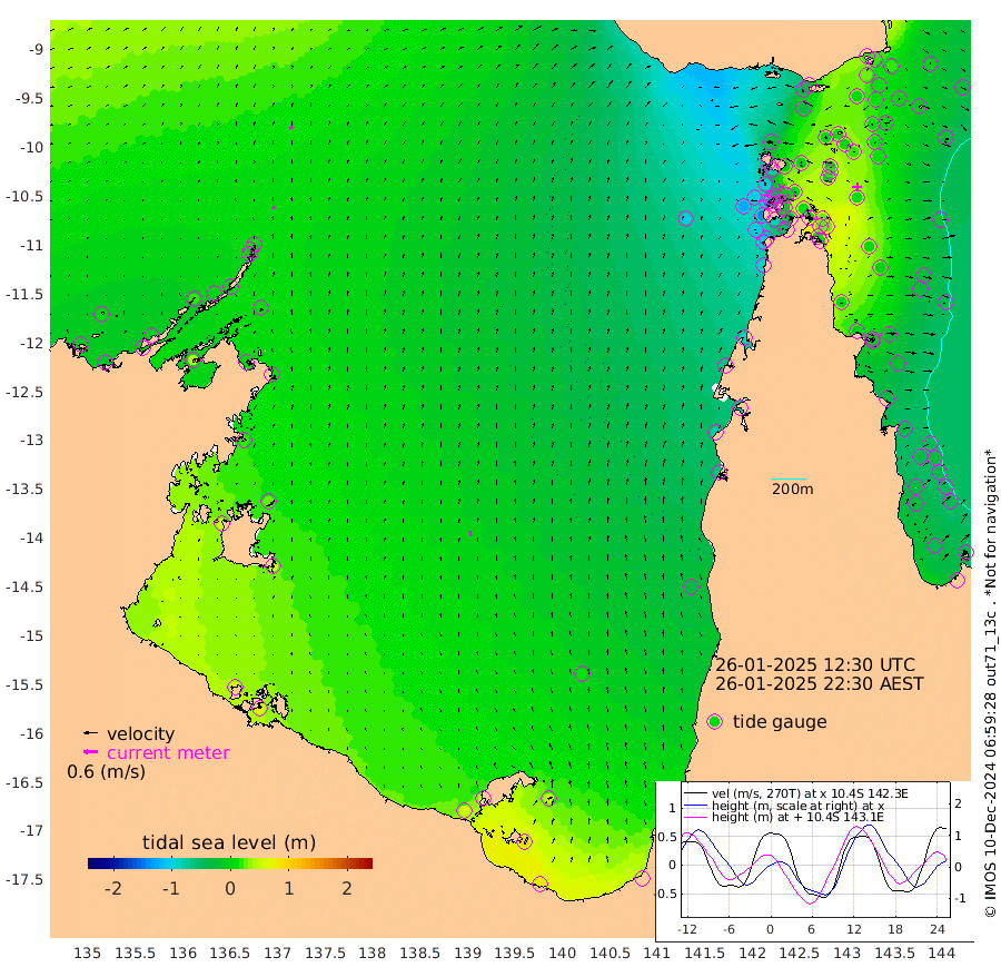14cm/s 36T +3cm/s rms + 7cm/s -42T. ARA-GOC87 57m 24cm/s 1T +3cm/s rms + 2cm/s -2T. ARA-GOC87 60m 17cm/s 48T +2cm/s rms + 3cm/s 61T. ARA-GOC87 47m 16cm Daru 20cm Bobo Island -28cm Meer Island Barge -5cm Bramble Cay 9cm Unnamed Cay 11cm Pearce Cay 0cm Stephens Island 17cm Merrie England Shoals 29cm Mutacomal Reef -8cm Darnley Island Barge -23cm East Cay 4cm Yorke Island Barge 9cm Rennel Island 12cm Aureed Island 5cm Dungeness Reef 9cm Zagai Island 7cm Yam Island -39cm Dauan Island -23cm Saibai Island -33cm Phipi Reef 0cm Warrior Reef - West -28cm Mabuiag Island Barge 12cm Half Way Island 18cm Coconut Island 12cm Dugong Islet 15cm Poll Island 9cm Kirkcaldie Reef 5cm Suarji Island 11cm Sue Islet -103cm Hawkesbury Island -11cm Alert Patches 0cm Twin Island -86cm Badu Island -3cm St Pauls (Moa Island) -75cm Kubin (Moa Island) -27cm Ince Point -41cm Thursday Island -38cm Nardana Patches -72cm Turtle Head -89cm Round Island -106cm Goods Island -123cm Booby Island -99cm White Rocks Area -101cm Carpentaria -4cm Papou Point -140cm Bampfield Head -102cm Crab Island -103cm Red Wallis Island -83cm Packe Island 24cm Harrington Reef -126cm Herald Camp 10cm Sharp Point -53cm Red Island Point -40cm Possession Island 14cm Alpha Rock 11cm Frederick Point 25cm Wyborn Reef Light 25cm Tetley Island -20cm Triangle Reef 8cm Turtle Head Island -28cm Maclennan Cay -40cm Raine Island 5cm Mcsweeny Reef 0cm Collette Reef -25cm Shadwell Reef 3cm Hannibal Island -5cm Round Point -93cm Vrilya Point -11cm Cape Grenville -23cm Hicks Island -34cm Sir Charles Hardy Island -6cm Harvey Island -19cm Kay Reef -34cm Rocky Island -34cm Chapman Island -38cm Ham Reef -35cm Jubilee Reef -29cm Night Island -33cm Unnamed Reef No. 3 -34cm Morris Island -48cm 1st 3 Mile Opening -39cm Creech Reef -28cm Fife Island -43cm Eden Reef -35cm Stanley Island -26cm Normanby River -8cm Yabooma Island -15cm Hutchison River -6cm Elcho Island 1cm North West Crocodile Island 15cm Cape Wessel 19cm Stevens Island -1cm Guluwuru Island 6cm Hopeful Bay 5cm Auster Point 0cm Two Island Bay 0cm Cadell Strait 41cm Mallison Island 3cm Melville Bay (Gove Harbour) 2cm Truant Island 4cm Cape Arnhem 18cm Cape Grey 26cm Hawk Island 56cm Milner Bay (Groote Eylandt) 53cm Cape Beatrice 74cm West Island 72cm Centre Island 51cm Mornington Island 58cm West Wellesley Islands 52cm Bountiful Island 82cm Albert River Mouth 97cm Sweers Island 68cm Karumba 13cm Nassau River Offshore -31cm Christmas Creek -63cm Archer River -79cm Boyd Point -90cm Weipa (Humbug Point) -67cm Pennefather River -95cm Cullen Point