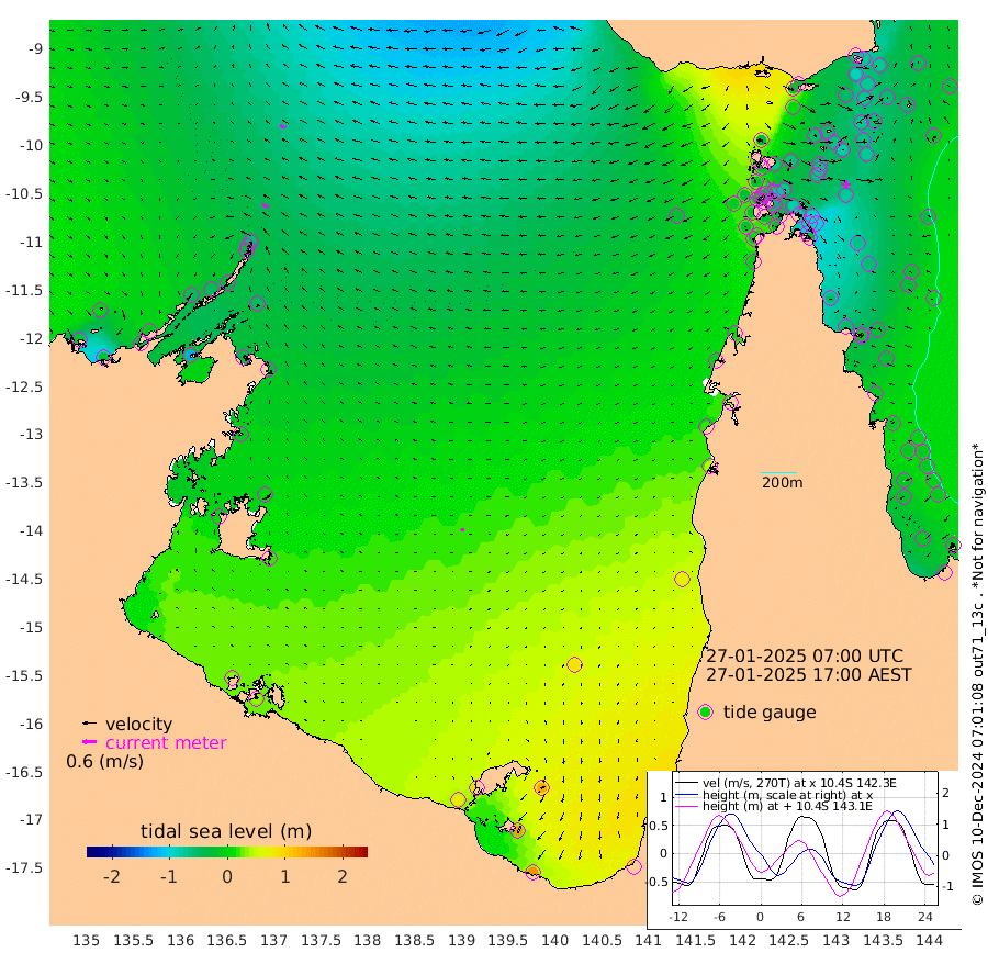 28cm/s -74T +3cm/s rms + 7cm/s -42T. ARA-GOC87 57m 14cm/s -106T +3cm/s rms + 2cm/s -2T. ARA-GOC87 60m 24cm/s -74T +2cm/s rms + 3cm/s 61T. ARA-GOC87 47m -71cm Daru -73cm Bobo Island -20cm Meer Island Barge -46cm Bramble Cay -68cm Unnamed Cay -69cm Pearce Cay -57cm Stephens Island -74cm Merrie England Shoals -86cm Mutacomal Reef -47cm Darnley Island Barge -23cm East Cay -59cm Yorke Island Barge -68cm Rennel Island -66cm Aureed Island -62cm Dungeness Reef -59cm Zagai Island -55cm Yam Island -12cm Dauan Island -19cm Saibai Island 0cm Phipi Reef -46cm Warrior Reef - West -36cm Mabuiag Island Barge -70cm Half Way Island -80cm Coconut Island -73cm Dugong Islet -75cm Poll Island -65cm Kirkcaldie Reef -66cm Suarji Island -67cm Sue Islet -15cm Hawkesbury Island -69cm Alert Patches -74cm Twin Island -20cm Badu Island -69cm St Pauls (Moa Island) -29cm Kubin (Moa Island) -55cm Ince Point -48cm Thursday Island -49cm Nardana Patches -28cm Turtle Head -15cm Round Island -13cm Goods Island -8cm Booby Island -23cm White Rocks Area -30cm Carpentaria -59cm Papou Point -16cm Bampfield Head -1cm Crab Island -19cm Red Wallis Island -27cm Packe Island -89cm Harrington Reef 13cm Herald Camp -18cm Sharp Point -17cm Red Island Point -42cm Possession Island -81cm Alpha Rock -81cm Frederick Point -94cm Wyborn Reef Light -95cm Tetley Island -31cm Triangle Reef -91cm Turtle Head Island -21cm Maclennan Cay -5cm Raine Island -64cm Mcsweeny Reef -54cm Collette Reef -24cm Shadwell Reef -59cm Hannibal Island -52cm Round Point -10cm Vrilya Point -40cm Cape Grenville -25cm Hicks Island -20cm Sir Charles Hardy Island -9cm Harvey Island -29cm Kay Reef -10cm Rocky Island -11cm Chapman Island -7cm Ham Reef -11cm Jubilee Reef -14cm Night Island -12cm Unnamed Reef No. 3 -13cm Morris Island -6cm 1st 3 Mile Opening -10cm Creech Reef -17cm Fife Island -8cm Eden Reef -14cm Stanley Island -18cm Normanby River -13cm Yabooma Island -17cm Hutchison River -13cm Elcho Island -6cm North West Crocodile Island -54cm Cape Wessel -46cm Stevens Island -47cm Guluwuru Island -26cm Hopeful Bay -42cm Auster Point -35cm Two Island Bay -31cm Cadell Strait -123cm Mallison Island -40cm Melville Bay (Gove Harbour) -52cm Truant Island -31cm Cape Arnhem -8cm Cape Grey 1cm Hawk Island 10cm Milner Bay (Groote Eylandt) 22cm Cape Beatrice 33cm West Island 36cm Centre Island 91cm Mornington Island 80cm West Wellesley Islands 130cm Bountiful Island 145cm Albert River Mouth 140cm Sweers Island 157cm Karumba 88cm Nassau River Offshore 70cm Christmas Creek 40cm Archer River 21cm Boyd Point 38cm Weipa (Humbug Point) -1cm Pennefather River 7cm Cullen Point