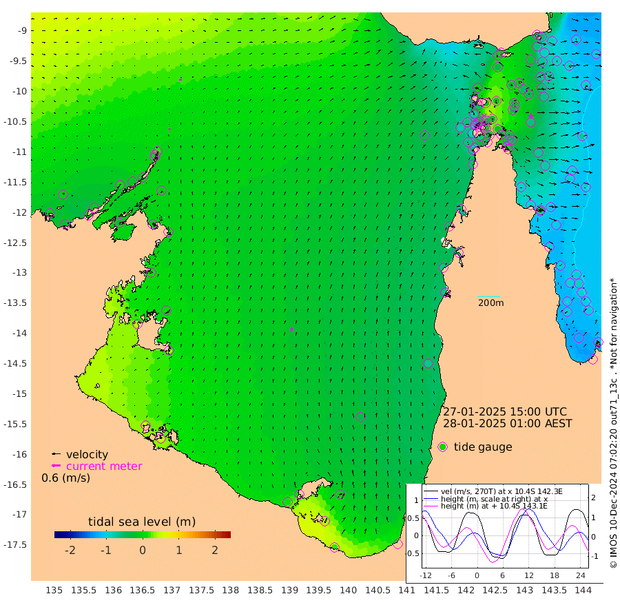 12cm/s 56T +3cm/s rms + 7cm/s -42T. ARA-GOC87 57m 30cm/s 12T +3cm/s rms + 2cm/s -2T. ARA-GOC87 60m 16cm/s 72T +2cm/s rms + 3cm/s 61T. ARA-GOC87 47m -59cm Daru -56cm Bobo Island -95cm Meer Island Barge -94cm Bramble Cay -84cm Unnamed Cay -70cm Pearce Cay -86cm Stephens Island -87cm Merrie England Shoals -62cm Mutacomal Reef -87cm Darnley Island Barge -100cm East Cay -70cm Yorke Island Barge -70cm Rennel Island -57cm Aureed Island -56cm Dungeness Reef -11cm Zagai Island -21cm Yam Island -14cm Dauan Island -1cm Saibai Island -34cm Phipi Reef -20cm Warrior Reef - West -3cm Mabuiag Island Barge -67cm Half Way Island -43cm Coconut Island -61cm Dugong Islet -28cm Poll Island -44cm Kirkcaldie Reef -12cm Suarji Island -27cm Sue Islet -78cm Hawkesbury Island -27cm Alert Patches -19cm Twin Island -52cm Badu Island -8cm St Pauls (Moa Island) -56cm Kubin (Moa Island) -25cm Ince Point -31cm Thursday Island -29cm Nardana Patches -57cm Turtle Head -69cm Round Island -79cm Goods Island -79cm Booby Island -67cm White Rocks Area -44cm Carpentaria -11cm Papou Point -95cm Bampfield Head -63cm Crab Island -66cm Red Wallis Island -68cm Packe Island -49cm Harrington Reef -99cm Herald Camp 8cm Sharp Point -45cm Red Island Point -39cm Possession Island -14cm Alpha Rock -30cm Frederick Point -49cm Wyborn Reef Light -41cm Tetley Island -75cm Triangle Reef -63cm Turtle Head Island -91cm Maclennan Cay -95cm Raine Island -74cm Mcsweeny Reef -81cm Collette Reef -91cm Shadwell Reef -91cm Hannibal Island -96cm Round Point -53cm Vrilya Point -97cm Cape Grenville -98cm Hicks Island -109cm Sir Charles Hardy Island -30cm Harvey Island -104cm Kay Reef -100cm Rocky Island -97cm Chapman Island -96cm Ham Reef -97cm Jubilee Reef -88cm Night Island -95cm Unnamed Reef No. 3 -104cm Morris Island -104cm 1st 3 Mile Opening -102cm Creech Reef -90cm Fife Island -123cm Eden Reef -110cm Stanley Island -111cm Normanby River -14cm Yabooma Island -25cm Hutchison River -9cm Elcho Island -4cm North West Crocodile Island 16cm Cape Wessel 8cm Stevens Island -13cm Guluwuru Island -6cm Hopeful Bay 5cm Auster Point 2cm Two Island Bay -9cm Cadell Strait -27cm Mallison Island -3cm Melville Bay (Gove Harbour) 0cm Truant Island 3cm Cape Arnhem 13cm Cape Grey 14cm Hawk Island 50cm Milner Bay (Groote Eylandt) 39cm Cape Beatrice 62cm West Island 59cm Centre Island 4cm Mornington Island 9cm West Wellesley Islands -6cm Bountiful Island 20cm Albert River Mouth 42cm Sweers Island 5cm Karumba -37cm Nassau River Offshore -69cm Christmas Creek -75cm Archer River -69cm Boyd Point -85cm Weipa (Humbug Point) -50cm Pennefather River -61cm Cullen Point