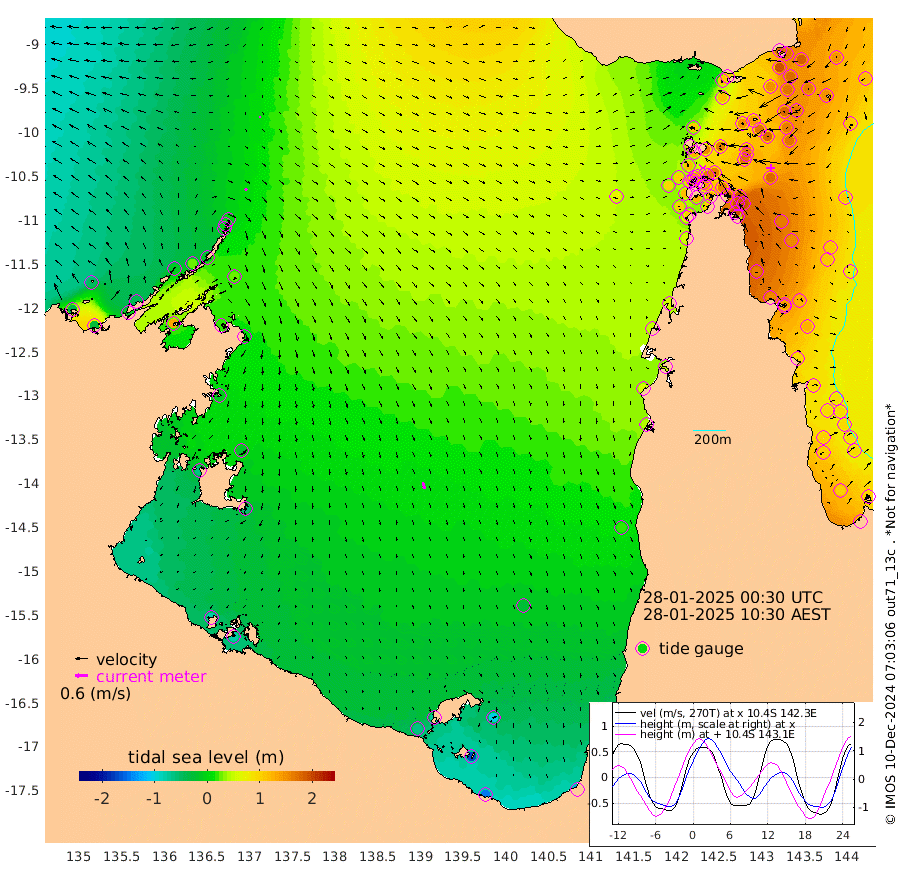 12cm/s 142T +3cm/s rms + 7cm/s -42T. ARA-GOC87 57m 33cm/s 166T +3cm/s rms + 2cm/s -2T. ARA-GOC87 60m 8cm/s -154T +2cm/s rms + 3cm/s 61T. ARA-GOC87 47m 178cm Daru 169cm Bobo Island 105cm Meer Island Barge 143cm Bramble Cay 177cm Unnamed Cay 169cm Pearce Cay 160cm Stephens Island 181cm Merrie England Shoals 194cm Mutacomal Reef 146cm Darnley Island Barge 116cm East Cay 159cm Yorke Island Barge 175cm Rennel Island 161cm Aureed Island 168cm Dungeness Reef 142cm Zagai Island 149cm Yam Island 111cm Dauan Island 102cm Saibai Island 115cm Phipi Reef 148cm Warrior Reef - West 106cm Mabuiag Island Barge 168cm Half Way Island 176cm Coconut Island 178cm Dugong Islet 166cm Poll Island 167cm Kirkcaldie Reef 158cm Suarji Island 157cm Sue Islet 119cm Hawkesbury Island 164cm Alert Patches 163cm Twin Island 109cm Badu Island 155cm St Pauls (Moa Island) 124cm Kubin (Moa Island) 142cm Ince Point 133cm Thursday Island 134cm Nardana Patches 127cm Turtle Head 116cm Round Island 110cm Goods Island 93cm Booby Island 103cm White Rocks Area 71cm Carpentaria 132cm Papou Point 118cm Bampfield Head 68cm Crab Island 99cm Red Wallis Island 127cm Packe Island 190cm Harrington Reef 108cm Herald Camp 38cm Sharp Point 99cm Red Island Point 132cm Possession Island 161cm Alpha Rock 174cm Frederick Point 194cm Wyborn Reef Light 192cm Tetley Island 110cm Triangle Reef 193cm Turtle Head Island 108cm Maclennan Cay 81cm Raine Island 163cm Mcsweeny Reef 152cm Collette Reef 111cm Shadwell Reef 164cm Hannibal Island 152cm Round Point 60cm Vrilya Point 136cm Cape Grenville 120cm Hicks Island 126cm Sir Charles Hardy Island 39cm Harvey Island 121cm Kay Reef 95cm Rocky Island 92cm Chapman Island 85cm Ham Reef 92cm Jubilee Reef 90cm Night Island 91cm Unnamed Reef No. 3 99cm Morris Island 90cm 1st 3 Mile Opening 94cm Creech Reef 98cm Fife Island 102cm Eden Reef 103cm Stanley Island 109cm Normanby River -34cm Yabooma Island -26cm Hutchison River -42cm Elcho Island -49cm North West Crocodile Island 3cm Cape Wessel -13cm Stevens Island 29cm Guluwuru Island -20cm Hopeful Bay -7cm Auster Point -15cm Two Island Bay -14cm Cadell Strait 133cm Mallison Island 17cm Melville Bay (Gove Harbour) 25cm Truant Island 14cm Cape Arnhem -13cm Cape Grey -17cm Hawk Island -61cm Milner Bay (Groote Eylandt) -56cm Cape Beatrice -79cm West Island -81cm Centre Island -70cm Mornington Island -62cm West Wellesley Islands -98cm Bountiful Island -148cm Albert River Mouth -167cm Sweers Island -140cm Karumba -27cm Nassau River Offshore 19cm Christmas Creek 39cm Archer River 54cm Boyd Point 49cm Weipa (Humbug Point) 47cm Pennefather River 56cm Cullen Point