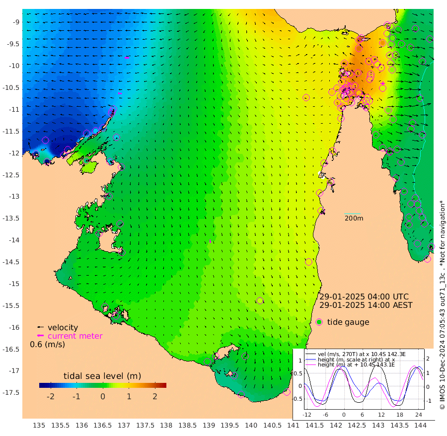 34cm/s -87T +3cm/s rms + 7cm/s -42T. ARA-GOC87 57m 31cm/s 175T +3cm/s rms + 2cm/s -2T. ARA-GOC87 60m 43cm/s -92T +2cm/s rms + 3cm/s 61T. ARA-GOC87 47m 64cm Daru 43cm Bobo Island -21cm Meer Island Barge -11cm Bramble Cay 23cm Unnamed Cay 26cm Pearce Cay 11cm Stephens Island 12cm Merrie England Shoals 57cm Mutacomal Reef 7cm Darnley Island Barge -18cm East Cay 34cm Yorke Island Barge 45cm Rennel Island 48cm Aureed Island 76cm Dungeness Reef 125cm Zagai Island 129cm Yam Island 185cm Dauan Island 173cm Saibai Island 168cm Phipi Reef 150cm Warrior Reef - West 149cm Mabuiag Island Barge 36cm Half Way Island 77cm Coconut Island 60cm Dugong Islet 102cm Poll Island 95cm Kirkcaldie Reef 143cm Suarji Island 103cm Sue Islet 124cm Hawkesbury Island 137cm Alert Patches 132cm Twin Island 133cm Badu Island 149cm St Pauls (Moa Island) 130cm Kubin (Moa Island) 140cm Ince Point 137cm Thursday Island 139cm Nardana Patches 135cm Turtle Head 126cm Round Island 115cm Goods Island 110cm Booby Island 104cm White Rocks Area 94cm Carpentaria 119cm Papou Point 119cm Bampfield Head 95cm Crab Island 119cm Red Wallis Island 134cm Packe Island 68cm Harrington Reef 140cm Herald Camp 52cm Sharp Point 110cm Red Island Point 121cm Possession Island 118cm Alpha Rock 108cm Frederick Point 66cm Wyborn Reef Light 80cm Tetley Island 11cm Triangle Reef 44cm Turtle Head Island -5cm Maclennan Cay -25cm Raine Island 27cm Mcsweeny Reef 17cm Collette Reef -5cm Shadwell Reef 6cm Hannibal Island -8cm Round Point 82cm Vrilya Point -8cm Cape Grenville -12cm Hicks Island -1cm Sir Charles Hardy Island -2cm Harvey Island -25cm Kay Reef -23cm Rocky Island -22cm Chapman Island -22cm Ham Reef -24cm Jubilee Reef -15cm Night Island -20cm Unnamed Reef No. 3 -28cm Morris Island -26cm 1st 3 Mile Opening -24cm Creech Reef -17cm Fife Island -49cm Eden Reef -33cm Stanley Island -44cm Normanby River -190cm Yabooma Island -214cm Hutchison River -194cm Elcho Island -186cm North West Crocodile Island -126cm Cape Wessel -177cm Stevens Island -112cm Guluwuru Island -163cm Hopeful Bay -145cm Auster Point -151cm Two Island Bay -187cm Cadell Strait -65cm Mallison Island -102cm Melville Bay (Gove Harbour) -104cm Truant Island -62cm Cape Arnhem -58cm Cape Grey -41cm Hawk Island -47cm Milner Bay (Groote Eylandt) -31cm Cape Beatrice -9cm West Island -9cm Centre Island 16cm Mornington Island 15cm West Wellesley Islands -3cm Bountiful Island -37cm Albert River Mouth -59cm Sweers Island -16cm Karumba 46cm Nassau River Offshore 74cm Christmas Creek 65cm Archer River 78cm Boyd Point 76cm Weipa (Humbug Point) 58cm Pennefather River 93cm Cullen Point