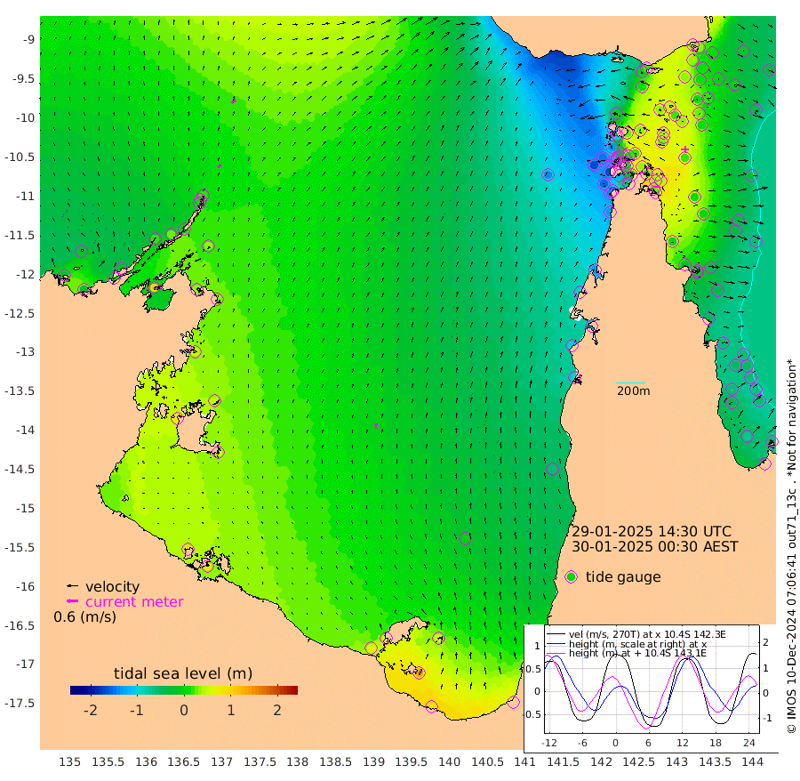 23cm/s 48T +3cm/s rms + 7cm/s -42T. ARA-GOC87 57m 29cm/s 6T +3cm/s rms + 2cm/s -2T. ARA-GOC87 60m 28cm/s 49T +2cm/s rms + 3cm/s 61T. ARA-GOC87 47m 36cm Daru 35cm Bobo Island -38cm Meer Island Barge -14cm Bramble Cay 13cm Unnamed Cay 14cm Pearce Cay 0cm Stephens Island 14cm Merrie England Shoals 37cm Mutacomal Reef -5cm Darnley Island Barge -37cm East Cay 17cm Yorke Island Barge 15cm Rennel Island 23cm Aureed Island 21cm Dungeness Reef 45cm Zagai Island 30cm Yam Island 1cm Dauan Island 18cm Saibai Island 9cm Phipi Reef 35cm Warrior Reef - West -4cm Mabuiag Island Barge 14cm Half Way Island 35cm Coconut Island 19cm Dugong Islet 34cm Poll Island 24cm Kirkcaldie Reef 34cm Suarji Island 39cm Sue Islet -133cm Hawkesbury Island 9cm Alert Patches 17cm Twin Island -99cm Badu Island 24cm St Pauls (Moa Island) -90cm Kubin (Moa Island) -18cm Ince Point -42cm Thursday Island -35cm Nardana Patches -84cm Turtle Head -100cm Round Island -142cm Goods Island -169cm Booby Island -149cm White Rocks Area -141cm Carpentaria 13cm Papou Point -166cm Bampfield Head -141cm Crab Island -155cm Red Wallis Island -118cm Packe Island 36cm Harrington Reef -158cm Herald Camp 22cm Sharp Point -68cm Red Island Point -26cm Possession Island 31cm Alpha Rock 28cm Frederick Point 43cm Wyborn Reef Light 45cm Tetley Island -27cm Triangle Reef 27cm Turtle Head Island -42cm Maclennan Cay -58cm Raine Island 10cm Mcsweeny Reef 3cm Collette Reef -31cm Shadwell Reef 3cm Hannibal Island -16cm Round Point -134cm Vrilya Point -25cm Cape Grenville -34cm Hicks Island -49cm Sir Charles Hardy Island -8cm Harvey Island -39cm Kay Reef -50cm Rocky Island -56cm Chapman Island -57cm Ham Reef -52cm Jubilee Reef -45cm Night Island -57cm Unnamed Reef No. 3 -54cm Morris Island -63cm 1st 3 Mile Opening -58cm Creech Reef -43cm Fife Island -70cm Eden Reef -57cm Stanley Island -52cm Normanby River -24cm Yabooma Island -24cm Hutchison River -19cm Elcho Island -15cm North West Crocodile Island 21cm Cape Wessel 19cm Stevens Island 29cm Guluwuru Island 4cm Hopeful Bay 14cm Auster Point 6cm Two Island Bay 11cm Cadell Strait 103cm Mallison Island 32cm Melville Bay (Gove Harbour) 32cm Truant Island 31cm Cape Arnhem 49cm Cape Grey 51cm Hawk Island 78cm Milner Bay (Groote Eylandt) 65cm Cape Beatrice 85cm West Island 81cm Centre Island 60cm Mornington Island 62cm West Wellesley Islands 66cm Bountiful Island 88cm Albert River Mouth 130cm Sweers Island 77cm Karumba -2cm Nassau River Offshore -54cm Christmas Creek -92cm Archer River -104cm Boyd Point -124cm Weipa (Humbug Point) -92cm Pennefather River -132cm Cullen Point