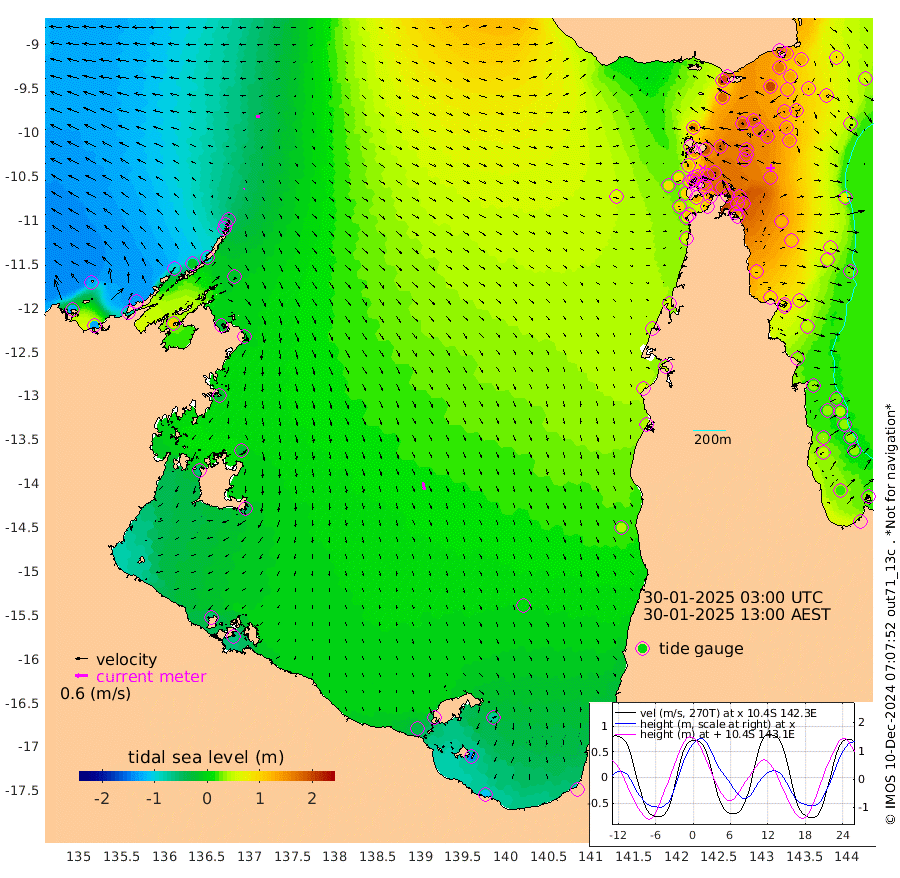 6cm/s -124T +3cm/s rms + 7cm/s -42T. ARA-GOC87 57m 37cm/s 167T +3cm/s rms + 2cm/s -2T. ARA-GOC87 60m 18cm/s -96T +2cm/s rms + 3cm/s 61T. ARA-GOC87 47m 163cm Daru 143cm Bobo Island 50cm Meer Island Barge 83cm Bramble Cay 129cm Unnamed Cay 127cm Pearce Cay 111cm Stephens Island 123cm Merrie England Shoals 164cm Mutacomal Reef 99cm Darnley Island Barge 56cm East Cay 128cm Yorke Island Barge 142cm Rennel Island 136cm Aureed Island 159cm Dungeness Reef 179cm Zagai Island 185cm Yam Island 192cm Dauan Island 180cm Saibai Island 177cm Phipi Reef 198cm Warrior Reef - West 156cm Mabuiag Island Barge 136cm Half Way Island 163cm Coconut Island 156cm Dugong Islet 175cm Poll Island 172cm Kirkcaldie Reef 186cm Suarji Island 172cm Sue Islet 119cm Hawkesbury Island 182cm Alert Patches 183cm Twin Island 127cm Badu Island 193cm St Pauls (Moa Island) 138cm Kubin (Moa Island) 168cm Ince Point 154cm Thursday Island 159cm Nardana Patches 140cm Turtle Head 119cm Round Island 105cm Goods Island 83cm Booby Island 88cm White Rocks Area 65cm Carpentaria 160cm Papou Point 95cm Bampfield Head 68cm Crab Island 96cm Red Wallis Island 132cm Packe Island 168cm Harrington Reef 113cm Herald Camp 60cm Sharp Point 112cm Red Island Point 142cm Possession Island 177cm Alpha Rock 180cm Frederick Point 170cm Wyborn Reef Light 178cm Tetley Island 71cm Triangle Reef 156cm Turtle Head Island 59cm Maclennan Cay 26cm Raine Island 123cm Mcsweeny Reef 106cm Collette Reef 62cm Shadwell Reef 107cm Hannibal Island 87cm Round Point 56cm Vrilya Point 75cm Cape Grenville 64cm Hicks Island 73cm Sir Charles Hardy Island 23cm Harvey Island 52cm Kay Reef 37cm Rocky Island 31cm Chapman Island 29cm Ham Reef 36cm Jubilee Reef 39cm Night Island 33cm Unnamed Reef No. 3 36cm Morris Island 30cm 1st 3 Mile Opening 35cm Creech Reef 46cm Fife Island 22cm Eden Reef 35cm Stanley Island 33cm Normanby River -121cm Yabooma Island -126cm Hutchison River -129cm Elcho Island -126cm North West Crocodile Island -51cm Cape Wessel -91cm Stevens Island -14cm Guluwuru Island -99cm Hopeful Bay -73cm Auster Point -75cm Two Island Bay -82cm Cadell Strait 107cm Mallison Island -24cm Melville Bay (Gove Harbour) -18cm Truant Island -8cm Cape Arnhem -27cm Cape Grey -28cm Hawk Island -59cm Milner Bay (Groote Eylandt) -48cm Cape Beatrice -54cm West Island -61cm Centre Island -38cm Mornington Island -33cm West Wellesley Islands -69cm Bountiful Island -112cm Albert River Mouth -142cm Sweers Island -100cm Karumba 2cm Nassau River Offshore 41cm Christmas Creek 38cm Archer River 57cm Boyd Point 47cm Weipa (Humbug Point) 42cm Pennefather River 60cm Cullen Point
