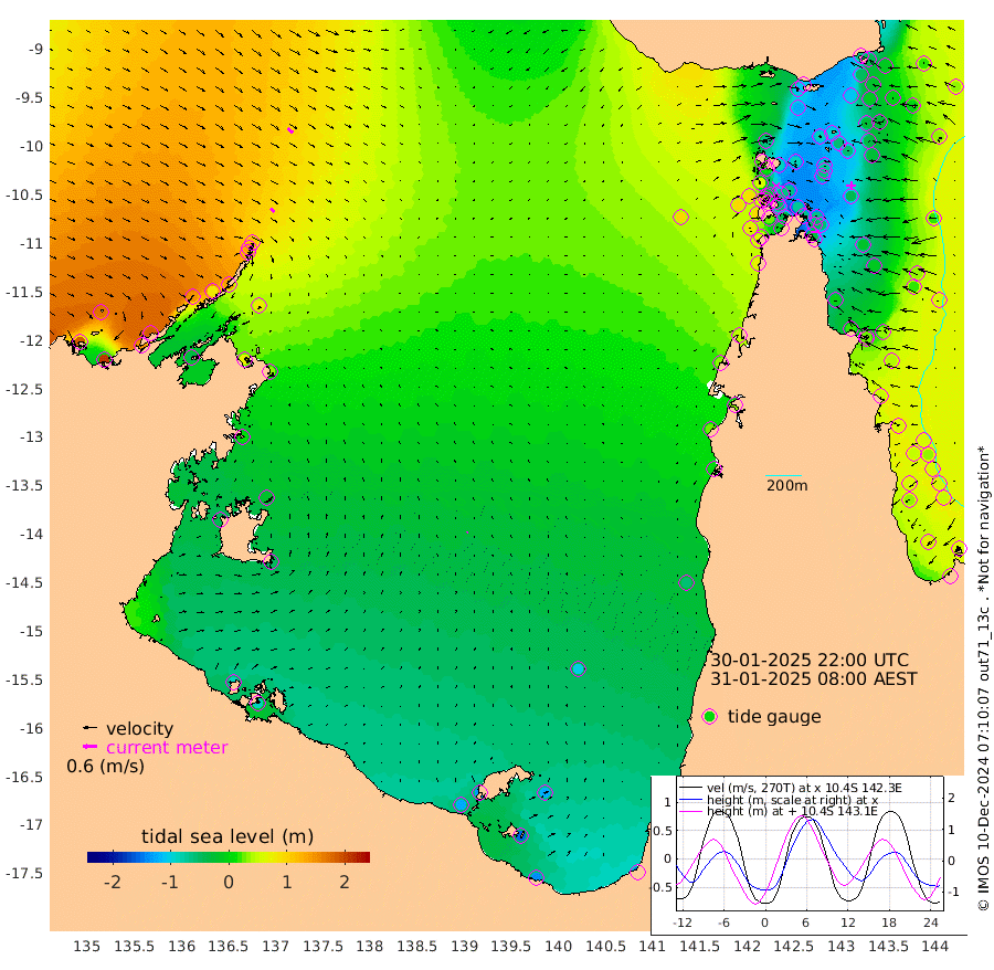 25cm/s 133T +3cm/s rms + 7cm/s -42T. ARA-GOC87 57m 5cm/s 43T +3cm/s rms + 2cm/s -2T. ARA-GOC87 60m 29cm/s 130T +2cm/s rms + 3cm/s 61T. ARA-GOC87 47m -60cm Daru -41cm Bobo Island 37cm Meer Island Barge 18cm Bramble Cay -18cm Unnamed Cay -14cm Pearce Cay -3cm Stephens Island -13cm Merrie England Shoals -52cm Mutacomal Reef 0cm Darnley Island Barge 37cm East Cay -28cm Yorke Island Barge -29cm Rennel Island -36cm Aureed Island -54cm Dungeness Reef -97cm Zagai Island -89cm Yam Island -110cm Dauan Island -108cm Saibai Island -121cm Phipi Reef -112cm Warrior Reef - West -62cm Mabuiag Island Barge -25cm Half Way Island -57cm Coconut Island -39cm Dugong Islet -70cm Poll Island -66cm Kirkcaldie Reef -89cm Suarji Island -76cm Sue Islet 58cm Hawkesbury Island -66cm Alert Patches -67cm Twin Island 24cm Badu Island -84cm St Pauls (Moa Island) 15cm Kubin (Moa Island) -46cm Ince Point -24cm Thursday Island -32cm Nardana Patches 4cm Turtle Head 21cm Round Island 65cm Goods Island 93cm Booby Island 89cm White Rocks Area 90cm Carpentaria -56cm Papou Point 92cm Bampfield Head 67cm Crab Island 78cm Red Wallis Island 29cm Packe Island -50cm Harrington Reef 49cm Herald Camp -46cm Sharp Point 6cm Red Island Point -33cm Possession Island -69cm Alpha Rock -64cm Frederick Point -53cm Wyborn Reef Light -61cm Tetley Island 17cm Triangle Reef -26cm Turtle Head Island 34cm Maclennan Cay 53cm Raine Island -17cm Mcsweeny Reef -10cm Collette Reef 22cm Shadwell Reef -4cm Hannibal Island 19cm Round Point 70cm Vrilya Point 23cm Cape Grenville 29cm Hicks Island 36cm Sir Charles Hardy Island 6cm Harvey Island 43cm Kay Reef 47cm Rocky Island 54cm Chapman Island 54cm Ham Reef 50cm Jubilee Reef 37cm Night Island 53cm Unnamed Reef No. 3 53cm Morris Island 58cm 1st 3 Mile Opening 52cm Creech Reef 37cm Fife Island 75cm Eden Reef 55cm Stanley Island 63cm Normanby River 186cm Yabooma Island 205cm Hutchison River 181cm Elcho Island 170cm North West Crocodile Island 114cm Cape Wessel 144cm Stevens Island 80cm Guluwuru Island 136cm Hopeful Bay 127cm Auster Point 131cm Two Island Bay 149cm Cadell Strait -34cm Mallison Island 68cm Melville Bay (Gove Harbour) 77cm Truant Island 34cm Cape Arnhem 9cm Cape Grey -18cm Hawk Island -39cm Milner Bay (Groote Eylandt) -48cm Cape Beatrice -87cm West Island -88cm Centre Island -129cm Mornington Island -121cm West Wellesley Islands -127cm Bountiful Island -142cm Albert River Mouth -157cm Sweers Island -154cm Karumba -98cm Nassau River Offshore -60cm Christmas Creek 5cm Archer River 25cm Boyd Point 35cm Weipa (Humbug Point) 32cm Pennefather River 52cm Cullen Point
