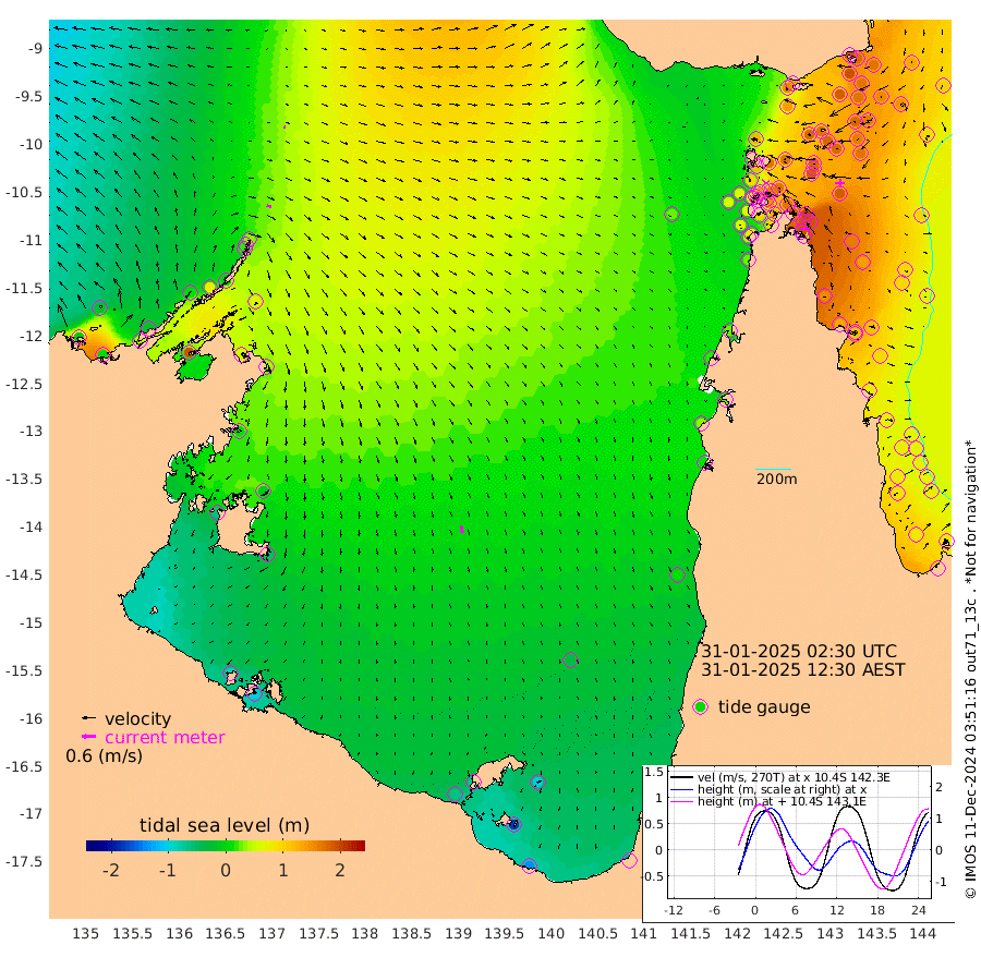 19cm/s 112T +3cm/s rms + 7cm/s -42T. ARA-GOC87 57m 35cm/s 166T +3cm/s rms + 2cm/s -2T. ARA-GOC87 60m 7cm/s 110T +2cm/s rms + 3cm/s 61T. ARA-GOC87 47m 189cm Daru 177cm Bobo Island 94cm Meer Island Barge 131cm Bramble Cay 170cm Unnamed Cay 169cm Pearce Cay 156cm Stephens Island 166cm Merrie England Shoals 191cm Mutacomal Reef 143cm Darnley Island Barge 102cm East Cay 163cm Yorke Island Barge 175cm Rennel Island 165cm Aureed Island 177cm Dungeness Reef 171cm Zagai Island 176cm Yam Island 154cm Dauan Island 141cm Saibai Island 142cm Phipi Reef 183cm Warrior Reef - West 122cm Mabuiag Island Barge 171cm Half Way Island 180cm Coconut Island 185cm Dugong Islet 179cm Poll Island 181cm Kirkcaldie Reef 166cm Suarji Island 173cm Sue Islet 96cm Hawkesbury Island 164cm Alert Patches 170cm Twin Island 98cm Badu Island 172cm St Pauls (Moa Island) 117cm Kubin (Moa Island) 144cm Ince Point 129cm Thursday Island 133cm Nardana Patches 115cm Turtle Head 91cm Round Island 82cm Goods Island 53cm Booby Island 64cm White Rocks Area 29cm Carpentaria 148cm Papou Point 63cm Bampfield Head 39cm Crab Island 64cm Red Wallis Island 104cm Packe Island 194cm Harrington Reef 78cm Herald Camp 46cm Sharp Point 91cm Red Island Point 121cm Possession Island 166cm Alpha Rock 182cm Frederick Point 194cm Wyborn Reef Light 196cm Tetley Island 100cm Triangle Reef 195cm Turtle Head Island 97cm Maclennan Cay 64cm Raine Island 159cm Mcsweeny Reef 142cm Collette Reef 97cm Shadwell Reef 151cm Hannibal Island 134cm Round Point 27cm Vrilya Point 116cm Cape Grenville 108cm Hicks Island 115cm Sir Charles Hardy Island 36cm Harvey Island 96cm Kay Reef 77cm Rocky Island 68cm Chapman Island 66cm Ham Reef 77cm Jubilee Reef 74cm Night Island 69cm Unnamed Reef No. 3 80cm Morris Island 72cm 1st 3 Mile Opening 76cm Creech Reef 87cm Fife Island 77cm Eden Reef 80cm Stanley Island 88cm Normanby River -9cm Yabooma Island 5cm Hutchison River -20cm Elcho Island -23cm North West Crocodile Island 33cm Cape Wessel 13cm Stevens Island 77cm Guluwuru Island -8cm Hopeful Bay 16cm Auster Point 20cm Two Island Bay 46cm Cadell Strait 189cm Mallison Island 53cm Melville Bay (Gove Harbour) 63cm Truant Island 41cm Cape Arnhem 6cm Cape Grey -12cm Hawk Island -60cm Milner Bay (Groote Eylandt) -55cm Cape Beatrice -87cm West Island -99cm Centre Island -74cm Mornington Island -67cm West Wellesley Islands -99cm Bountiful Island -140cm Albert River Mouth -173cm Sweers Island -136cm Karumba -31cm Nassau River Offshore 10cm Christmas Creek 14cm Archer River 33cm Boyd Point 24cm Weipa (Humbug Point) 19cm Pennefather River 26cm Cullen Point