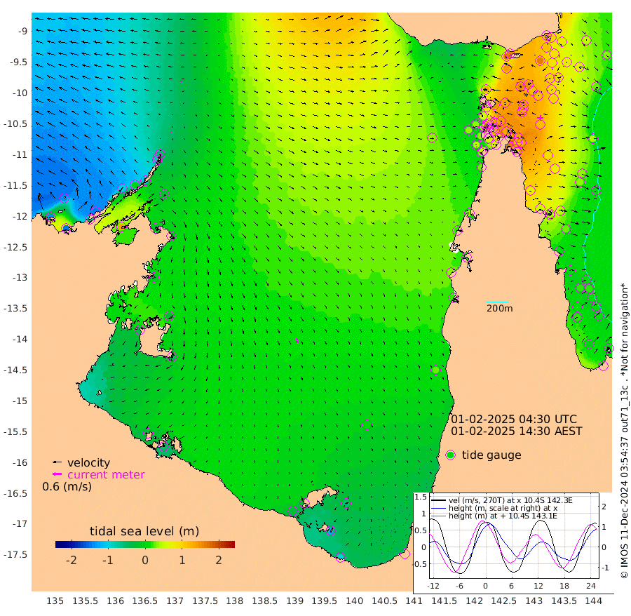 3cm/s -55T +3cm/s rms + 7cm/s -42T. ARA-GOC87 57m 32cm/s 164T +3cm/s rms + 2cm/s -2T. ARA-GOC87 60m 15cm/s -80T +2cm/s rms + 3cm/s 61T. ARA-GOC87 47m 124cm Daru 105cm Bobo Island 28cm Meer Island Barge 50cm Bramble Cay 88cm Unnamed Cay 83cm Pearce Cay 75cm Stephens Island 81cm Merrie England Shoals 118cm Mutacomal Reef 70cm Darnley Island Barge 30cm East Cay 95cm Yorke Island Barge 100cm Rennel Island 97cm Aureed Island 115cm Dungeness Reef 147cm Zagai Island 151cm Yam Island 160cm Dauan Island 157cm Saibai Island 139cm Phipi Reef 163cm Warrior Reef - West 121cm Mabuiag Island Barge 98cm Half Way Island 119cm Coconut Island 115cm Dugong Islet 132cm Poll Island 134cm Kirkcaldie Reef 134cm Suarji Island 137cm Sue Islet 67cm Hawkesbury Island 130cm Alert Patches 135cm Twin Island 77cm Badu Island 148cm St Pauls (Moa Island) 90cm Kubin (Moa Island) 121cm Ince Point 107cm Thursday Island 111cm Nardana Patches 88cm Turtle Head 67cm Round Island 51cm Goods Island 32cm Booby Island 31cm White Rocks Area 35cm Carpentaria 124cm Papou Point 32cm Bampfield Head 32cm Crab Island 46cm Red Wallis Island 78cm Packe Island 122cm Harrington Reef 63cm Herald Camp 52cm Sharp Point 74cm Red Island Point 93cm Possession Island 134cm Alpha Rock 133cm Frederick Point 122cm Wyborn Reef Light 131cm Tetley Island 43cm Triangle Reef 109cm Turtle Head Island 34cm Maclennan Cay 6cm Raine Island 84cm Mcsweeny Reef 71cm Collette Reef 36cm Shadwell Reef 69cm Hannibal Island 48cm Round Point 28cm Vrilya Point 42cm Cape Grenville 36cm Hicks Island 46cm Sir Charles Hardy Island 14cm Harvey Island 23cm Kay Reef 13cm Rocky Island 5cm Chapman Island 10cm Ham Reef 16cm Jubilee Reef 17cm Night Island 10cm Unnamed Reef No. 3 12cm Morris Island 7cm 1st 3 Mile Opening 13cm Creech Reef 22cm Fife Island -2cm Eden Reef 11cm Stanley Island 8cm Normanby River -140cm Yabooma Island -147cm Hutchison River -143cm Elcho Island -137cm North West Crocodile Island -55cm Cape Wessel -105cm Stevens Island -7cm Guluwuru Island -113cm Hopeful Bay -84cm Auster Point -75cm Two Island Bay -82cm Cadell Strait 131cm Mallison Island -25cm Melville Bay (Gove Harbour) -21cm Truant Island -8cm Cape Arnhem -22cm Cape Grey -27cm Hawk Island -49cm Milner Bay (Groote Eylandt) -38cm Cape Beatrice -37cm West Island -46cm Centre Island -27cm Mornington Island -26cm West Wellesley Islands -60cm Bountiful Island -92cm Albert River Mouth -125cm Sweers Island -83cm Karumba 0cm Nassau River Offshore 30cm Christmas Creek 18cm Archer River 35cm Boyd Point 20cm Weipa (Humbug Point) 20cm Pennefather River 32cm Cullen Point