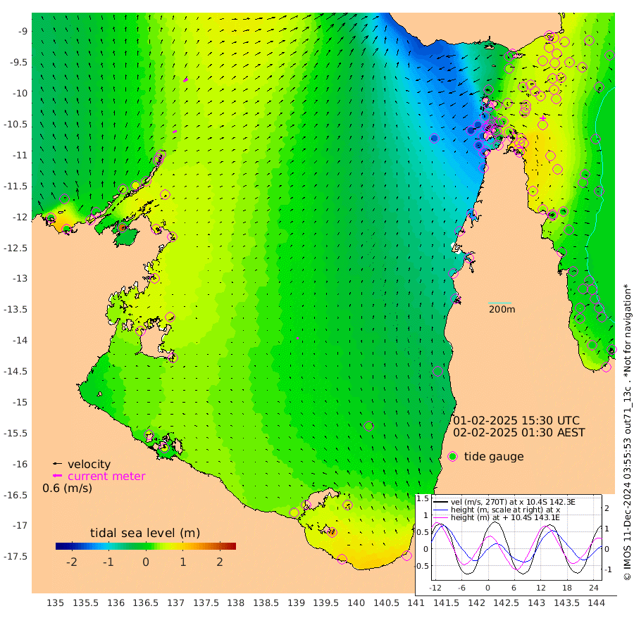 29cm/s 68T +3cm/s rms + 7cm/s -42T. ARA-GOC87 57m 15cm/s -2T +3cm/s rms + 2cm/s -2T. ARA-GOC87 60m 33cm/s 56T +2cm/s rms + 3cm/s 61T. ARA-GOC87 47m 72cm Daru 72cm Bobo Island 18cm Meer Island Barge 35cm Bramble Cay 56cm Unnamed Cay 58cm Pearce Cay 50cm Stephens Island 54cm Merrie England Shoals 62cm Mutacomal Reef 49cm Darnley Island Barge 15cm East Cay 60cm Yorke Island Barge 52cm Rennel Island 62cm Aureed Island 55cm Dungeness Reef 58cm Zagai Island 36cm Yam Island 12cm Dauan Island 13cm Saibai Island 32cm Phipi Reef 52cm Warrior Reef - West -22cm Mabuiag Island Barge 51cm Half Way Island 60cm Coconut Island 51cm Dugong Islet 48cm Poll Island 42cm Kirkcaldie Reef 38cm Suarji Island 50cm Sue Islet -147cm Hawkesbury Island 11cm Alert Patches 16cm Twin Island -109cm Badu Island 21cm St Pauls (Moa Island) -91cm Kubin (Moa Island) -23cm Ince Point -50cm Thursday Island -42cm Nardana Patches -83cm Turtle Head -99cm Round Island -143cm Goods Island -178cm Booby Island -166cm White Rocks Area -163cm Carpentaria 7cm Papou Point -163cm Bampfield Head -149cm Crab Island -172cm Red Wallis Island -120cm Packe Island 62cm Harrington Reef -153cm Herald Camp 15cm Sharp Point -82cm Red Island Point -21cm Possession Island 25cm Alpha Rock 38cm Frederick Point 67cm Wyborn Reef Light 63cm Tetley Island 13cm Triangle Reef 64cm Turtle Head Island 6cm Maclennan Cay -8cm Raine Island 53cm Mcsweeny Reef 46cm Collette Reef 18cm Shadwell Reef 52cm Hannibal Island 33cm Round Point -146cm Vrilya Point 22cm Cape Grenville 19cm Hicks Island 3cm Sir Charles Hardy Island 8cm Harvey Island 7cm Kay Reef 1cm Rocky Island -10cm Chapman Island -12cm Ham Reef -2cm Jubilee Reef 4cm Night Island -12cm Unnamed Reef No. 3 1cm Morris Island -5cm 1st 3 Mile Opening -4cm Creech Reef 12cm Fife Island -5cm Eden Reef -2cm Stanley Island 2cm Normanby River -8cm Yabooma Island 11cm Hutchison River 3cm Elcho Island -4cm North West Crocodile Island 35cm Cape Wessel 36cm Stevens Island 78cm Guluwuru Island 24cm Hopeful Bay 35cm Auster Point 31cm Two Island Bay 56cm Cadell Strait 177cm Mallison Island 73cm Melville Bay (Gove Harbour) 74cm Truant Island 64cm Cape Arnhem 66cm Cape Grey 66cm Hawk Island 67cm Milner Bay (Groote Eylandt) 55cm Cape Beatrice 55cm West Island 53cm Centre Island 71cm Mornington Island 66cm West Wellesley Islands 78cm Bountiful Island 98cm Albert River Mouth 141cm Sweers Island 91cm Karumba 19cm Nassau River Offshore -27cm Christmas Creek -74cm Archer River -90cm Boyd Point -105cm Weipa (Humbug Point) -87cm Pennefather River -136cm Cullen Point
