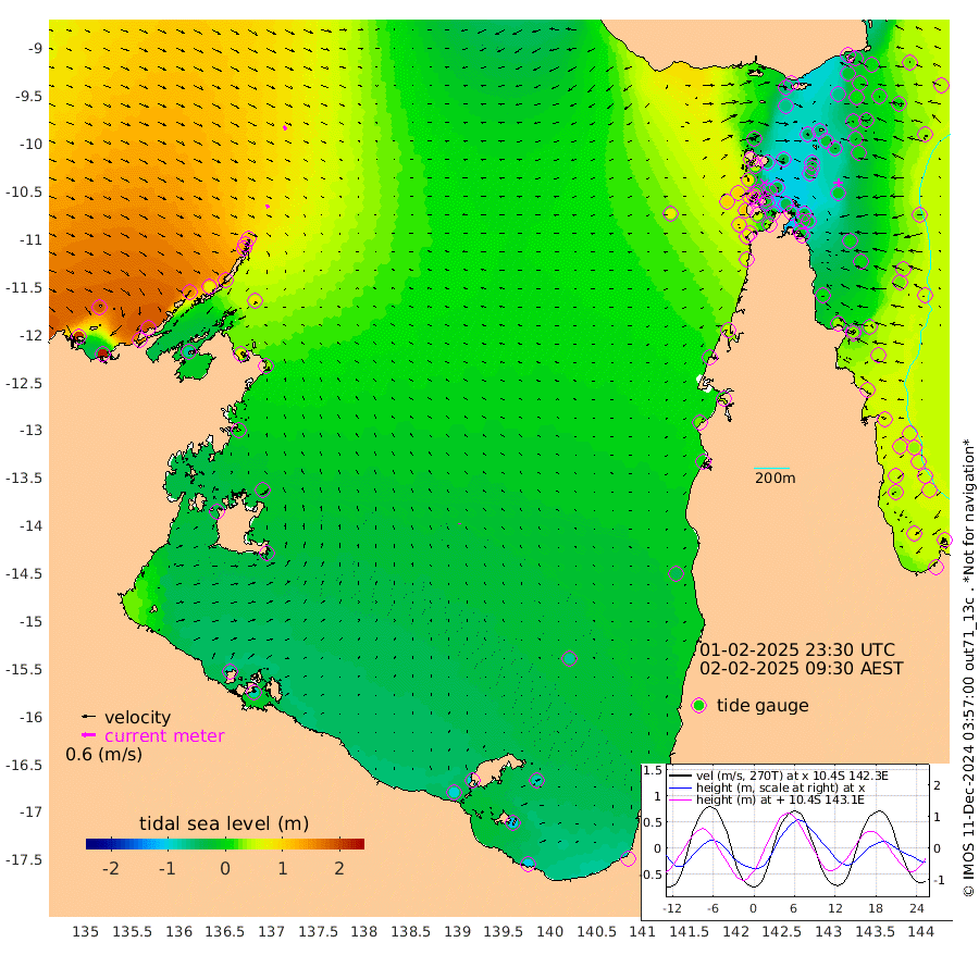15cm/s 146T +3cm/s rms + 7cm/s -42T. ARA-GOC87 57m 4cm/s -17T +3cm/s rms + 2cm/s -2T. ARA-GOC87 60m 19cm/s 134T +2cm/s rms + 3cm/s 61T. ARA-GOC87 47m -31cm Daru -15cm Bobo Island 34cm Meer Island Barge 26cm Bramble Cay 1cm Unnamed Cay 9cm Pearce Cay 11cm Stephens Island 3cm Merrie England Shoals -21cm Mutacomal Reef 8cm Darnley Island Barge 39cm East Cay -10cm Yorke Island Barge -4cm Rennel Island -11cm Aureed Island -22cm Dungeness Reef -57cm Zagai Island -47cm Yam Island -59cm Dauan Island -62cm Saibai Island -66cm Phipi Reef -64cm Warrior Reef - West -22cm Mabuiag Island Barge -6cm Half Way Island -26cm Coconut Island -13cm Dugong Islet -33cm Poll Island -34cm Kirkcaldie Reef -37cm Suarji Island -42cm Sue Islet 83cm Hawkesbury Island -24cm Alert Patches -27cm Twin Island 52cm Badu Island -40cm St Pauls (Moa Island) 42cm Kubin (Moa Island) -9cm Ince Point 7cm Thursday Island 2cm Nardana Patches 34cm Turtle Head 50cm Round Island 83cm Goods Island 99cm Booby Island 104cm White Rocks Area 72cm Carpentaria -21cm Papou Point 107cm Bampfield Head 66cm Crab Island 86cm Red Wallis Island 52cm Packe Island -19cm Harrington Reef 72cm Herald Camp -32cm Sharp Point 32cm Red Island Point 3cm Possession Island -32cm Alpha Rock -27cm Frederick Point -20cm Wyborn Reef Light -26cm Tetley Island 24cm Triangle Reef -2cm Turtle Head Island 36cm Maclennan Cay 47cm Raine Island 1cm Mcsweeny Reef 5cm Collette Reef 24cm Shadwell Reef 8cm Hannibal Island 30cm Round Point 55cm Vrilya Point 28cm Cape Grenville 34cm Hicks Island 41cm Sir Charles Hardy Island 7cm Harvey Island 42cm Kay Reef 46cm Rocky Island 53cm Chapman Island 49cm Ham Reef 45cm Jubilee Reef 33cm Night Island 49cm Unnamed Reef No. 3 49cm Morris Island 51cm 1st 3 Mile Opening 46cm Creech Reef 37cm Fife Island 65cm Eden Reef 49cm Stanley Island 59cm Normanby River 205cm Yabooma Island 223cm Hutchison River 193cm Elcho Island 185cm North West Crocodile Island 116cm Cape Wessel 155cm Stevens Island 71cm Guluwuru Island 148cm Hopeful Bay 133cm Auster Point 131cm Two Island Bay 151cm Cadell Strait -73cm Mallison Island 69cm Melville Bay (Gove Harbour) 76cm Truant Island 33cm Cape Arnhem 13cm Cape Grey -7cm Hawk Island -31cm Milner Bay (Groote Eylandt) -37cm Cape Beatrice -75cm West Island -78cm Centre Island -101cm Mornington Island -91cm West Wellesley Islands -80cm Bountiful Island -98cm Albert River Mouth -108cm Sweers Island -106cm Karumba -74cm Nassau River Offshore -44cm Christmas Creek 9cm Archer River 25cm Boyd Point 39cm Weipa (Humbug Point) 19cm Pennefather River 47cm Cullen Point