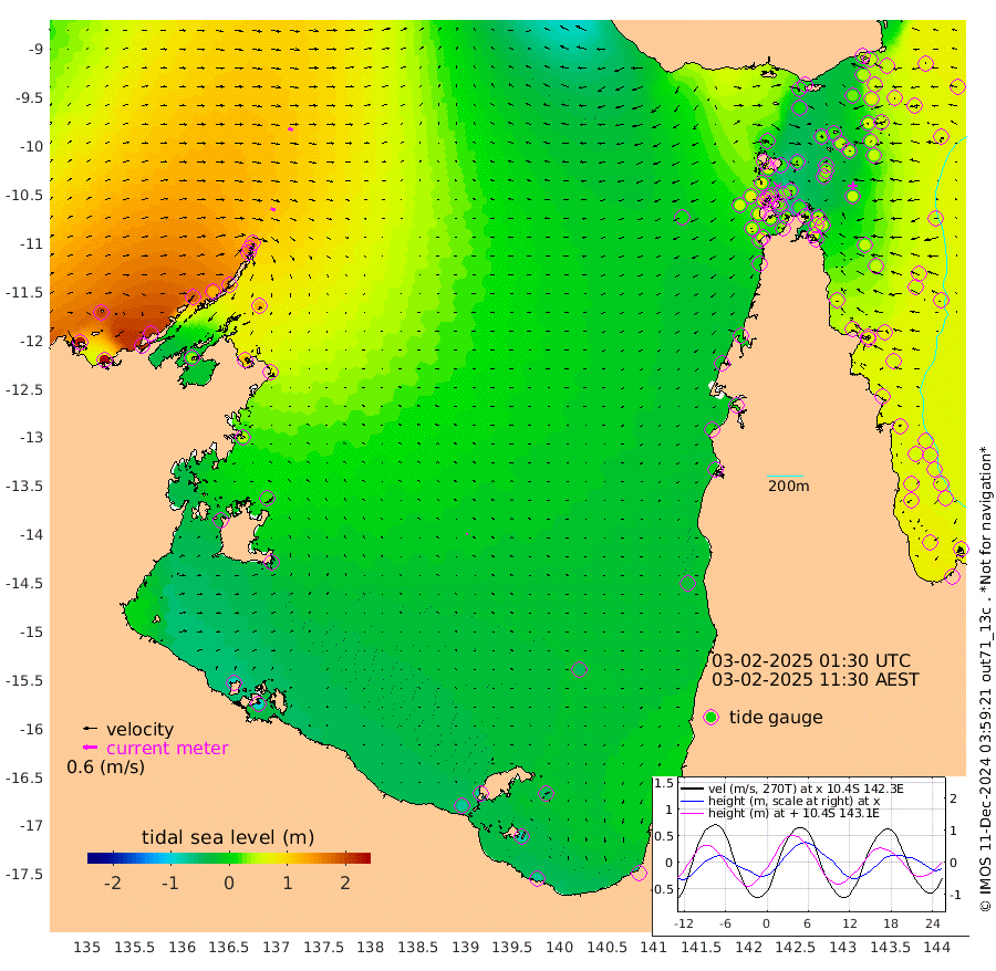 20cm/s 117T +3cm/s rms + 7cm/s -42T. ARA-GOC87 57m 7cm/s -145T +3cm/s rms + 2cm/s -2T. ARA-GOC87 60m 21cm/s 103T +2cm/s rms + 3cm/s 61T. ARA-GOC87 47m 42cm Daru 52cm Bobo Island 58cm Meer Island Barge 63cm Bramble Cay 54cm Unnamed Cay 68cm Pearce Cay 61cm Stephens Island 49cm Merrie England Shoals 42cm Mutacomal Reef 54cm Darnley Island Barge 66cm East Cay 48cm Yorke Island Barge 55cm Rennel Island 50cm Aureed Island 44cm Dungeness Reef 20cm Zagai Island 25cm Yam Island 21cm Dauan Island 9cm Saibai Island 13cm Phipi Reef 24cm Warrior Reef - West 18cm Mabuiag Island Barge 48cm Half Way Island 38cm Coconut Island 48cm Dugong Islet 33cm Poll Island 28cm Kirkcaldie Reef 27cm Suarji Island 22cm Sue Islet 69cm Hawkesbury Island 23cm Alert Patches 26cm Twin Island 53cm Badu Island 20cm St Pauls (Moa Island) 54cm Kubin (Moa Island) 26cm Ince Point 28cm Thursday Island 28cm Nardana Patches 44cm Turtle Head 49cm Round Island 62cm Goods Island 52cm Booby Island 63cm White Rocks Area 8cm Carpentaria 26cm Papou Point 65cm Bampfield Head 27cm Crab Island 47cm Red Wallis Island 47cm Packe Island 44cm Harrington Reef 55cm Herald Camp -12cm Sharp Point 37cm Red Island Point 31cm Possession Island 19cm Alpha Rock 34cm Frederick Point 46cm Wyborn Reef Light 41cm Tetley Island 51cm Triangle Reef 59cm Turtle Head Island 59cm Maclennan Cay 57cm Raine Island 52cm Mcsweeny Reef 48cm Collette Reef 48cm Shadwell Reef 53cm Hannibal Island 67cm Round Point 3cm Vrilya Point 54cm Cape Grenville 63cm Hicks Island 69cm Sir Charles Hardy Island 17cm Harvey Island 58cm Kay Reef 61cm Rocky Island 63cm Chapman Island 58cm Ham Reef 58cm Jubilee Reef 48cm Night Island 57cm Unnamed Reef No. 3 63cm Morris Island 60cm 1st 3 Mile Opening 58cm Creech Reef 61cm Fife Island 75cm Eden Reef 59cm Stanley Island 73cm Normanby River 222cm Yabooma Island 253cm Hutchison River 208cm Elcho Island 200cm North West Crocodile Island 144cm Cape Wessel 182cm Stevens Island 126cm Guluwuru Island 166cm Hopeful Bay 157cm Auster Point 159cm Two Island Bay 208cm Cadell Strait 33cm Mallison Island 117cm Melville Bay (Gove Harbour) 125cm Truant Island 71cm Cape Arnhem 39cm Cape Grey 15cm Hawk Island -29cm Milner Bay (Groote Eylandt) -34cm Cape Beatrice -87cm West Island -96cm Centre Island -79cm Mornington Island -72cm West Wellesley Islands -51cm Bountiful Island -68cm Albert River Mouth -82cm Sweers Island -73cm Karumba -52cm Nassau River Offshore -29cm Christmas Creek -3cm Archer River 9cm Boyd Point 20cm Weipa (Humbug Point) -15cm Pennefather River 9cm Cullen Point