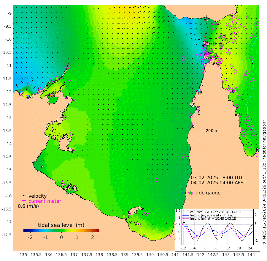16cm/s 63T +3cm/s rms + 7cm/s -42T. ARA-GOC87 57m 7cm/s 70T +3cm/s rms + 2cm/s -2T. ARA-GOC87 60m 15cm/s 46T +2cm/s rms + 3cm/s 61T. ARA-GOC87 47m 41cm Daru 41cm Bobo Island 18cm Meer Island Barge 20cm Bramble Cay 33cm Unnamed Cay 26cm Pearce Cay 31cm Stephens Island 32cm Merrie England Shoals 32cm Mutacomal Reef 38cm Darnley Island Barge 10cm East Cay 42cm Yorke Island Barge 26cm Rennel Island 38cm Aureed Island 28cm Dungeness Reef 34cm Zagai Island 14cm Yam Island -4cm Dauan Island 6cm Saibai Island 5cm Phipi Reef 25cm Warrior Reef - West -23cm Mabuiag Island Barge 29cm Half Way Island 34cm Coconut Island 28cm Dugong Islet 22cm Poll Island 21cm Kirkcaldie Reef 16cm Suarji Island 33cm Sue Islet -116cm Hawkesbury Island 2cm Alert Patches 2cm Twin Island -88cm Badu Island 6cm St Pauls (Moa Island) -74cm Kubin (Moa Island) -23cm Ince Point -39cm Thursday Island -35cm Nardana Patches -65cm Turtle Head -76cm Round Island -104cm Goods Island -117cm Booby Island -122cm White Rocks Area -70cm Carpentaria -5cm Papou Point -100cm Bampfield Head -97cm Crab Island -117cm Red Wallis Island -90cm Packe Island 35cm Harrington Reef -107cm Herald Camp 11cm Sharp Point -69cm Red Island Point -21cm Possession Island 12cm Alpha Rock 17cm Frederick Point 36cm Wyborn Reef Light 33cm Tetley Island 11cm Triangle Reef 35cm Turtle Head Island 8cm Maclennan Cay 0cm Raine Island 34cm Mcsweeny Reef 32cm Collette Reef 18cm Shadwell Reef 36cm Hannibal Island 16cm Round Point -81cm Vrilya Point 17cm Cape Grenville 13cm Hicks Island 8cm Sir Charles Hardy Island 6cm Harvey Island 10cm Kay Reef 5cm Rocky Island -5cm Chapman Island 0cm Ham Reef 6cm Jubilee Reef 8cm Night Island -2cm Unnamed Reef No. 3 5cm Morris Island 6cm 1st 3 Mile Opening 6cm Creech Reef 9cm Fife Island 3cm Eden Reef 6cm Stanley Island 1cm Normanby River -123cm Yabooma Island -117cm Hutchison River -105cm Elcho Island -114cm North West Crocodile Island -31cm Cape Wessel -72cm Stevens Island 24cm Guluwuru Island -70cm Hopeful Bay -46cm Auster Point -49cm Two Island Bay -59cm Cadell Strait 155cm Mallison Island 12cm Melville Bay (Gove Harbour) 14cm Truant Island 26cm Cape Arnhem 30cm Cape Grey 29cm Hawk Island 36cm Milner Bay (Groote Eylandt) 28cm Cape Beatrice 42cm West Island 44cm Centre Island 36cm Mornington Island 32cm West Wellesley Islands 18cm Bountiful Island 14cm Albert River Mouth 44cm Sweers Island 9cm Karumba -2cm Nassau River Offshore -20cm Christmas Creek -44cm Archer River -45cm Boyd Point -64cm Weipa (Humbug Point) -41cm Pennefather River -77cm Cullen Point