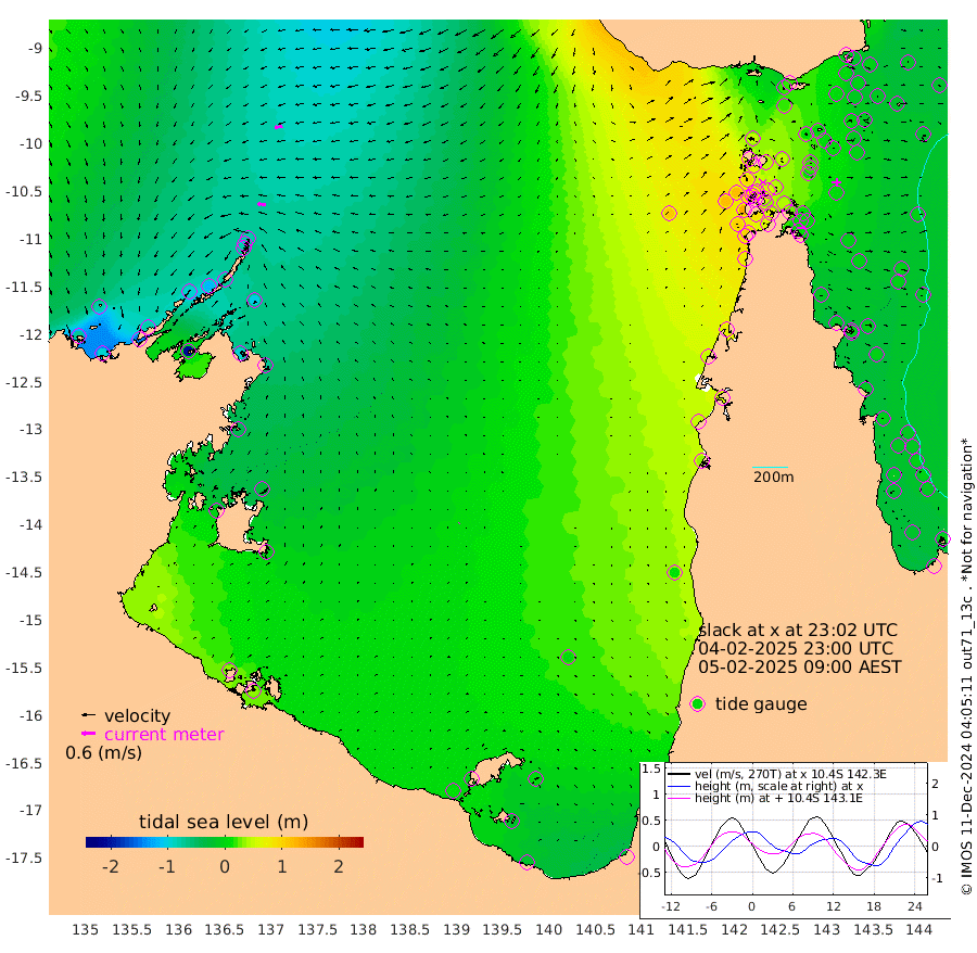 35cm/s -88T +3cm/s rms + 7cm/s -42T. ARA-GOC87 57m 2cm/s 35T +3cm/s rms + 2cm/s -2T. ARA-GOC87 60m 35cm/s -101T +2cm/s rms + 3cm/s 61T. ARA-GOC87 47m -9cm Daru -18cm Bobo Island -17cm Meer Island Barge -14cm Bramble Cay -2cm Unnamed Cay -15cm Pearce Cay -14cm Stephens Island -1cm Merrie England Shoals 7cm Mutacomal Reef -17cm Darnley Island Barge -16cm East Cay -12cm Yorke Island Barge 0cm Rennel Island -9cm Aureed Island 6cm Dungeness Reef 5cm Zagai Island 15cm Yam Island 15cm Dauan Island 17cm Saibai Island 20cm Phipi Reef 2cm Warrior Reef - West 51cm Mabuiag Island Barge -4cm Half Way Island 7cm Coconut Island 6cm Dugong Islet 16cm Poll Island 14cm Kirkcaldie Reef 48cm Suarji Island 15cm Sue Islet 93cm Hawkesbury Island 57cm Alert Patches 43cm Twin Island 79cm Badu Island 42cm St Pauls (Moa Island) 70cm Kubin (Moa Island) 58cm Ince Point 69cm Thursday Island 67cm Nardana Patches 78cm Turtle Head 89cm Round Island 96cm Goods Island 113cm Booby Island 115cm White Rocks Area 110cm Carpentaria 34cm Papou Point 132cm Bampfield Head 83cm Crab Island 105cm Red Wallis Island 83cm Packe Island 10cm Harrington Reef 102cm Herald Camp 10cm Sharp Point 62cm Red Island Point 64cm Possession Island 39cm Alpha Rock 26cm Frederick Point 7cm Wyborn Reef Light 11cm Tetley Island -6cm Triangle Reef 4cm Turtle Head Island -7cm Maclennan Cay -10cm Raine Island -5cm Mcsweeny Reef -5cm Collette Reef -7cm Shadwell Reef -8cm Hannibal Island -10cm Round Point 81cm Vrilya Point -2cm Cape Grenville -13cm Hicks Island -7cm Sir Charles Hardy Island -4cm Harvey Island -3cm Kay Reef -9cm Rocky Island -6cm Chapman Island -8cm Ham Reef -11cm Jubilee Reef -10cm Night Island -7cm Unnamed Reef No. 3 -10cm Morris Island -3cm 1st 3 Mile Opening -9cm Creech Reef -22cm Fife Island -17cm Eden Reef -7cm Stanley Island -15cm Normanby River -74cm Yabooma Island -97cm Hutchison River -79cm Elcho Island -76cm North West Crocodile Island -82cm Cape Wessel -91cm Stevens Island -113cm Guluwuru Island -75cm Hopeful Bay -75cm Auster Point -93cm Two Island Bay -148cm Cadell Strait -204cm Mallison Island -93cm Melville Bay (Gove Harbour) -98cm Truant Island -69cm Cape Arnhem -41cm Cape Grey -28cm Hawk Island -5cm Milner Bay (Groote Eylandt) 0cm Cape Beatrice 30cm West Island 35cm Centre Island -1cm Mornington Island 9cm West Wellesley Islands 6cm Bountiful Island -20cm Albert River Mouth -15cm Sweers Island -17cm Karumba 0cm Nassau River Offshore 13cm Christmas Creek 37cm Archer River 48cm Boyd Point 53cm Weipa (Humbug Point) 49cm Pennefather River 75cm Cullen Point