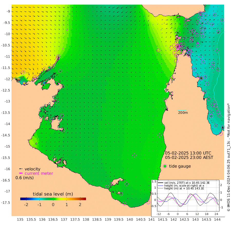 12cm/s 158T +3cm/s rms + 7cm/s -42T. ARA-GOC87 57m 14cm/s -9T +3cm/s rms + 2cm/s -2T. ARA-GOC87 60m 15cm/s 147T +2cm/s rms + 3cm/s 61T. ARA-GOC87 47m -71cm Daru -72cm Bobo Island -66cm Meer Island Barge -68cm Bramble Cay -76cm Unnamed Cay -64cm Pearce Cay -76cm Stephens Island -72cm Merrie England Shoals -67cm Mutacomal Reef -82cm Darnley Island Barge -66cm East Cay -79cm Yorke Island Barge -68cm Rennel Island -73cm Aureed Island -59cm Dungeness Reef -48cm Zagai Island -40cm Yam Island -16cm Dauan Island -26cm Saibai Island -19cm Phipi Reef -47cm Warrior Reef - West 8cm Mabuiag Island Barge -65cm Half Way Island -58cm Coconut Island -67cm Dugong Islet -44cm Poll Island -49cm Kirkcaldie Reef -35cm Suarji Island -55cm Sue Islet 60cm Hawkesbury Island -19cm Alert Patches -21cm Twin Island 57cm Badu Island -19cm St Pauls (Moa Island) 32cm Kubin (Moa Island) 1cm Ince Point 16cm Thursday Island 11cm Nardana Patches 28cm Turtle Head 32cm Round Island 54cm Goods Island 69cm Booby Island 71cm White Rocks Area 37cm Carpentaria -13cm Papou Point 40cm Bampfield Head 67cm Crab Island 69cm Red Wallis Island 45cm Packe Island -66cm Harrington Reef 36cm Herald Camp -8cm Sharp Point 35cm Red Island Point -4cm Possession Island -32cm Alpha Rock -40cm Frederick Point -63cm Wyborn Reef Light -58cm Tetley Island -53cm Triangle Reef -61cm Turtle Head Island -61cm Maclennan Cay -47cm Raine Island -71cm Mcsweeny Reef -71cm Collette Reef -61cm Shadwell Reef -78cm Hannibal Island -64cm Round Point 64cm Vrilya Point -68cm Cape Grenville -66cm Hicks Island -77cm Sir Charles Hardy Island -22cm Harvey Island -66cm Kay Reef -59cm Rocky Island -50cm Chapman Island -55cm Ham Reef -58cm Jubilee Reef -52cm Night Island -52cm Unnamed Reef No. 3 -60cm Morris Island -57cm 1st 3 Mile Opening -59cm Creech Reef -57cm Fife Island -67cm Eden Reef -63cm Stanley Island -65cm Normanby River 100cm Yabooma Island 92cm Hutchison River 91cm Elcho Island 97cm North West Crocodile Island 23cm Cape Wessel 74cm Stevens Island -31cm Guluwuru Island 64cm Hopeful Bay 43cm Auster Point 41cm Two Island Bay 55cm Cadell Strait -130cm Mallison Island -11cm Melville Bay (Gove Harbour) -12cm Truant Island -19cm Cape Arnhem -19cm Cape Grey -14cm Hawk Island -3cm Milner Bay (Groote Eylandt) -5cm Cape Beatrice -10cm West Island -8cm Centre Island -23cm Mornington Island -25cm West Wellesley Islands -24cm Bountiful Island 6cm Albert River Mouth 3cm Sweers Island 7cm Karumba -8cm Nassau River Offshore -10cm Christmas Creek 14cm Archer River 9cm Boyd Point 20cm Weipa (Humbug Point) 40cm Pennefather River 44cm Cullen Point