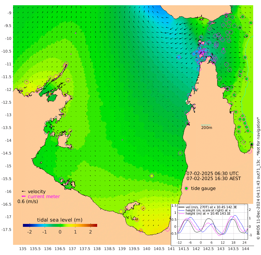 14cm/s -2T +3cm/s rms + 7cm/s -42T. ARA-GOC87 57m 11cm/s -77T +3cm/s rms + 2cm/s -2T. ARA-GOC87 60m 18cm/s 13T +2cm/s rms + 3cm/s 61T. ARA-GOC87 47m -36cm Daru -26cm Bobo Island 11cm Meer Island Barge -3cm Bramble Cay -26cm Unnamed Cay -29cm Pearce Cay -16cm Stephens Island -29cm Merrie England Shoals -45cm Mutacomal Reef -6cm Darnley Island Barge 11cm East Cay -21cm Yorke Island Barge -34cm Rennel Island -26cm Aureed Island -46cm Dungeness Reef -47cm Zagai Island -54cm Yam Island -44cm Dauan Island -38cm Saibai Island -44cm Phipi Reef -42cm Warrior Reef - West -79cm Mabuiag Island Barge -39cm Half Way Island -52cm Coconut Island -47cm Dugong Islet -62cm Poll Island -62cm Kirkcaldie Reef -77cm Suarji Island -56cm Sue Islet -114cm Hawkesbury Island -96cm Alert Patches -89cm Twin Island -110cm Badu Island -91cm St Pauls (Moa Island) -98cm Kubin (Moa Island) -96cm Ince Point -105cm Thursday Island -101cm Nardana Patches -102cm Turtle Head -94cm Round Island -110cm Goods Island -124cm Booby Island -125cm White Rocks Area -115cm Carpentaria -78cm Papou Point -116cm Bampfield Head -105cm Crab Island -121cm Red Wallis Island -106cm Packe Island -60cm Harrington Reef -90cm Herald Camp -24cm Sharp Point -90cm Red Island Point -87cm Possession Island -75cm Alpha Rock -74cm Frederick Point -52cm Wyborn Reef Light -58cm Tetley Island -3cm Triangle Reef -65cm Turtle Head Island 3cm Maclennan Cay 13cm Raine Island -25cm Mcsweeny Reef -16cm Collette Reef 3cm Shadwell Reef -14cm Hannibal Island -8cm Round Point -113cm Vrilya Point -5cm Cape Grenville 5cm Hicks Island 14cm Sir Charles Hardy Island 0cm Harvey Island 6cm Kay Reef 16cm Rocky Island 16cm Chapman Island 18cm Ham Reef 14cm Jubilee Reef 9cm Night Island 13cm Unnamed Reef No. 3 14cm Morris Island 9cm 1st 3 Mile Opening 12cm Creech Reef 17cm Fife Island 26cm Eden Reef 13cm Stanley Island 18cm Normanby River 46cm Yabooma Island 62cm Hutchison River 54cm Elcho Island 51cm North West Crocodile Island 44cm Cape Wessel 45cm Stevens Island 67cm Guluwuru Island 53cm Hopeful Bay 38cm Auster Point 49cm Two Island Bay 71cm Cadell Strait 115cm Mallison Island 55cm Melville Bay (Gove Harbour) 52cm Truant Island 41cm Cape Arnhem 35cm Cape Grey 38cm Hawk Island 29cm Milner Bay (Groote Eylandt) 30cm Cape Beatrice 19cm West Island 17cm Centre Island 67cm Mornington Island 60cm West Wellesley Islands 96cm Bountiful Island 121cm Albert River Mouth 119cm Sweers Island 114cm Karumba 44cm Nassau River Offshore 17cm Christmas Creek -25cm Archer River -42cm Boyd Point -37cm Weipa (Humbug Point) -78cm Pennefather River -80cm Cullen Point