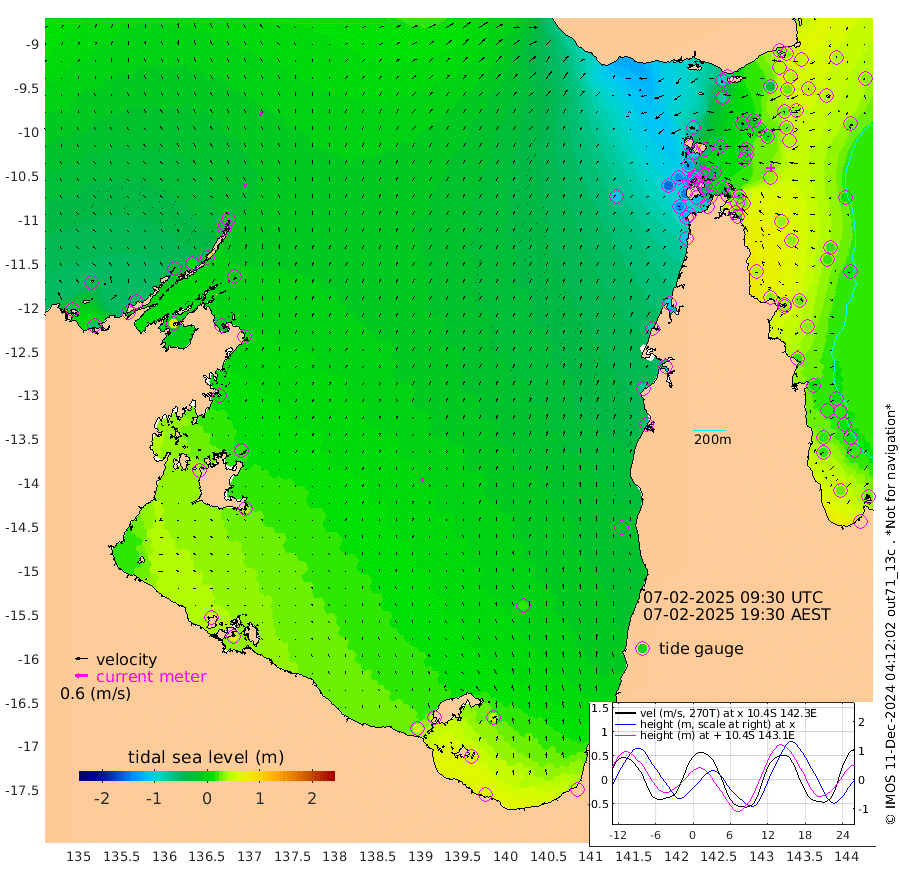 18cm/s 6T +3cm/s rms + 7cm/s -42T. ARA-GOC87 57m 16cm/s -1T +3cm/s rms + 2cm/s -2T. ARA-GOC87 60m 19cm/s 14T +2cm/s rms + 3cm/s 61T. ARA-GOC87 47m 28cm Daru 35cm Bobo Island 27cm Meer Island Barge 39cm Bramble Cay 42cm Unnamed Cay 30cm Pearce Cay 41cm Stephens Island 50cm Merrie England Shoals 38cm Mutacomal Reef 40cm Darnley Island Barge 32cm East Cay 35cm Yorke Island Barge 29cm Rennel Island 28cm Aureed Island 9cm Dungeness Reef -20cm Zagai Island -15cm Yam Island -92cm Dauan Island -73cm Saibai Island -75cm Phipi Reef -32cm Warrior Reef - West -83cm Mabuiag Island Barge 38cm Half Way Island 12cm Coconut Island 30cm Dugong Islet -4cm Poll Island 8cm Kirkcaldie Reef -38cm Suarji Island 0cm Sue Islet -130cm Hawkesbury Island -48cm Alert Patches -35cm Twin Island -143cm Badu Island -47cm St Pauls (Moa Island) -105cm Kubin (Moa Island) -67cm Ince Point -82cm Thursday Island -80cm Nardana Patches -109cm Turtle Head -107cm Round Island -138cm Goods Island -151cm Booby Island -140cm White Rocks Area -110cm Carpentaria -36cm Papou Point -148cm Bampfield Head -124cm Crab Island -138cm Red Wallis Island -114cm Packe Island 31cm Harrington Reef -119cm Herald Camp -4cm Sharp Point -84cm Red Island Point -59cm Possession Island -15cm Alpha Rock -9cm Frederick Point 24cm Wyborn Reef Light 17cm Tetley Island 10cm Triangle Reef 24cm Turtle Head Island 21cm Maclennan Cay 8cm Raine Island 32cm Mcsweeny Reef 33cm Collette Reef 20cm Shadwell Reef 43cm Hannibal Island 36cm Round Point -108cm Vrilya Point 39cm Cape Grenville 30cm Hicks Island 24cm Sir Charles Hardy Island 13cm Harvey Island 35cm Kay Reef 19cm Rocky Island 10cm Chapman Island 15cm Ham Reef 18cm Jubilee Reef 19cm Night Island 14cm Unnamed Reef No. 3 21cm Morris Island 8cm 1st 3 Mile Opening 18cm Creech Reef 20cm Fife Island 27cm Eden Reef 29cm Stanley Island 40cm Normanby River -48cm Yabooma Island -60cm Hutchison River -48cm Elcho Island -41cm North West Crocodile Island -8cm Cape Wessel -26cm Stevens Island 2cm Guluwuru Island -23cm Hopeful Bay -19cm Auster Point -8cm Two Island Bay -26cm Cadell Strait 69cm Mallison Island -7cm Melville Bay (Gove Harbour) -9cm Truant Island -3cm Cape Arnhem 13cm Cape Grey 21cm Hawk Island 43cm Milner Bay (Groote Eylandt) 43cm Cape Beatrice 67cm West Island 68cm Centre Island 57cm Mornington Island 58cm West Wellesley Islands 52cm Bountiful Island 63cm Albert River Mouth 76cm Sweers Island 61cm Karumba 18cm Nassau River Offshore -17cm Christmas Creek -58cm Archer River -73cm Boyd Point -86cm Weipa (Humbug Point) -72cm Pennefather River -98cm Cullen Point