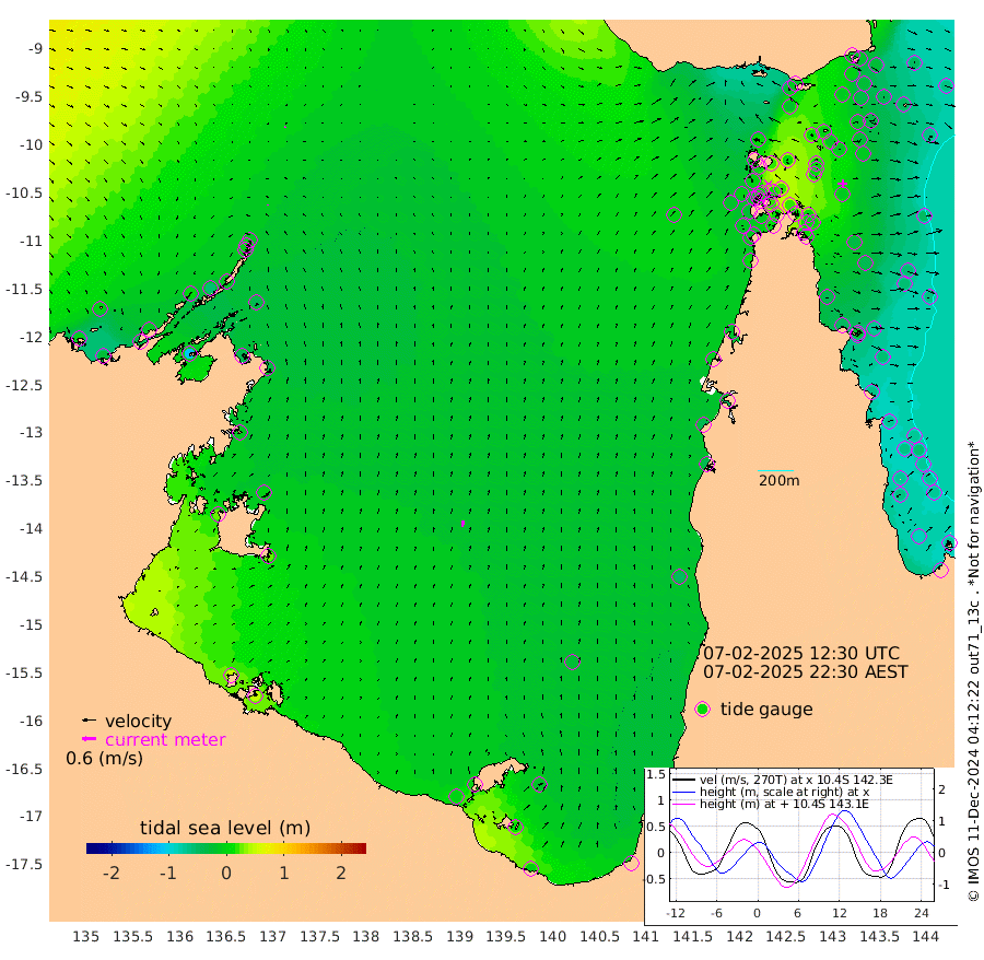 4cm/s 0T +3cm/s rms + 7cm/s -42T. ARA-GOC87 57m 26cm/s 10T +3cm/s rms + 2cm/s -2T. ARA-GOC87 60m 4cm/s 72T +2cm/s rms + 3cm/s 61T. ARA-GOC87 47m -16cm Daru -22cm Bobo Island -62cm Meer Island Barge -48cm Bramble Cay -28cm Unnamed Cay -30cm Pearce Cay -38cm Stephens Island -24cm Merrie England Shoals -6cm Mutacomal Reef -48cm Darnley Island Barge -61cm East Cay -31cm Yorke Island Barge -21cm Rennel Island -28cm Aureed Island -14cm Dungeness Reef -1cm Zagai Island 9cm Yam Island -20cm Dauan Island -14cm Saibai Island -19cm Phipi Reef -11cm Warrior Reef - West 12cm Mabuiag Island Barge -14cm Half Way Island -8cm Coconut Island -10cm Dugong Islet 6cm Poll Island 6cm Kirkcaldie Reef 8cm Suarji Island 3cm Sue Islet -2cm Hawkesbury Island 13cm Alert Patches 17cm Twin Island -8cm Badu Island 22cm St Pauls (Moa Island) -2cm Kubin (Moa Island) 13cm Ince Point 12cm Thursday Island 11cm Nardana Patches -9cm Turtle Head -3cm Round Island -21cm Goods Island -17cm Booby Island -6cm White Rocks Area -7cm Carpentaria 21cm Papou Point -25cm Bampfield Head -8cm Crab Island -9cm Red Wallis Island -9cm Packe Island 1cm Harrington Reef -18cm Herald Camp 15cm Sharp Point 6cm Red Island Point 10cm Possession Island 20cm Alpha Rock 9cm Frederick Point -2cm Wyborn Reef Light 4cm Tetley Island -49cm Triangle Reef -1cm Turtle Head Island -56cm Maclennan Cay -67cm Raine Island -31cm Mcsweeny Reef -38cm Collette Reef -56cm Shadwell Reef -42cm Hannibal Island -46cm Round Point 2cm Vrilya Point -47cm Cape Grenville -55cm Hicks Island -72cm Sir Charles Hardy Island -15cm Harvey Island -59cm Kay Reef -67cm Rocky Island -71cm Chapman Island -69cm Ham Reef -67cm Jubilee Reef -58cm Night Island -68cm Unnamed Reef No. 3 -69cm Morris Island -71cm 1st 3 Mile Opening -69cm Creech Reef -67cm Fife Island -86cm Eden Reef -68cm Stanley Island -67cm Normanby River -1cm Yabooma Island -27cm Hutchison River -12cm Elcho Island 0cm North West Crocodile Island -14cm Cape Wessel 0cm Stevens Island -56cm Guluwuru Island -10cm Hopeful Bay -8cm Auster Point -6cm Two Island Bay -31cm Cadell Strait -107cm Mallison Island -40cm Melville Bay (Gove Harbour) -41cm Truant Island -33cm Cape Arnhem -13cm Cape Grey -5cm Hawk Island 29cm Milner Bay (Groote Eylandt) 23cm Cape Beatrice 49cm West Island 50cm Centre Island -4cm Mornington Island -2cm West Wellesley Islands -18cm Bountiful Island -4cm Albert River Mouth 12cm Sweers Island -1cm Karumba -27cm Nassau River Offshore -47cm Christmas Creek -44cm Archer River -42cm Boyd Point -51cm Weipa (Humbug Point) -8cm Pennefather River -15cm Cullen Point