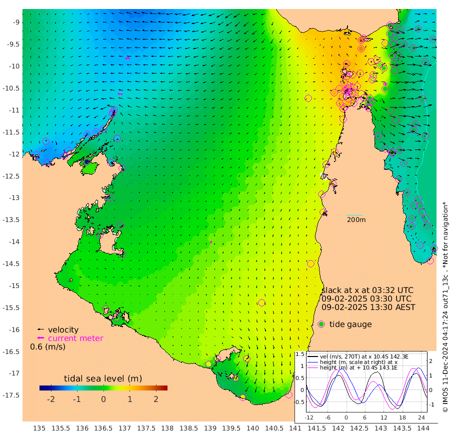 43cm/s -88T +3cm/s rms + 7cm/s -42T. ARA-GOC87 57m 20cm/s -160T +3cm/s rms + 2cm/s -2T. ARA-GOC87 60m 46cm/s -94T +2cm/s rms + 3cm/s 61T. ARA-GOC87 47m 4cm Daru -22cm Bobo Island -57cm Meer Island Barge -58cm Bramble Cay -34cm Unnamed Cay -34cm Pearce Cay -45cm Stephens Island -47cm Merrie England Shoals -8cm Mutacomal Reef -47cm Darnley Island Barge -60cm East Cay -24cm Yorke Island Barge -12cm Rennel Island -15cm Aureed Island 26cm Dungeness Reef 78cm Zagai Island 84cm Yam Island 167cm Dauan Island 144cm Saibai Island 157cm Phipi Reef 103cm Warrior Reef - West 133cm Mabuiag Island Barge -21cm Half Way Island 16cm Coconut Island 1cm Dugong Islet 50cm Poll Island 45cm Kirkcaldie Reef 103cm Suarji Island 50cm Sue Islet 124cm Hawkesbury Island 99cm Alert Patches 86cm Twin Island 141cm Badu Island 108cm St Pauls (Moa Island) 118cm Kubin (Moa Island) 110cm Ince Point 115cm Thursday Island 117cm Nardana Patches 127cm Turtle Head 119cm Round Island 123cm Goods Island 123cm Booby Island 116cm White Rocks Area 80cm Carpentaria 83cm Papou Point 117cm Bampfield Head 105cm Crab Island 119cm Red Wallis Island 118cm Packe Island 1cm Harrington Reef 133cm Herald Camp 38cm Sharp Point 103cm Red Island Point 94cm Possession Island 65cm Alpha Rock 51cm Frederick Point -1cm Wyborn Reef Light 13cm Tetley Island -30cm Triangle Reef -16cm Turtle Head Island -42cm Maclennan Cay -48cm Raine Island -30cm Mcsweeny Reef -36cm Collette Reef -41cm Shadwell Reef -50cm Hannibal Island -60cm Round Point 83cm Vrilya Point -55cm Cape Grenville -52cm Hicks Island -44cm Sir Charles Hardy Island -16cm Harvey Island -66cm Kay Reef -53cm Rocky Island -54cm Chapman Island -53cm Ham Reef -54cm Jubilee Reef -48cm Night Island -54cm Unnamed Reef No. 3 -59cm Morris Island -47cm 1st 3 Mile Opening -54cm Creech Reef -57cm Fife Island -81cm Eden Reef -65cm Stanley Island -81cm Normanby River -114cm Yabooma Island -130cm Hutchison River -117cm Elcho Island -107cm North West Crocodile Island -123cm Cape Wessel -132cm Stevens Island -120cm Guluwuru Island -122cm Hopeful Bay -119cm Auster Point -129cm Two Island Bay -149cm Cadell Strait -199cm Mallison Island -101cm Melville Bay (Gove Harbour) -110cm Truant Island -69cm Cape Arnhem -44cm Cape Grey -31cm Hawk Island -20cm Milner Bay (Groote Eylandt) -2cm Cape Beatrice 23cm West Island 21cm Centre Island 57cm Mornington Island 56cm West Wellesley Islands 74cm Bountiful Island 72cm Albert River Mouth 48cm Sweers Island 82cm Karumba 74cm Nassau River Offshore 82cm Christmas Creek 70cm Archer River 74cm Boyd Point 86cm Weipa (Humbug Point) 57cm Pennefather River 89cm Cullen Point