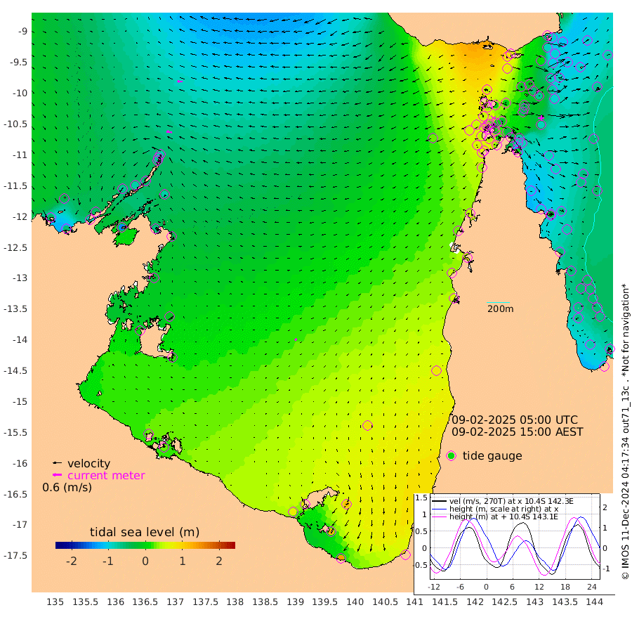 38cm/s -82T +3cm/s rms + 7cm/s -42T. ARA-GOC87 57m 16cm/s -126T +3cm/s rms + 2cm/s -2T. ARA-GOC87 60m 36cm/s -87T +2cm/s rms + 3cm/s 61T. ARA-GOC87 47m -75cm Daru -91cm Bobo Island -71cm Meer Island Barge -91cm Bramble Cay -95cm Unnamed Cay -99cm Pearce Cay -98cm Stephens Island -107cm Merrie England Shoals -89cm Mutacomal Reef -91cm Darnley Island Barge -77cm East Cay -85cm Yorke Island Barge -84cm Rennel Island -82cm Aureed Island -58cm Dungeness Reef -9cm Zagai Island -8cm Yam Island 87cm Dauan Island 72cm Saibai Island 76cm Phipi Reef 13cm Warrior Reef - West 50cm Mabuiag Island Barge -94cm Half Way Island -69cm Coconut Island -84cm Dugong Islet -45cm Poll Island -50cm Kirkcaldie Reef -4cm Suarji Island -39cm Sue Islet 48cm Hawkesbury Island -9cm Alert Patches -20cm Twin Island 66cm Badu Island -2cm St Pauls (Moa Island) 37cm Kubin (Moa Island) 12cm Ince Point 20cm Thursday Island 22cm Nardana Patches 43cm Turtle Head 47cm Round Island 55cm Goods Island 59cm Booby Island 47cm White Rocks Area 25cm Carpentaria -10cm Papou Point 50cm Bampfield Head 54cm Crab Island 53cm Red Wallis Island 42cm Packe Island -95cm Harrington Reef 68cm Herald Camp 5cm Sharp Point 31cm Red Island Point 5cm Possession Island -30cm Alpha Rock -49cm Frederick Point -87cm Wyborn Reef Light -78cm Tetley Island -55cm Triangle Reef -109cm Turtle Head Island -64cm Maclennan Cay -48cm Raine Island -89cm Mcsweeny Reef -83cm Collette Reef -60cm Shadwell Reef -98cm Hannibal Island -96cm Round Point 33cm Vrilya Point -86cm Cape Grenville -75cm Hicks Island -64cm Sir Charles Hardy Island -26cm Harvey Island -81cm Kay Reef -58cm Rocky Island -53cm Chapman Island -52cm Ham Reef -59cm Jubilee Reef -57cm Night Island -56cm Unnamed Reef No. 3 -65cm Morris Island -53cm 1st 3 Mile Opening -60cm Creech Reef -64cm Fife Island -76cm Eden Reef -71cm Stanley Island -87cm Normanby River -50cm Yabooma Island -56cm Hutchison River -46cm Elcho Island -40cm North West Crocodile Island -81cm Cape Wessel -73cm Stevens Island -79cm Guluwuru Island -58cm Hopeful Bay -74cm Auster Point -80cm Two Island Bay -84cm Cadell Strait -136cm Mallison Island -63cm Melville Bay (Gove Harbour) -75cm Truant Island -44cm Cape Arnhem -25cm Cape Grey -10cm Hawk Island 1cm Milner Bay (Groote Eylandt) 15cm Cape Beatrice 28cm West Island 29cm Centre Island 83cm Mornington Island 77cm West Wellesley Islands 116cm Bountiful Island 141cm Albert River Mouth 120cm Sweers Island 143cm Karumba 87cm Nassau River Offshore 79cm Christmas Creek 58cm Archer River 49cm Boyd Point 68cm Weipa (Humbug Point) 24cm Pennefather River 50cm Cullen Point