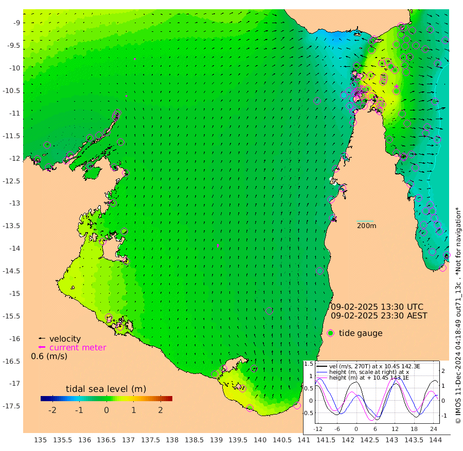 13cm/s 34T +3cm/s rms + 7cm/s -42T. ARA-GOC87 57m 33cm/s 9T +3cm/s rms + 2cm/s -2T. ARA-GOC87 60m 16cm/s 50T +2cm/s rms + 3cm/s 61T. ARA-GOC87 47m 15cm Daru 10cm Bobo Island -53cm Meer Island Barge -36cm Bramble Cay -6cm Unnamed Cay -6cm Pearce Cay -16cm Stephens Island -8cm Merrie England Shoals 17cm Mutacomal Reef -25cm Darnley Island Barge -54cm East Cay -4cm Yorke Island Barge 2cm Rennel Island 3cm Aureed Island 12cm Dungeness Reef 30cm Zagai Island 30cm Yam Island -9cm Dauan Island -2cm Saibai Island -6cm Phipi Reef 17cm Warrior Reef - West 5cm Mabuiag Island Barge 9cm Half Way Island 19cm Coconut Island 15cm Dugong Islet 30cm Poll Island 25cm Kirkcaldie Reef 35cm Suarji Island 27cm Sue Islet -71cm Hawkesbury Island 19cm Alert Patches 28cm Twin Island -61cm Badu Island 36cm St Pauls (Moa Island) -38cm Kubin (Moa Island) 6cm Ince Point -7cm Thursday Island -4cm Nardana Patches -44cm Turtle Head -43cm Round Island -83cm Goods Island -94cm Booby Island -77cm White Rocks Area -67cm Carpentaria 28cm Papou Point -86cm Bampfield Head -77cm Crab Island -82cm Red Wallis Island -60cm Packe Island 31cm Harrington Reef -78cm Herald Camp 22cm Sharp Point -35cm Red Island Point 5cm Possession Island 34cm Alpha Rock 28cm Frederick Point 25cm Wyborn Reef Light 30cm Tetley Island -42cm Triangle Reef 25cm Turtle Head Island -50cm Maclennan Cay -70cm Raine Island -8cm Mcsweeny Reef -21cm Collette Reef -50cm Shadwell Reef -22cm Hannibal Island -36cm Round Point -68cm Vrilya Point -40cm Cape Grenville -46cm Hicks Island -66cm Sir Charles Hardy Island -11cm Harvey Island -58cm Kay Reef -67cm Rocky Island -77cm Chapman Island -73cm Ham Reef -67cm Jubilee Reef -55cm Night Island -73cm Unnamed Reef No. 3 -68cm Morris Island -71cm 1st 3 Mile Opening -69cm Creech Reef -61cm Fife Island -88cm Eden Reef -69cm Stanley Island -66cm Normanby River -14cm Yabooma Island -30cm Hutchison River -19cm Elcho Island -11cm North West Crocodile Island 4cm Cape Wessel 4cm Stevens Island -19cm Guluwuru Island -10cm Hopeful Bay 4cm Auster Point 7cm Two Island Bay -17cm Cadell Strait -49cm Mallison Island -8cm Melville Bay (Gove Harbour) -6cm Truant Island -2cm Cape Arnhem 16cm Cape Grey 23cm Hawk Island 59cm Milner Bay (Groote Eylandt) 46cm Cape Beatrice 74cm West Island 74cm Centre Island 19cm Mornington Island 21cm West Wellesley Islands 8cm Bountiful Island 24cm Albert River Mouth 56cm Sweers Island 20cm Karumba -31cm Nassau River Offshore -67cm Christmas Creek -85cm Archer River -81cm Boyd Point -99cm Weipa (Humbug Point) -57cm Pennefather River -74cm Cullen Point