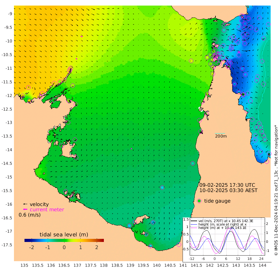 22cm/s 122T +3cm/s rms + 7cm/s -42T. ARA-GOC87 57m 19cm/s 23T +3cm/s rms + 2cm/s -2T. ARA-GOC87 60m 26cm/s 121T +2cm/s rms + 3cm/s 61T. ARA-GOC87 47m -151cm Daru -149cm Bobo Island -94cm Meer Island Barge -125cm Bramble Cay -149cm Unnamed Cay -150cm Pearce Cay -145cm Stephens Island -153cm Merrie England Shoals -158cm Mutacomal Reef -131cm Darnley Island Barge -107cm East Cay -138cm Yorke Island Barge -150cm Rennel Island -146cm Aureed Island -144cm Dungeness Reef -102cm Zagai Island -109cm Yam Island -52cm Dauan Island -42cm Saibai Island -83cm Phipi Reef -113cm Warrior Reef - West -23cm Mabuiag Island Barge -148cm Half Way Island -139cm Coconut Island -154cm Dugong Islet -126cm Poll Island -135cm Kirkcaldie Reef -115cm Suarji Island -114cm Sue Islet 23cm Hawkesbury Island -94cm Alert Patches -99cm Twin Island 20cm Badu Island -90cm St Pauls (Moa Island) -13cm Kubin (Moa Island) -61cm Ince Point -41cm Thursday Island -46cm Nardana Patches -27cm Turtle Head 2cm Round Island 17cm Goods Island 50cm Booby Island 30cm White Rocks Area 65cm Carpentaria -73cm Papou Point 49cm Bampfield Head 46cm Crab Island 36cm Red Wallis Island -11cm Packe Island -163cm Harrington Reef 16cm Herald Camp -29cm Sharp Point -20cm Red Island Point -55cm Possession Island -96cm Alpha Rock -123cm Frederick Point -143cm Wyborn Reef Light -136cm Tetley Island -85cm Triangle Reef -141cm Turtle Head Island -96cm Maclennan Cay -67cm Raine Island -139cm Mcsweeny Reef -129cm Collette Reef -92cm Shadwell Reef -142cm Hannibal Island -128cm Round Point 54cm Vrilya Point -119cm Cape Grenville -109cm Hicks Island -108cm Sir Charles Hardy Island -37cm Harvey Island -103cm Kay Reef -84cm Rocky Island -74cm Chapman Island -69cm Ham Reef -78cm Jubilee Reef -81cm Night Island -75cm Unnamed Reef No. 3 -88cm Morris Island -74cm 1st 3 Mile Opening -83cm Creech Reef -91cm Fife Island -92cm Eden Reef -91cm Stanley Island -104cm Normanby River 105cm Yabooma Island 106cm Hutchison River 107cm Elcho Island 101cm North West Crocodile Island 69cm Cape Wessel 93cm Stevens Island 35cm Guluwuru Island 87cm Hopeful Bay 78cm Auster Point 83cm Two Island Bay 85cm Cadell Strait 7cm Mallison Island 38cm Melville Bay (Gove Harbour) 45cm Truant Island 22cm Cape Arnhem 5cm Cape Grey -8cm Hawk Island -8cm Milner Bay (Groote Eylandt) -28cm Cape Beatrice -48cm West Island -46cm Centre Island -103cm Mornington Island -109cm West Wellesley Islands -113cm Bountiful Island -105cm Albert River Mouth -93cm Sweers Island -110cm Karumba -101cm Nassau River Offshore -82cm Christmas Creek -24cm Archer River -3cm Boyd Point -3cm Weipa (Humbug Point) 22cm Pennefather River 38cm Cullen Point