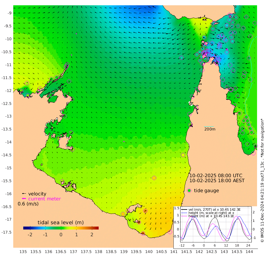 19cm/s -60T +3cm/s rms + 7cm/s -42T. ARA-GOC87 57m 18cm/s -75T +3cm/s rms + 2cm/s -2T. ARA-GOC87 60m 14cm/s -46T +2cm/s rms + 3cm/s 61T. ARA-GOC87 47m -90cm Daru -84cm Bobo Island -12cm Meer Island Barge -31cm Bramble Cay -67cm Unnamed Cay -76cm Pearce Cay -59cm Stephens Island -62cm Merrie England Shoals -90cm Mutacomal Reef -49cm Darnley Island Barge -12cm East Cay -72cm Yorke Island Barge -80cm Rennel Island -79cm Aureed Island -93cm Dungeness Reef -104cm Zagai Island -107cm Yam Island -82cm Dauan Island -81cm Saibai Island -68cm Phipi Reef -98cm Warrior Reef - West -99cm Mabuiag Island Barge -86cm Half Way Island -101cm Coconut Island -98cm Dugong Islet -111cm Poll Island -107cm Kirkcaldie Reef -120cm Suarji Island -109cm Sue Islet -89cm Hawkesbury Island -124cm Alert Patches -126cm Twin Island -84cm Badu Island -134cm St Pauls (Moa Island) -96cm Kubin (Moa Island) -115cm Ince Point -111cm Thursday Island -111cm Nardana Patches -89cm Turtle Head -83cm Round Island -72cm Goods Island -71cm Booby Island -75cm White Rocks Area -82cm Carpentaria -117cm Papou Point -85cm Bampfield Head -55cm Crab Island -73cm Red Wallis Island -82cm Packe Island -116cm Harrington Reef -68cm Herald Camp -37cm Sharp Point -78cm Red Island Point -106cm Possession Island -117cm Alpha Rock -121cm Frederick Point -107cm Wyborn Reef Light -114cm Tetley Island -26cm Triangle Reef -123cm Turtle Head Island -19cm Maclennan Cay 10cm Raine Island -67cm Mcsweeny Reef -49cm Collette Reef -14cm Shadwell Reef -49cm Hannibal Island -35cm Round Point -61cm Vrilya Point -27cm Cape Grenville -20cm Hicks Island -13cm Sir Charles Hardy Island -9cm Harvey Island -7cm Kay Reef 5cm Rocky Island 13cm Chapman Island 10cm Ham Reef 3cm Jubilee Reef -1cm Night Island 9cm Unnamed Reef No. 3 4cm Morris Island 2cm 1st 3 Mile Opening 2cm Creech Reef 0cm Fife Island 18cm Eden Reef 5cm Stanley Island 4cm Normanby River 30cm Yabooma Island 36cm Hutchison River 40cm Elcho Island 40cm North West Crocodile Island -12cm Cape Wessel 15cm Stevens Island -7cm Guluwuru Island 31cm Hopeful Bay -3cm Auster Point -5cm Two Island Bay 12cm Cadell Strait 3cm Mallison Island -3cm Melville Bay (Gove Harbour) -15cm Truant Island -6cm Cape Arnhem 7cm Cape Grey 22cm Hawk Island 33cm Milner Bay (Groote Eylandt) 43cm Cape Beatrice 45cm West Island 50cm Centre Island 112cm Mornington Island 107cm West Wellesley Islands 152cm Bountiful Island 200cm Albert River Mouth 192cm Sweers Island 191cm Karumba 98cm Nassau River Offshore 64cm Christmas Creek 26cm Archer River -9cm Boyd Point 10cm Weipa (Humbug Point) -31cm Pennefather River -39cm Cullen Point