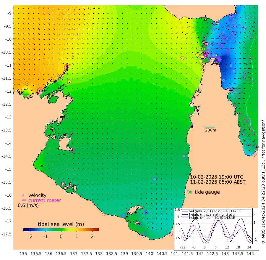 22cm/s 128T +3cm/s rms + 7cm/s -42T. ARA-GOC87 57m 13cm/s 32T +3cm/s rms + 2cm/s -2T. ARA-GOC87 60m 26cm/s 126T +2cm/s rms + 3cm/s 61T. ARA-GOC87 47m -147cm Daru -139cm Bobo Island -54cm Meer Island Barge -87cm Bramble Cay -123cm Unnamed Cay -131cm Pearce Cay -116cm Stephens Island -121cm Merrie England Shoals -145cm Mutacomal Reef -101cm Darnley Island Barge -66cm East Cay -121cm Yorke Island Barge -135cm Rennel Island -135cm Aureed Island -143cm Dungeness Reef -128cm Zagai Island -131cm Yam Island -94cm Dauan Island -80cm Saibai Island -122cm Phipi Reef -143cm Warrior Reef - West -53cm Mabuiag Island Barge -132cm Half Way Island -139cm Coconut Island -144cm Dugong Islet -138cm Poll Island -142cm Kirkcaldie Reef -140cm Suarji Island -126cm Sue Islet 30cm Hawkesbury Island -112cm Alert Patches -118cm Twin Island 10cm Badu Island -119cm St Pauls (Moa Island) -18cm Kubin (Moa Island) -79cm Ince Point -56cm Thursday Island -62cm Nardana Patches -32cm Turtle Head 3cm Round Island 27cm Goods Island 65cm Booby Island 44cm White Rocks Area 84cm Carpentaria -95cm Papou Point 71cm Bampfield Head 54cm Crab Island 47cm Red Wallis Island -7cm Packe Island -158cm Harrington Reef 28cm Herald Camp -43cm Sharp Point -27cm Red Island Point -66cm Possession Island -110cm Alpha Rock -133cm Frederick Point -137cm Wyborn Reef Light -136cm Tetley Island -57cm Triangle Reef -131cm Turtle Head Island -60cm Maclennan Cay -26cm Raine Island -116cm Mcsweeny Reef -101cm Collette Reef -56cm Shadwell Reef -108cm Hannibal Island -89cm Round Point 65cm Vrilya Point -78cm Cape Grenville -71cm Hicks Island -64cm Sir Charles Hardy Island -26cm Harvey Island -54cm Kay Reef -40cm Rocky Island -29cm Chapman Island -25cm Ham Reef -35cm Jubilee Reef -43cm Night Island -30cm Unnamed Reef No. 3 -42cm Morris Island -30cm 1st 3 Mile Opening -38cm Creech Reef -52cm Fife Island -34cm Eden Reef -40cm Stanley Island -51cm Normanby River 121cm Yabooma Island 124cm Hutchison River 122cm Elcho Island 112cm North West Crocodile Island 80cm Cape Wessel 104cm Stevens Island 48cm Guluwuru Island 103cm Hopeful Bay 88cm Auster Point 94cm Two Island Bay 93cm Cadell Strait 38cm Mallison Island 45cm Melville Bay (Gove Harbour) 52cm Truant Island 24cm Cape Arnhem 2cm Cape Grey -13cm Hawk Island -22cm Milner Bay (Groote Eylandt) -41cm Cape Beatrice -68cm West Island -64cm Centre Island -120cm Mornington Island -123cm West Wellesley Islands -128cm Bountiful Island -132cm Albert River Mouth -126cm Sweers Island -139cm Karumba -107cm Nassau River Offshore -77cm Christmas Creek -10cm Archer River 11cm Boyd Point 15cm Weipa (Humbug Point) 31cm Pennefather River 51cm Cullen Point