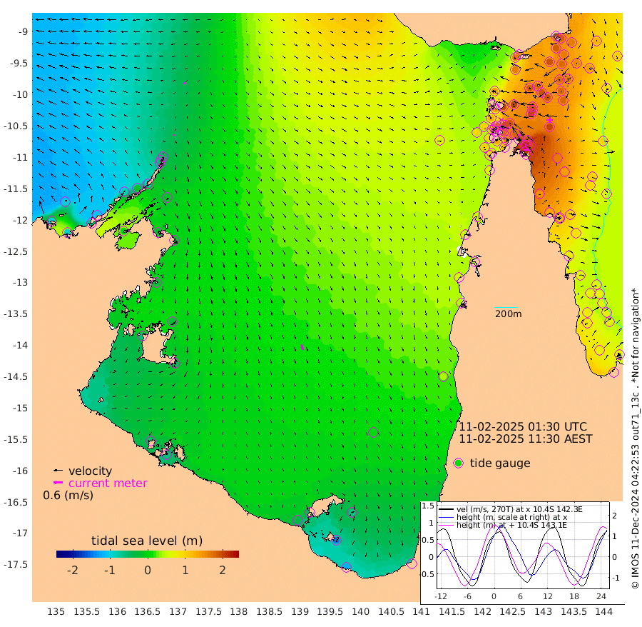 7cm/s -147T +3cm/s rms + 7cm/s -42T. ARA-GOC87 57m 38cm/s 168T +3cm/s rms + 2cm/s -2T. ARA-GOC87 60m 16cm/s -107T +2cm/s rms + 3cm/s 61T. ARA-GOC87 47m 189cm Daru 180cm Bobo Island 89cm Meer Island Barge 122cm Bramble Cay 163cm Unnamed Cay 178cm Pearce Cay 157cm Stephens Island 159cm Merrie England Shoals 187cm Mutacomal Reef 141cm Darnley Island Barge 100cm East Cay 164cm Yorke Island Barge 180cm Rennel Island 176cm Aureed Island 190cm Dungeness Reef 177cm Zagai Island 185cm Yam Island 160cm Dauan Island 144cm Saibai Island 163cm Phipi Reef 192cm Warrior Reef - West 137cm Mabuiag Island Barge 178cm Half Way Island 190cm Coconut Island 195cm Dugong Islet 193cm Poll Island 196cm Kirkcaldie Reef 197cm Suarji Island 183cm Sue Islet 126cm Hawkesbury Island 193cm Alert Patches 195cm Twin Island 122cm Badu Island 197cm St Pauls (Moa Island) 142cm Kubin (Moa Island) 171cm Ince Point 159cm Thursday Island 161cm Nardana Patches 145cm Turtle Head 117cm Round Island 114cm Goods Island 92cm Booby Island 100cm White Rocks Area 67cm Carpentaria 169cm Papou Point 97cm Bampfield Head 71cm Crab Island 100cm Red Wallis Island 135cm Packe Island 211cm Harrington Reef 112cm Herald Camp 54cm Sharp Point 127cm Red Island Point 154cm Possession Island 176cm Alpha Rock 201cm Frederick Point 191cm Wyborn Reef Light 194cm Tetley Island 99cm Triangle Reef 203cm Turtle Head Island 99cm Maclennan Cay 59cm Raine Island 159cm Mcsweeny Reef 139cm Collette Reef 90cm Shadwell Reef 145cm Hannibal Island 129cm Round Point 62cm Vrilya Point 114cm Cape Grenville 106cm Hicks Island 108cm Sir Charles Hardy Island 37cm Harvey Island 89cm Kay Reef 73cm Rocky Island 63cm Chapman Island 62cm Ham Reef 71cm Jubilee Reef 72cm Night Island 66cm Unnamed Reef No. 3 75cm Morris Island 68cm 1st 3 Mile Opening 74cm Creech Reef 82cm Fife Island 69cm Eden Reef 74cm Stanley Island 83cm Normanby River -98cm Yabooma Island -97cm Hutchison River -109cm Elcho Island -105cm North West Crocodile Island -45cm Cape Wessel -87cm Stevens Island -15cm Guluwuru Island -93cm Hopeful Bay -60cm Auster Point -61cm Two Island Bay -60cm Cadell Strait 3cm Mallison Island -24cm Melville Bay (Gove Harbour) -20cm Truant Island -12cm Cape Arnhem -23cm Cape Grey -30cm Hawk Island -63cm Milner Bay (Groote Eylandt) -50cm Cape Beatrice -53cm West Island -60cm Centre Island -41cm Mornington Island -35cm West Wellesley Islands -65cm Bountiful Island -124cm Albert River Mouth -145cm Sweers Island -104cm Karumba 3cm Nassau River Offshore 41cm Christmas Creek 43cm Archer River 59cm Boyd Point 50cm Weipa (Humbug Point) 48cm Pennefather River 57cm Cullen Point