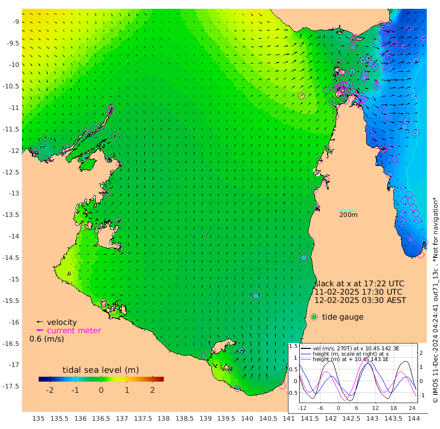 2cm/s 68T +3cm/s rms + 7cm/s -42T. ARA-GOC87 57m 29cm/s 18T +3cm/s rms + 2cm/s -2T. ARA-GOC87 60m 7cm/s 126T +2cm/s rms + 3cm/s 61T. ARA-GOC87 47m -136cm Daru -143cm Bobo Island -116cm Meer Island Barge -144cm Bramble Cay -146cm Unnamed Cay -156cm Pearce Cay -148cm Stephens Island -154cm Merrie England Shoals -144cm Mutacomal Reef -137cm Darnley Island Barge -135cm East Cay -131cm Yorke Island Barge -143cm Rennel Island -137cm Aureed Island -126cm Dungeness Reef -71cm Zagai Island -77cm Yam Island -37cm Dauan Island -25cm Saibai Island -66cm Phipi Reef -87cm Warrior Reef - West -10cm Mabuiag Island Barge -136cm Half Way Island -122cm Coconut Island -133cm Dugong Islet -100cm Poll Island -108cm Kirkcaldie Reef -75cm Suarji Island -85cm Sue Islet -20cm Hawkesbury Island -69cm Alert Patches -72cm Twin Island -15cm Badu Island -55cm St Pauls (Moa Island) -28cm Kubin (Moa Island) -45cm Ince Point -34cm Thursday Island -36cm Nardana Patches -39cm Turtle Head -14cm Round Island -23cm Goods Island 7cm Booby Island -9cm White Rocks Area 50cm Carpentaria -49cm Papou Point 16cm Bampfield Head 8cm Crab Island -4cm Red Wallis Island -37cm Packe Island -137cm Harrington Reef -10cm Herald Camp -9cm Sharp Point -39cm Red Island Point -41cm Possession Island -66cm Alpha Rock -99cm Frederick Point -127cm Wyborn Reef Light -117cm Tetley Island -105cm Triangle Reef -128cm Turtle Head Island -115cm Maclennan Cay -102cm Raine Island -137cm Mcsweeny Reef -135cm Collette Reef -112cm Shadwell Reef -149cm Hannibal Island -151cm Round Point 22cm Vrilya Point -135cm Cape Grenville -130cm Hicks Island -132cm Sir Charles Hardy Island -41cm Harvey Island -131cm Kay Reef -116cm Rocky Island -116cm Chapman Island -105cm Ham Reef -109cm Jubilee Reef -105cm Night Island -112cm Unnamed Reef No. 3 -120cm Morris Island -103cm 1st 3 Mile Opening -113cm Creech Reef -124cm Fife Island -137cm Eden Reef -122cm Stanley Island -139cm Normanby River -13cm Yabooma Island -31cm Hutchison River -9cm Elcho Island -10cm North West Crocodile Island -5cm Cape Wessel -11cm Stevens Island -31cm Guluwuru Island -13cm Hopeful Bay -4cm Auster Point 1cm Two Island Bay -39cm Cadell Strait -76cm Mallison Island -24cm Melville Bay (Gove Harbour) -20cm Truant Island -13cm Cape Arnhem -4cm Cape Grey -7cm Hawk Island 27cm Milner Bay (Groote Eylandt) 8cm Cape Beatrice 27cm West Island 30cm Centre Island -52cm Mornington Island -55cm West Wellesley Islands -66cm Bountiful Island -57cm Albert River Mouth -36cm Sweers Island -66cm Karumba -84cm Nassau River Offshore -86cm Christmas Creek -54cm Archer River -28cm Boyd Point -38cm Weipa (Humbug Point) -3cm Pennefather River 11cm Cullen Point