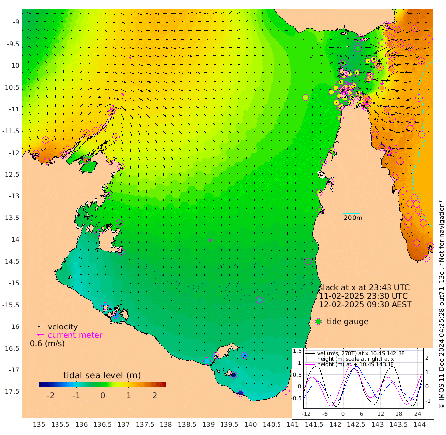 31cm/s 120T +3cm/s rms + 7cm/s -42T. ARA-GOC87 57m 26cm/s 166T +3cm/s rms + 2cm/s -2T. ARA-GOC87 60m 23cm/s 115T +2cm/s rms + 3cm/s 61T. ARA-GOC87 47m 127cm Daru 141cm Bobo Island 131cm Meer Island Barge 155cm Bramble Cay 152cm Unnamed Cay 160cm Pearce Cay 154cm Stephens Island 160cm Merrie England Shoals 142cm Mutacomal Reef 145cm Darnley Island Barge 146cm East Cay 134cm Yorke Island Barge 143cm Rennel Island 134cm Aureed Island 114cm Dungeness Reef 55cm Zagai Island 61cm Yam Island 5cm Dauan Island 3cm Saibai Island 8cm Phipi Reef 55cm Warrior Reef - West 18cm Mabuiag Island Barge 138cm Half Way Island 120cm Coconut Island 133cm Dugong Islet 94cm Poll Island 95cm Kirkcaldie Reef 61cm Suarji Island 82cm Sue Islet 85cm Hawkesbury Island 71cm Alert Patches 76cm Twin Island 55cm Badu Island 54cm St Pauls (Moa Island) 70cm Kubin (Moa Island) 58cm Ince Point 56cm Thursday Island 54cm Nardana Patches 64cm Turtle Head 61cm Round Island 75cm Goods Island 65cm Booby Island 76cm White Rocks Area 42cm Carpentaria 56cm Papou Point 82cm Bampfield Head 40cm Crab Island 68cm Red Wallis Island 77cm Packe Island 138cm Harrington Reef 64cm Herald Camp -4cm Sharp Point 55cm Red Island Point 60cm Possession Island 76cm Alpha Rock 102cm Frederick Point 139cm Wyborn Reef Light 129cm Tetley Island 119cm Triangle Reef 154cm Turtle Head Island 128cm Maclennan Cay 116cm Raine Island 144cm Mcsweeny Reef 140cm Collette Reef 122cm Shadwell Reef 156cm Hannibal Island 165cm Round Point 33cm Vrilya Point 147cm Cape Grenville 140cm Hicks Island 147cm Sir Charles Hardy Island 43cm Harvey Island 148cm Kay Reef 129cm Rocky Island 133cm Chapman Island 124cm Ham Reef 126cm Jubilee Reef 115cm Night Island 128cm Unnamed Reef No. 3 136cm Morris Island 120cm 1st 3 Mile Opening 128cm Creech Reef 134cm Fife Island 156cm Eden Reef 139cm Stanley Island 157cm Normanby River 128cm Yabooma Island 154cm Hutchison River 117cm Elcho Island 105cm North West Crocodile Island 115cm Cape Wessel 124cm Stevens Island 118cm Guluwuru Island 112cm Hopeful Bay 112cm Auster Point 112cm Two Island Bay 149cm Cadell Strait 172cm Mallison Island 99cm Melville Bay (Gove Harbour) 111cm Truant Island 62cm Cape Arnhem 16cm Cape Grey -4cm Hawk Island -67cm Milner Bay (Groote Eylandt) -69cm Cape Beatrice -123cm West Island -128cm Centre Island -119cm Mornington Island -111cm West Wellesley Islands -131cm Bountiful Island -183cm Albert River Mouth -195cm Sweers Island -176cm Karumba -66cm Nassau River Offshore -18cm Christmas Creek 20cm Archer River 32cm Boyd Point 34cm Weipa (Humbug Point) 22cm Pennefather River 30cm Cullen Point