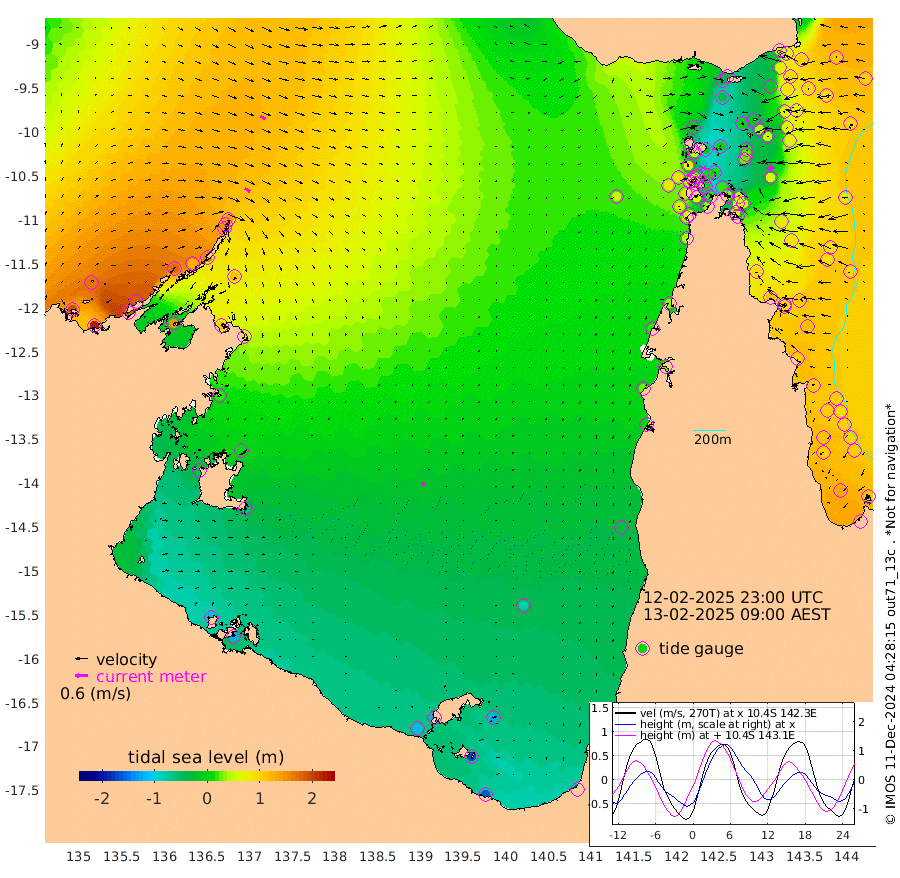 29cm/s 123T +3cm/s rms + 7cm/s -42T. ARA-GOC87 57m 14cm/s 167T +3cm/s rms + 2cm/s -2T. ARA-GOC87 60m 26cm/s 118T +2cm/s rms + 3cm/s 61T. ARA-GOC87 47m 53cm Daru 65cm Bobo Island 94cm Meer Island Barge 106cm Bramble Cay 90cm Unnamed Cay 87cm Pearce Cay 90cm Stephens Island 99cm Merrie England Shoals 73cm Mutacomal Reef 85cm Darnley Island Barge 104cm East Cay 67cm Yorke Island Barge 74cm Rennel Island 61cm Aureed Island 42cm Dungeness Reef -11cm Zagai Island -3cm Yam Island -41cm Dauan Island -40cm Saibai Island -45cm Phipi Reef -16cm Warrior Reef - West -13cm Mabuiag Island Barge 68cm Half Way Island 47cm Coconut Island 59cm Dugong Islet 24cm Poll Island 24cm Kirkcaldie Reef -5cm Suarji Island 15cm Sue Islet 82cm Hawkesbury Island 13cm Alert Patches 14cm Twin Island 47cm Badu Island -8cm St Pauls (Moa Island) 50cm Kubin (Moa Island) 13cm Ince Point 21cm Thursday Island 17cm Nardana Patches 40cm Turtle Head 54cm Round Island 74cm Goods Island 76cm Booby Island 84cm White Rocks Area 51cm Carpentaria 4cm Papou Point 97cm Bampfield Head 48cm Crab Island 72cm Red Wallis Island 62cm Packe Island 56cm Harrington Reef 66cm Herald Camp -23cm Sharp Point 31cm Red Island Point 22cm Possession Island 21cm Alpha Rock 31cm Frederick Point 70cm Wyborn Reef Light 59cm Tetley Island 81cm Triangle Reef 78cm Turtle Head Island 89cm Maclennan Cay 93cm Raine Island 81cm Mcsweeny Reef 85cm Collette Reef 87cm Shadwell Reef 97cm Hannibal Island 115cm Round Point 40cm Vrilya Point 103cm Cape Grenville 98cm Hicks Island 107cm Sir Charles Hardy Island 28cm Harvey Island 114cm Kay Reef 101cm Rocky Island 109cm Chapman Island 100cm Ham Reef 98cm Jubilee Reef 86cm Night Island 102cm Unnamed Reef No. 3 106cm Morris Island 96cm 1st 3 Mile Opening 99cm Creech Reef 99cm Fife Island 128cm Eden Reef 110cm Stanley Island 123cm Normanby River 194cm Yabooma Island 218cm Hutchison River 182cm Elcho Island 168cm North West Crocodile Island 139cm Cape Wessel 175cm Stevens Island 121cm Guluwuru Island 164cm Hopeful Bay 147cm Auster Point 146cm Two Island Bay 179cm Cadell Strait 146cm Mallison Island 108cm Melville Bay (Gove Harbour) 119cm Truant Island 63cm Cape Arnhem 18cm Cape Grey 1cm Hawk Island -54cm Milner Bay (Groote Eylandt) -61cm Cape Beatrice -119cm West Island -123cm Centre Island -127cm Mornington Island -119cm West Wellesley Islands -127cm Bountiful Island -161cm Albert River Mouth -171cm Sweers Island -163cm Karumba -81cm Nassau River Offshore -37cm Christmas Creek 14cm Archer River 27cm Boyd Point 35cm Weipa (Humbug Point) 20cm Pennefather River 37cm Cullen Point