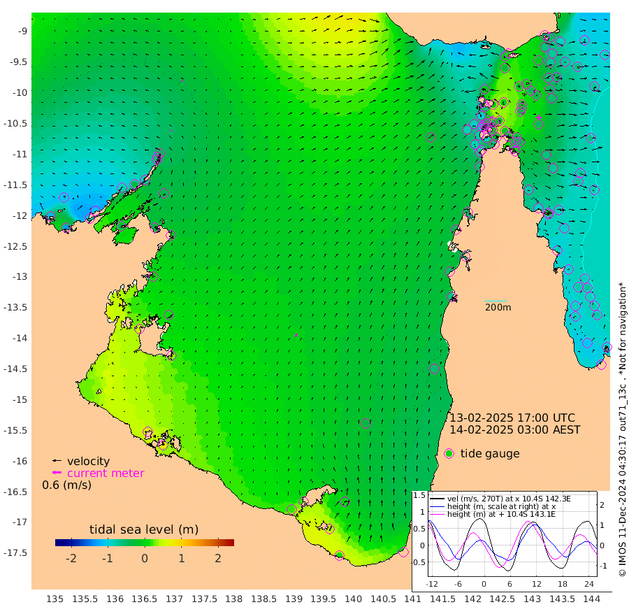 11cm/s 11T +3cm/s rms + 7cm/s -42T. ARA-GOC87 57m 25cm/s 20T +3cm/s rms + 2cm/s -2T. ARA-GOC87 60m 8cm/s 31T +2cm/s rms + 3cm/s 61T. ARA-GOC87 47m -51cm Daru -52cm Bobo Island -74cm Meer Island Barge -88cm Bramble Cay -74cm Unnamed Cay -72cm Pearce Cay -73cm Stephens Island -84cm Merrie England Shoals -66cm Mutacomal Reef -66cm Darnley Island Barge -88cm East Cay -52cm Yorke Island Barge -65cm Rennel Island -47cm Aureed Island -46cm Dungeness Reef -1cm Zagai Island -16cm Yam Island -9cm Dauan Island 3cm Saibai Island -24cm Phipi Reef -14cm Warrior Reef - West -10cm Mabuiag Island Barge -57cm Half Way Island -40cm Coconut Island -51cm Dugong Islet -27cm Poll Island -36cm Kirkcaldie Reef -5cm Suarji Island -18cm Sue Islet -104cm Hawkesbury Island -26cm Alert Patches -22cm Twin Island -75cm Badu Island -6cm St Pauls (Moa Island) -66cm Kubin (Moa Island) -29cm Ince Point -36cm Thursday Island -33cm Nardana Patches -64cm Turtle Head -70cm Round Island -92cm Goods Island -88cm Booby Island -91cm White Rocks Area -26cm Carpentaria -13cm Papou Point -82cm Bampfield Head -72cm Crab Island -86cm Red Wallis Island -84cm Packe Island -44cm Harrington Reef -91cm Herald Camp 11cm Sharp Point -65cm Red Island Point -33cm Possession Island -18cm Alpha Rock -31cm Frederick Point -52cm Wyborn Reef Light -45cm Tetley Island -67cm Triangle Reef -55cm Turtle Head Island -73cm Maclennan Cay -80cm Raine Island -64cm Mcsweeny Reef -71cm Collette Reef -75cm Shadwell Reef -79cm Hannibal Island -96cm Round Point -56cm Vrilya Point -85cm Cape Grenville -83cm Hicks Island -89cm Sir Charles Hardy Island -24cm Harvey Island -94cm Kay Reef -86cm Rocky Island -93cm Chapman Island -84cm Ham Reef -81cm Jubilee Reef -73cm Night Island -87cm Unnamed Reef No. 3 -88cm Morris Island -77cm 1st 3 Mile Opening -82cm Creech Reef -83cm Fife Island -105cm Eden Reef -92cm Stanley Island -101cm Normanby River -119cm Yabooma Island -131cm Hutchison River -105cm Elcho Island -105cm North West Crocodile Island -42cm Cape Wessel -88cm Stevens Island -33cm Guluwuru Island -90cm Hopeful Bay -59cm Auster Point -58cm Two Island Bay -97cm Cadell Strait -37cm Mallison Island -32cm Melville Bay (Gove Harbour) -30cm Truant Island -8cm Cape Arnhem 11cm Cape Grey 10cm Hawk Island 53cm Milner Bay (Groote Eylandt) 41cm Cape Beatrice 79cm West Island 80cm Centre Island 21cm Mornington Island 21cm West Wellesley Islands 5cm Bountiful Island 13cm Albert River Mouth 39cm Sweers Island -1cm Karumba -33cm Nassau River Offshore -59cm Christmas Creek -73cm Archer River -58cm Boyd Point -79cm Weipa (Humbug Point) -48cm Pennefather River -57cm Cullen Point