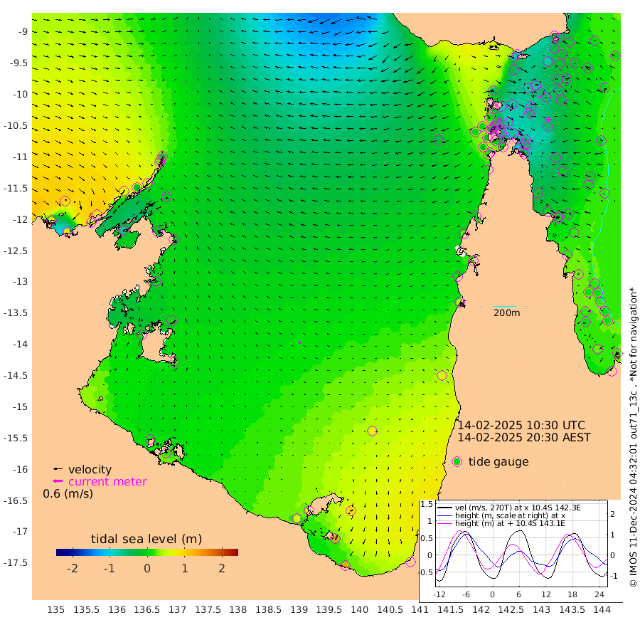 6cm/s -120T +3cm/s rms + 7cm/s -42T. ARA-GOC87 57m 15cm/s -63T +3cm/s rms + 2cm/s -2T. ARA-GOC87 60m 2cm/s 179T +2cm/s rms + 3cm/s 61T. ARA-GOC87 47m -45cm Daru -44cm Bobo Island 2cm Meer Island Barge 1cm Bramble Cay -22cm Unnamed Cay -27cm Pearce Cay -21cm Stephens Island -10cm Merrie England Shoals -35cm Mutacomal Reef -22cm Darnley Island Barge 7cm East Cay -39cm Yorke Island Barge -33cm Rennel Island -46cm Aureed Island -46cm Dungeness Reef -79cm Zagai Island -72cm Yam Island -72cm Dauan Island -79cm Saibai Island -41cm Phipi Reef -77cm Warrior Reef - West -59cm Mabuiag Island Barge -35cm Half Way Island -52cm Coconut Island -49cm Dugong Islet -63cm Poll Island -52cm Kirkcaldie Reef -78cm Suarji Island -68cm Sue Islet 0cm Hawkesbury Island -60cm Alert Patches -68cm Twin Island -8cm Badu Island -80cm St Pauls (Moa Island) -30cm Kubin (Moa Island) -56cm Ince Point -46cm Thursday Island -49cm Nardana Patches -23cm Turtle Head -17cm Round Island 3cm Goods Island 6cm Booby Island 7cm White Rocks Area -37cm Carpentaria -65cm Papou Point -17cm Bampfield Head 16cm Crab Island 0cm Red Wallis Island -14cm Packe Island -57cm Harrington Reef -10cm Herald Camp -26cm Sharp Point -7cm Red Island Point -46cm Possession Island -70cm Alpha Rock -64cm Frederick Point -52cm Wyborn Reef Light -59cm Tetley Island -9cm Triangle Reef -48cm Turtle Head Island -3cm Maclennan Cay 20cm Raine Island -27cm Mcsweeny Reef -15cm Collette Reef 5cm Shadwell Reef -11cm Hannibal Island 4cm Round Point 11cm Vrilya Point 3cm Cape Grenville 4cm Hicks Island -5cm Sir Charles Hardy Island -1cm Harvey Island 16cm Kay Reef 16cm Rocky Island 23cm Chapman Island 15cm Ham Reef 14cm Jubilee Reef 10cm Night Island 17cm Unnamed Reef No. 3 18cm Morris Island 15cm 1st 3 Mile Opening 14cm Creech Reef 10cm Fife Island 28cm Eden Reef 21cm Stanley Island 23cm Normanby River 87cm Yabooma Island 88cm Hutchison River 82cm Elcho Island 86cm North West Crocodile Island -3cm Cape Wessel 58cm Stevens Island -22cm Guluwuru Island 64cm Hopeful Bay 26cm Auster Point 19cm Two Island Bay 48cm Cadell Strait -68cm Mallison Island -8cm Melville Bay (Gove Harbour) -19cm Truant Island -19cm Cape Arnhem -3cm Cape Grey 7cm Hawk Island 14cm Milner Bay (Groote Eylandt) 22cm Cape Beatrice 17cm West Island 22cm Centre Island 67cm Mornington Island 63cm West Wellesley Islands 97cm Bountiful Island 135cm Albert River Mouth 134cm Sweers Island 139cm Karumba 74cm Nassau River Offshore 54cm Christmas Creek 46cm Archer River 10cm Boyd Point 32cm Weipa (Humbug Point) 24cm Pennefather River 4cm Cullen Point