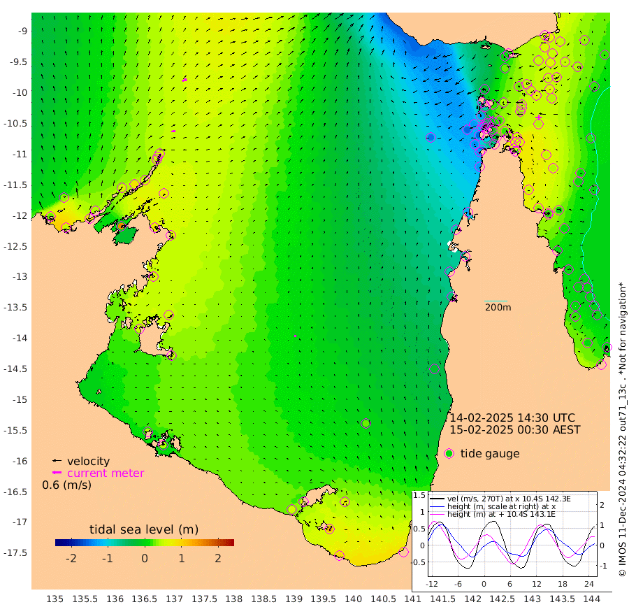 29cm/s 77T +3cm/s rms + 7cm/s -42T. ARA-GOC87 57m 15cm/s -6T +3cm/s rms + 2cm/s -2T. ARA-GOC87 60m 34cm/s 68T +2cm/s rms + 3cm/s 61T. ARA-GOC87 47m 62cm Daru 72cm Bobo Island 16cm Meer Island Barge 35cm Bramble Cay 45cm Unnamed Cay 63cm Pearce Cay 46cm Stephens Island 46cm Merrie England Shoals 54cm Mutacomal Reef 41cm Darnley Island Barge 21cm East Cay 50cm Yorke Island Barge 48cm Rennel Island 64cm Aureed Island 48cm Dungeness Reef 52cm Zagai Island 30cm Yam Island 6cm Dauan Island 10cm Saibai Island 23cm Phipi Reef 49cm Warrior Reef - West -22cm Mabuiag Island Barge 44cm Half Way Island 60cm Coconut Island 42cm Dugong Islet 45cm Poll Island 34cm Kirkcaldie Reef 38cm Suarji Island 38cm Sue Islet -133cm Hawkesbury Island 7cm Alert Patches 16cm Twin Island -89cm Badu Island 16cm St Pauls (Moa Island) -82cm Kubin (Moa Island) -21cm Ince Point -44cm Thursday Island -38cm Nardana Patches -71cm Turtle Head -99cm Round Island -121cm Goods Island -154cm Booby Island -134cm White Rocks Area -146cm Carpentaria 8cm Papou Point -156cm Bampfield Head -129cm Crab Island -141cm Red Wallis Island -100cm Packe Island 59cm Harrington Reef -152cm Herald Camp 10cm Sharp Point -63cm Red Island Point -28cm Possession Island 19cm Alpha Rock 36cm Frederick Point 58cm Wyborn Reef Light 55cm Tetley Island 18cm Triangle Reef 48cm Turtle Head Island 10cm Maclennan Cay 0cm Raine Island 48cm Mcsweeny Reef 40cm Collette Reef 15cm Shadwell Reef 45cm Hannibal Island 36cm Round Point -132cm Vrilya Point 20cm Cape Grenville 20cm Hicks Island 7cm Sir Charles Hardy Island 6cm Harvey Island 11cm Kay Reef 6cm Rocky Island 5cm Chapman Island -3cm Ham Reef 3cm Jubilee Reef 7cm Night Island 1cm Unnamed Reef No. 3 6cm Morris Island -5cm 1st 3 Mile Opening 1cm Creech Reef 21cm Fife Island 3cm Eden Reef 0cm Stanley Island 10cm Normanby River 25cm Yabooma Island 52cm Hutchison River 38cm Elcho Island 33cm North West Crocodile Island 60cm Cape Wessel 62cm Stevens Island 85cm Guluwuru Island 46cm Hopeful Bay 53cm Auster Point 42cm Two Island Bay 84cm Cadell Strait 152cm Mallison Island 80cm Melville Bay (Gove Harbour) 81cm Truant Island 66cm Cape Arnhem 61cm Cape Grey 57cm Hawk Island 57cm Milner Bay (Groote Eylandt) 48cm Cape Beatrice 41cm West Island 38cm Centre Island 62cm Mornington Island 59cm West Wellesley Islands 72cm Bountiful Island 97cm Albert River Mouth 123cm Sweers Island 85cm Karumba 24cm Nassau River Offshore -18cm Christmas Creek -59cm Archer River -79cm Boyd Point -89cm Weipa (Humbug Point) -82cm Pennefather River -124cm Cullen Point
