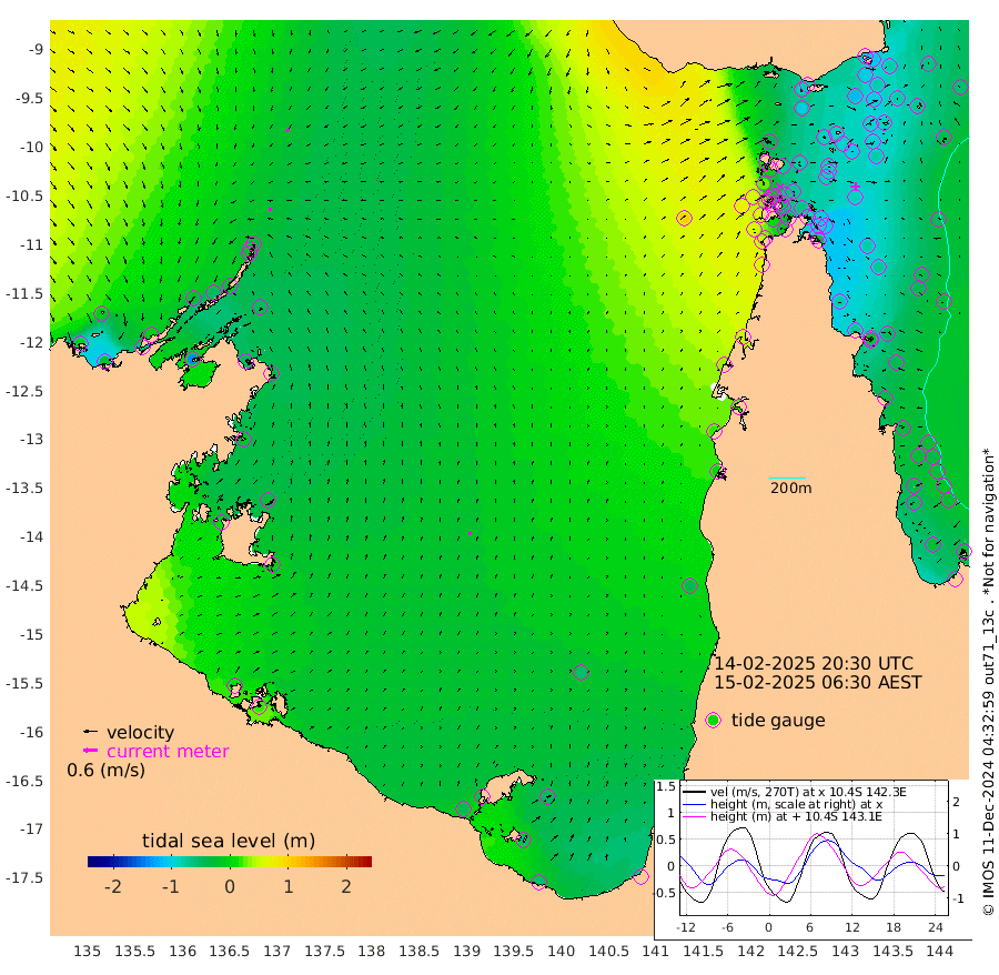 13cm/s -104T +3cm/s rms + 7cm/s -42T. ARA-GOC87 57m 14cm/s 21T +3cm/s rms + 2cm/s -2T. ARA-GOC87 60m 14cm/s -137T +2cm/s rms + 3cm/s 61T. ARA-GOC87 47m -106cm Daru -108cm Bobo Island -41cm Meer Island Barge -67cm Bramble Cay -82cm Unnamed Cay -100cm Pearce Cay -80cm Stephens Island -81cm Merrie England Shoals -99cm Mutacomal Reef -72cm Darnley Island Barge -53cm East Cay -85cm Yorke Island Barge -91cm Rennel Island -97cm Aureed Island -95cm Dungeness Reef -96cm Zagai Island -90cm Yam Island -86cm Dauan Island -78cm Saibai Island -100cm Phipi Reef -113cm Warrior Reef - West -40cm Mabuiag Island Barge -82cm Half Way Island -99cm Coconut Island -87cm Dugong Islet -92cm Poll Island -87cm Kirkcaldie Reef -82cm Suarji Island -84cm Sue Islet 23cm Hawkesbury Island -63cm Alert Patches -72cm Twin Island 4cm Badu Island -73cm St Pauls (Moa Island) -5cm Kubin (Moa Island) -43cm Ince Point -23cm Thursday Island -29cm Nardana Patches -9cm Turtle Head 11cm Round Island 33cm Goods Island 69cm Booby Island 57cm White Rocks Area 98cm Carpentaria -60cm Papou Point 74cm Bampfield Head 52cm Crab Island 53cm Red Wallis Island 5cm Packe Island -98cm Harrington Reef 37cm Herald Camp -25cm Sharp Point -16cm Red Island Point -34cm Possession Island -67cm Alpha Rock -87cm Frederick Point -98cm Wyborn Reef Light -98cm Tetley Island -49cm Triangle Reef -88cm Turtle Head Island -40cm Maclennan Cay -24cm Raine Island -80cm Mcsweeny Reef -73cm Collette Reef -43cm Shadwell Reef -77cm Hannibal Island -71cm Round Point 66cm Vrilya Point -52cm Cape Grenville -52cm Hicks Island -46cm Sir Charles Hardy Island -17cm Harvey Island -39cm Kay Reef -33cm Rocky Island -33cm Chapman Island -25cm Ham Reef -29cm Jubilee Reef -32cm Night Island -29cm Unnamed Reef No. 3 -32cm Morris Island -16cm 1st 3 Mile Opening -27cm Creech Reef -49cm Fife Island -29cm Eden Reef -27cm Stanley Island -38cm Normanby River -4cm Yabooma Island -22cm Hutchison River -5cm Elcho Island -8cm North West Crocodile Island -24cm Cape Wessel -26cm Stevens Island -52cm Guluwuru Island -18cm Hopeful Bay -17cm Auster Point -17cm Two Island Bay -63cm Cadell Strait -137cm Mallison Island -47cm Melville Bay (Gove Harbour) -47cm Truant Island -37cm Cape Arnhem -22cm Cape Grey -28cm Hawk Island 3cm Milner Bay (Groote Eylandt) -4cm Cape Beatrice 15cm West Island 18cm Centre Island -50cm Mornington Island -41cm West Wellesley Islands -50cm Bountiful Island -57cm Albert River Mouth -57cm Sweers Island -71cm Karumba -56cm Nassau River Offshore -42cm Christmas Creek -2cm Archer River 18cm Boyd Point 20cm Weipa (Humbug Point) 32cm Pennefather River 51cm Cullen Point