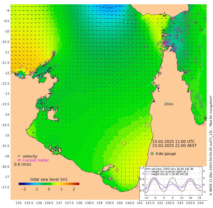 5cm/s -164T +3cm/s rms + 7cm/s -42T. ARA-GOC87 57m 14cm/s -54T +3cm/s rms + 2cm/s -2T. ARA-GOC87 60m 5cm/s 139T +2cm/s rms + 3cm/s 61T. ARA-GOC87 47m -32cm Daru -33cm Bobo Island 2cm Meer Island Barge 4cm Bramble Cay -13cm Unnamed Cay -17cm Pearce Cay -14cm Stephens Island -2cm Merrie England Shoals -23cm Mutacomal Reef -17cm Darnley Island Barge 7cm East Cay -30cm Yorke Island Barge -22cm Rennel Island -37cm Aureed Island -32cm Dungeness Reef -65cm Zagai Island -56cm Yam Island -60cm Dauan Island -70cm Saibai Island -29cm Phipi Reef -63cm Warrior Reef - West -43cm Mabuiag Island Barge -23cm Half Way Island -39cm Coconut Island -35cm Dugong Islet -47cm Poll Island -36cm Kirkcaldie Reef -60cm Suarji Island -53cm Sue Islet 21cm Hawkesbury Island -40cm Alert Patches -48cm Twin Island 9cm Badu Island -58cm St Pauls (Moa Island) -10cm Kubin (Moa Island) -37cm Ince Point -27cm Thursday Island -30cm Nardana Patches -6cm Turtle Head 3cm Round Island 18cm Goods Island 21cm Booby Island 22cm White Rocks Area -26cm Carpentaria -46cm Papou Point 3cm Bampfield Head 28cm Crab Island 14cm Red Wallis Island 3cm Packe Island -40cm Harrington Reef 8cm Herald Camp -21cm Sharp Point 8cm Red Island Point -25cm Possession Island -53cm Alpha Rock -46cm Frederick Point -36cm Wyborn Reef Light -42cm Tetley Island -8cm Triangle Reef -26cm Turtle Head Island -3cm Maclennan Cay 17cm Raine Island -19cm Mcsweeny Reef -10cm Collette Reef 4cm Shadwell Reef -6cm Hannibal Island 8cm Round Point 24cm Vrilya Point 4cm Cape Grenville 5cm Hicks Island -7cm Sir Charles Hardy Island 0cm Harvey Island 14cm Kay Reef 13cm Rocky Island 17cm Chapman Island 10cm Ham Reef 10cm Jubilee Reef 8cm Night Island 12cm Unnamed Reef No. 3 14cm Morris Island 12cm 1st 3 Mile Opening 11cm Creech Reef 7cm Fife Island 22cm Eden Reef 18cm Stanley Island 20cm Normanby River 101cm Yabooma Island 101cm Hutchison River 93cm Elcho Island 97cm North West Crocodile Island 5cm Cape Wessel 71cm Stevens Island -19cm Guluwuru Island 73cm Hopeful Bay 38cm Auster Point 33cm Two Island Bay 61cm Cadell Strait -82cm Mallison Island -3cm Melville Bay (Gove Harbour) -12cm Truant Island -17cm Cape Arnhem -3cm Cape Grey 6cm Hawk Island 10cm Milner Bay (Groote Eylandt) 14cm Cape Beatrice 6cm West Island 12cm Centre Island 46cm Mornington Island 41cm West Wellesley Islands 71cm Bountiful Island 103cm Albert River Mouth 106cm Sweers Island 111cm Karumba 56cm Nassau River Offshore 41cm Christmas Creek 40cm Archer River 10cm Boyd Point 30cm Weipa (Humbug Point) 31cm Pennefather River 12cm Cullen Point